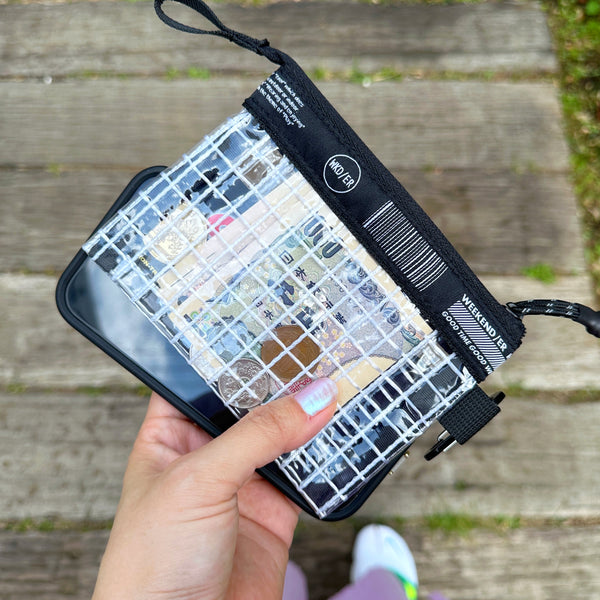 はずしたストラップはカラビナなどでアレンジしてスマホショルダーにしたり、財布や小さいポーチなどを連結して超ミニマルなバッグとして使ったりと、マルチに使えるストラップになります!