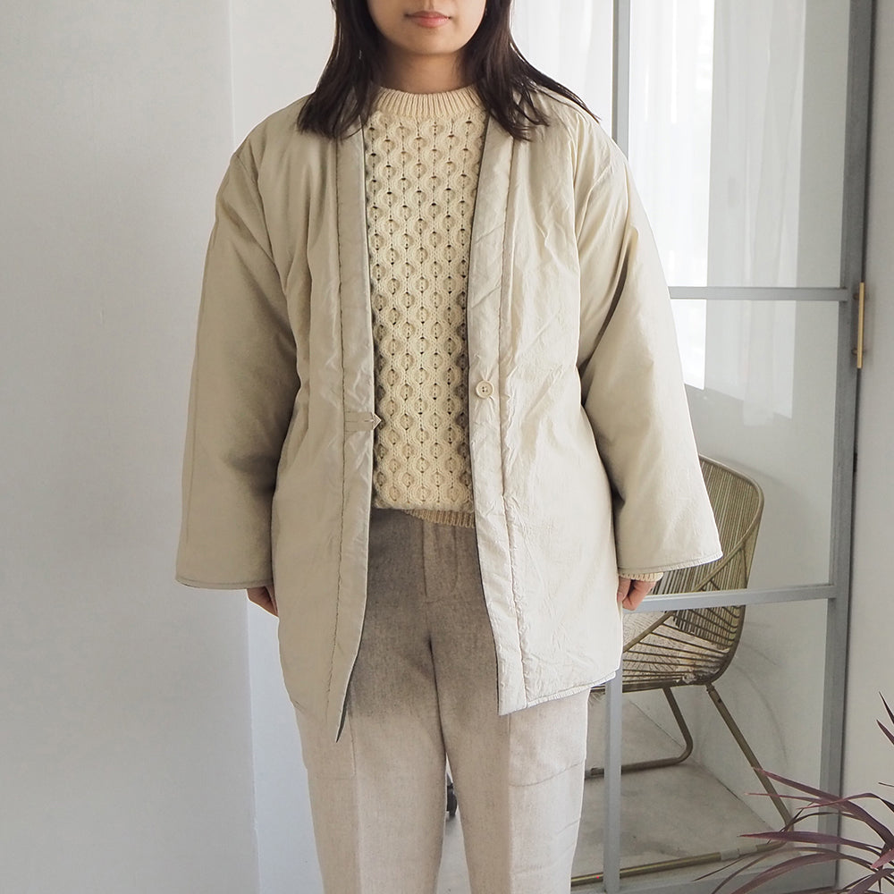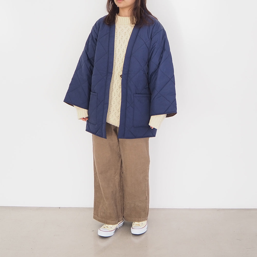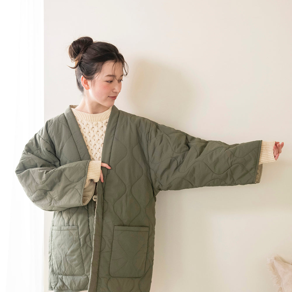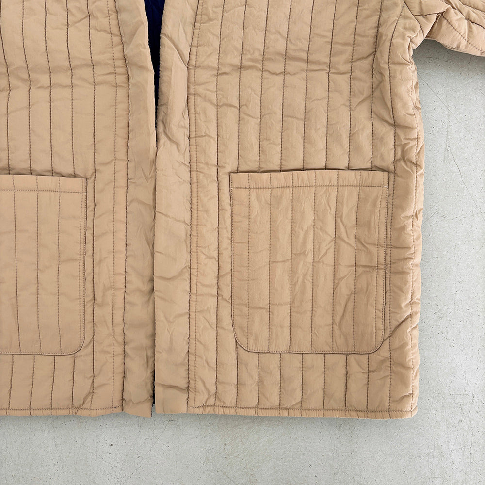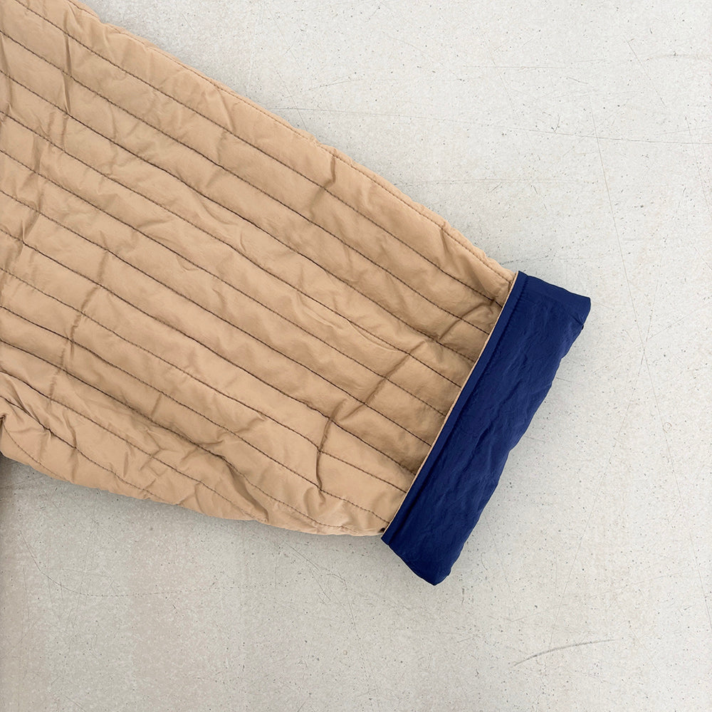 リバーシブルで着用できます。内側の面はキルティングなしになります。