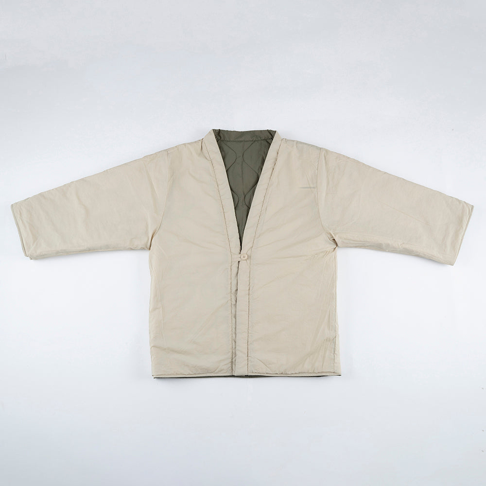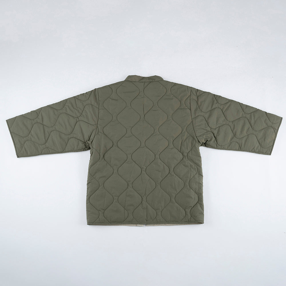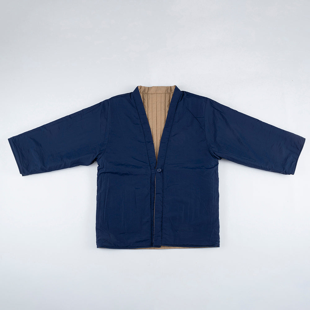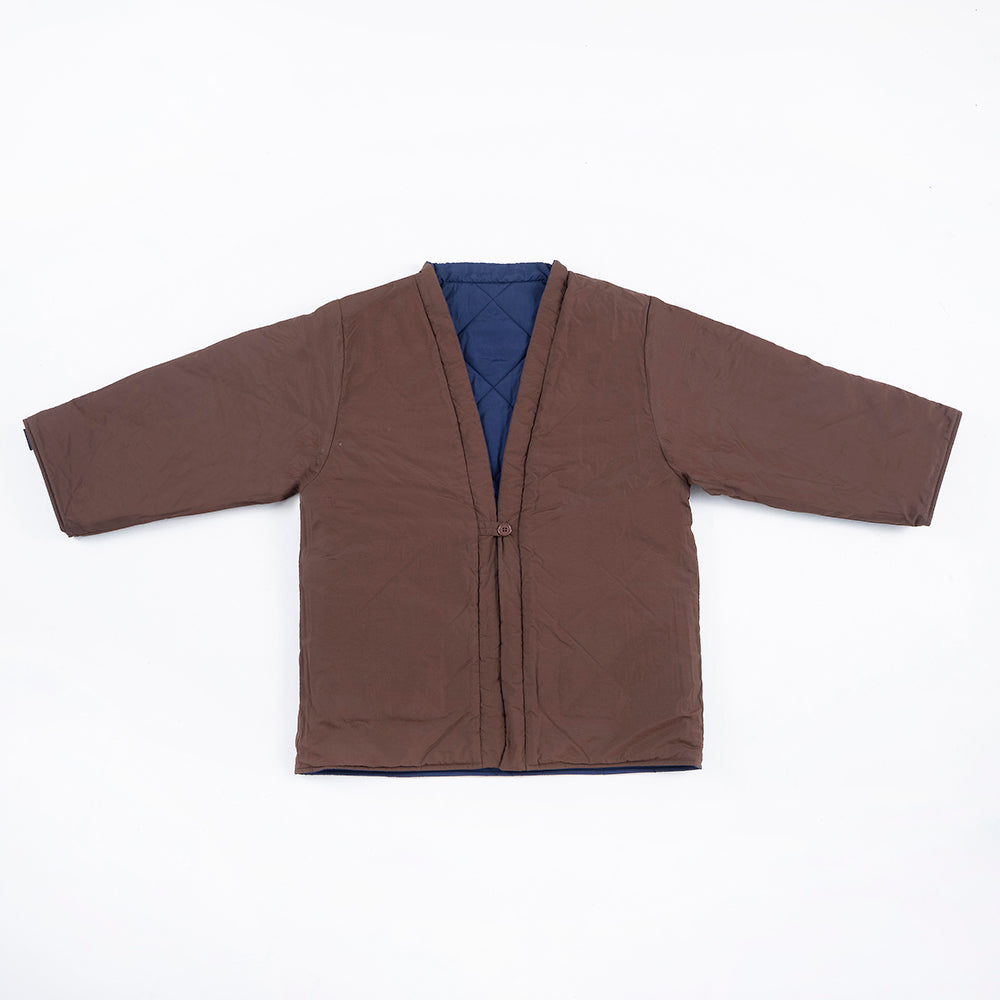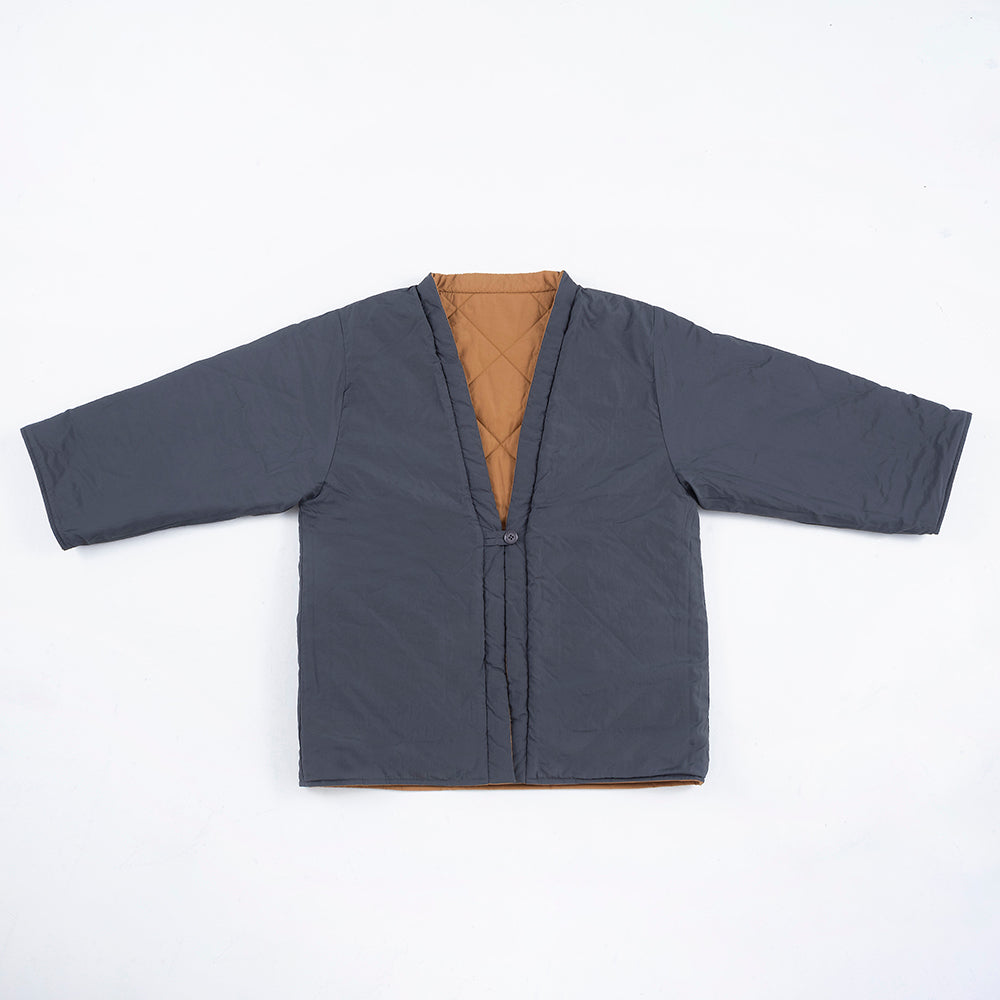 リバーシブルで着用できます。内側の面はキルティングなしになります。