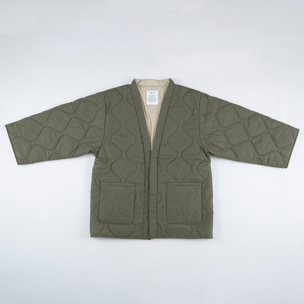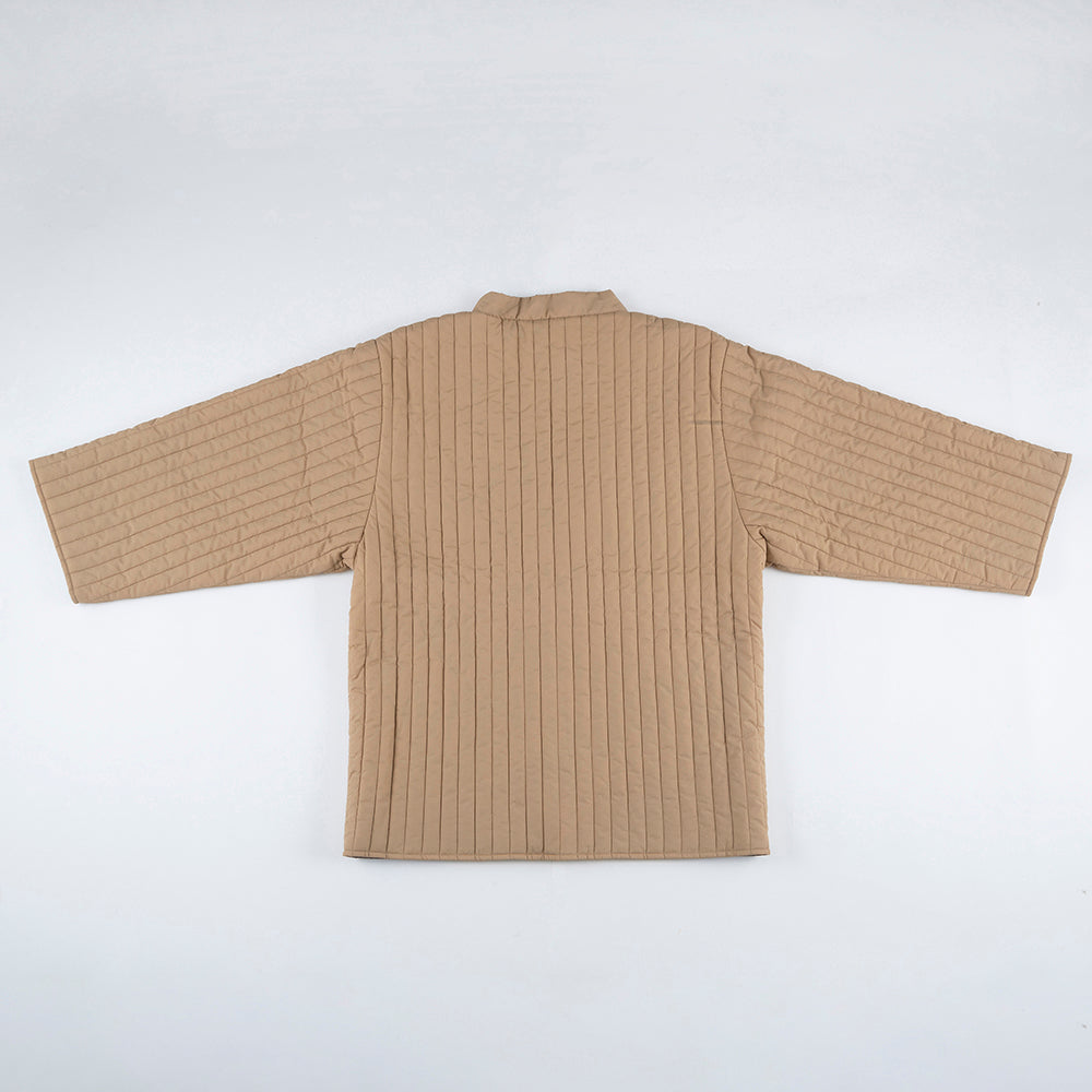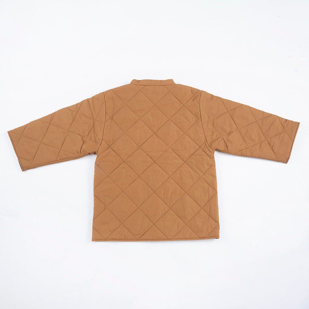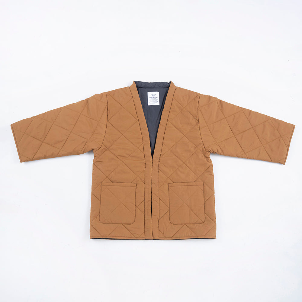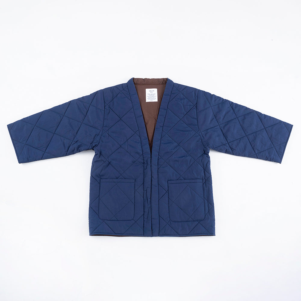 リバーシブルで着用できます。内側の面はキルティングなしになります。