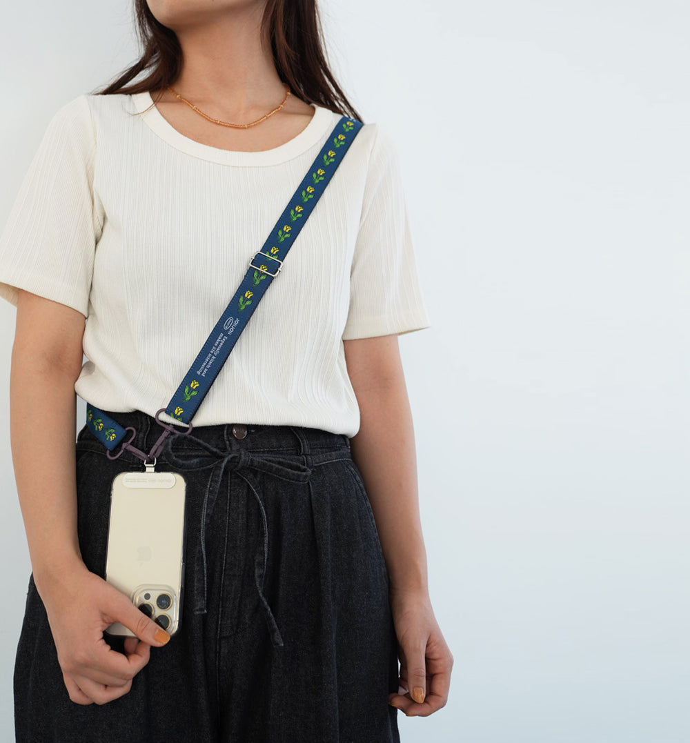 長さ調整可能なロングタイプ。ストラップをスマホに取り付ければ、身に着けておくことができ操作もラクラク。身軽にお出かけでき、ポケットがない服を着るときにも便利です。スマホの落下防止にも役立ちます◎