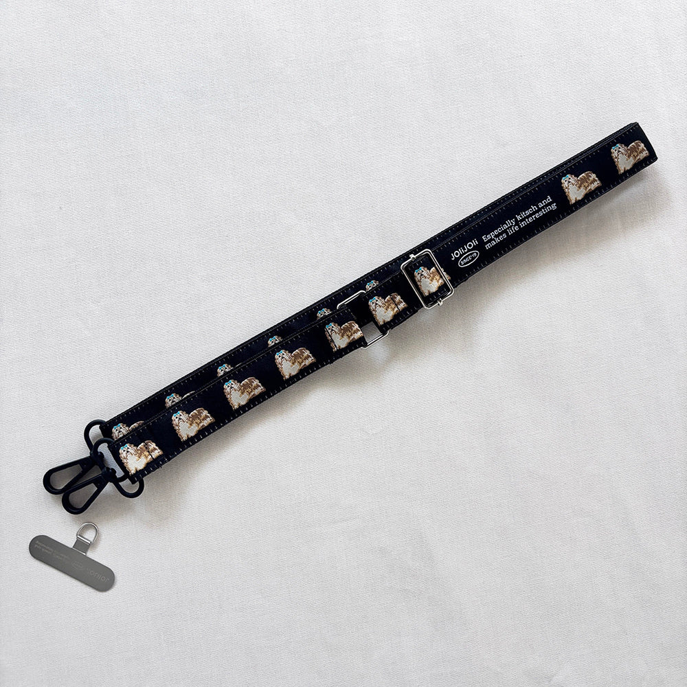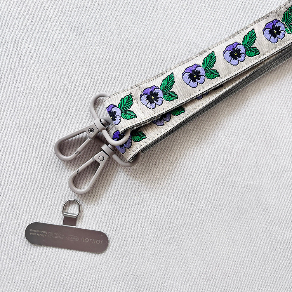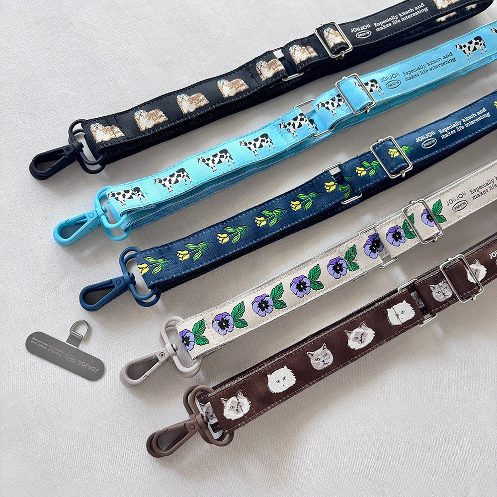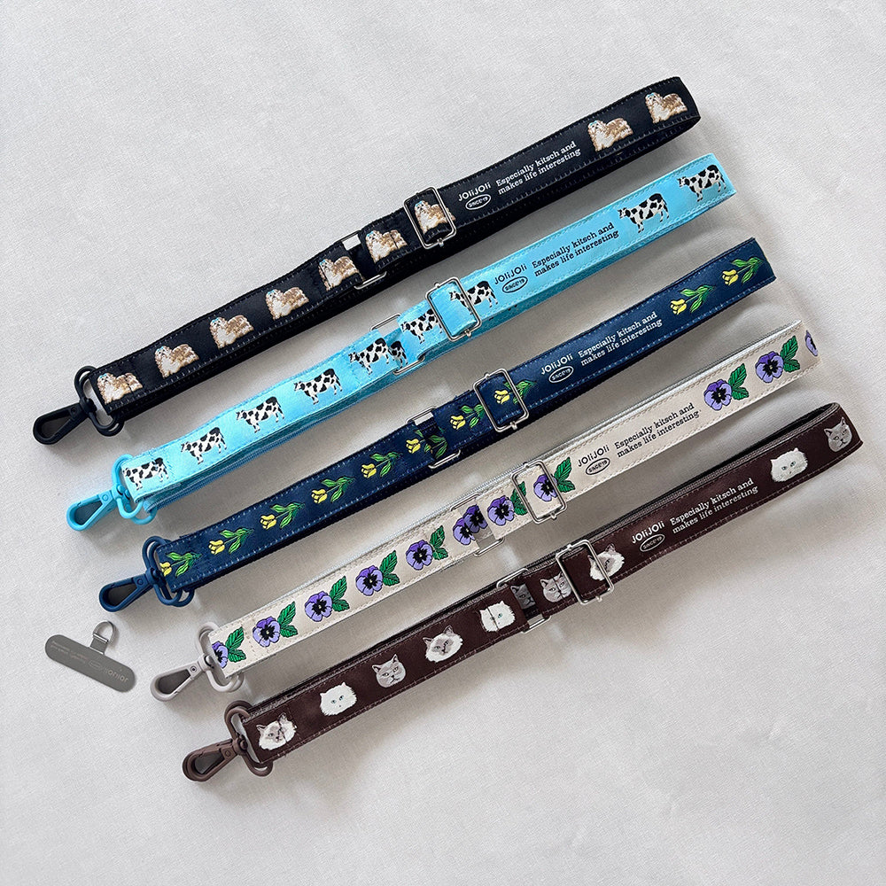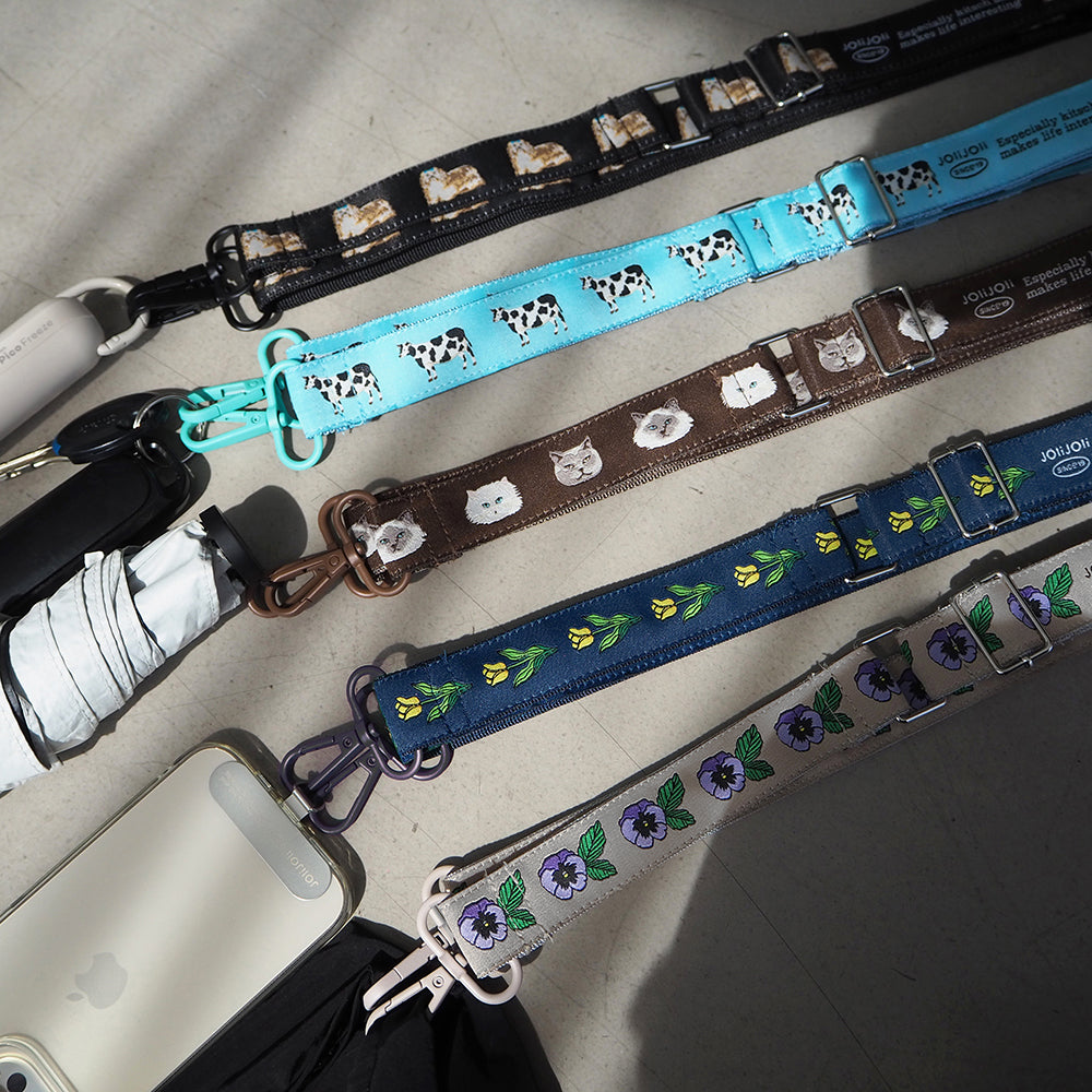 スマホに取り付けてショルダーストラップとしてはもちろん、 ハンディーファンやお手持ちのお財布、ポーチなどにも取り付けられる調整可能なロングタイプのストラップです。 コーディネートのワンポイントとしても活躍してくれます。