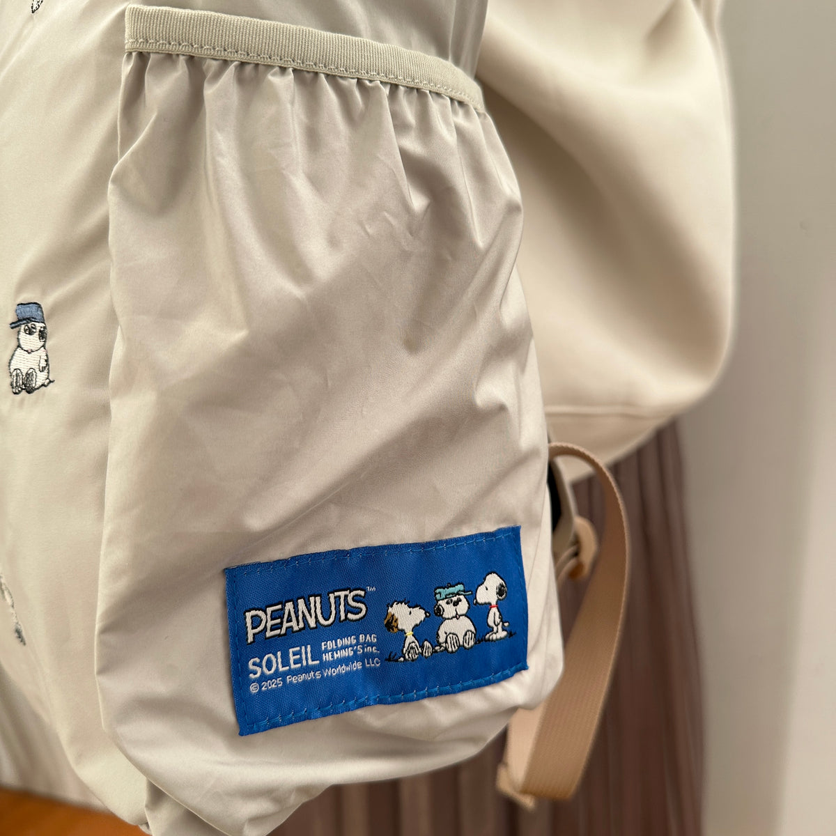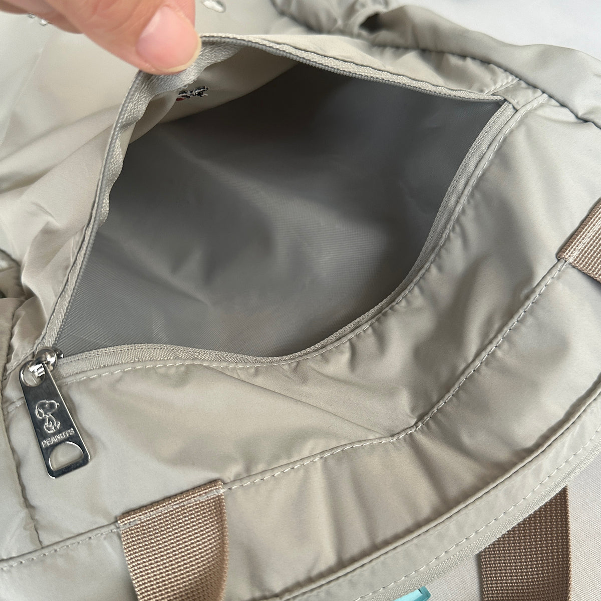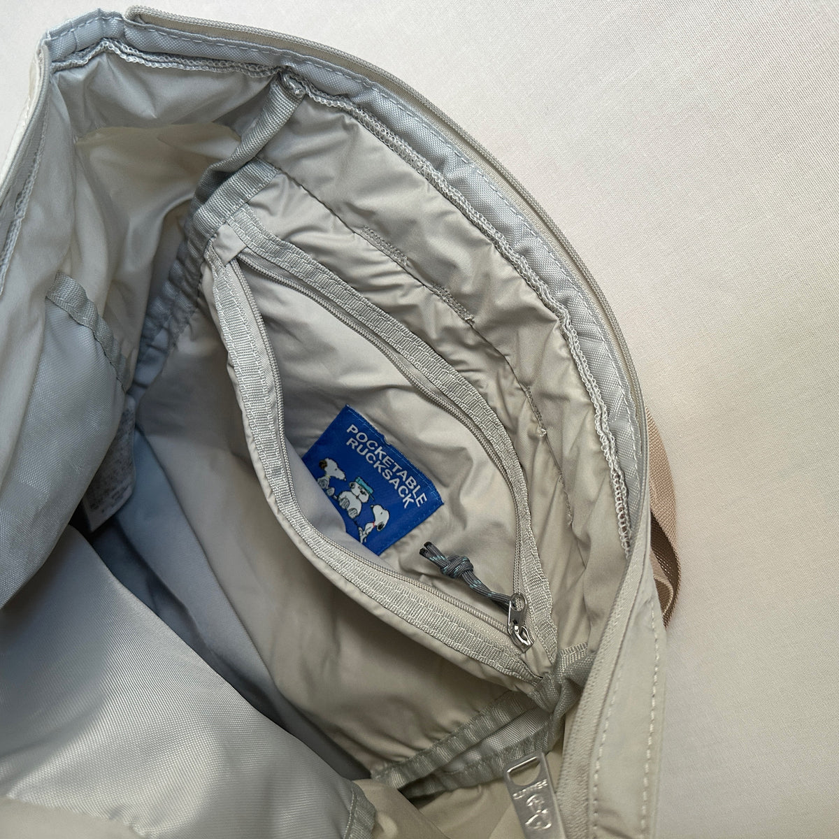 ファスナーの引き手には、スヌーピーの親友「ウッドストック」が刻印されています。
