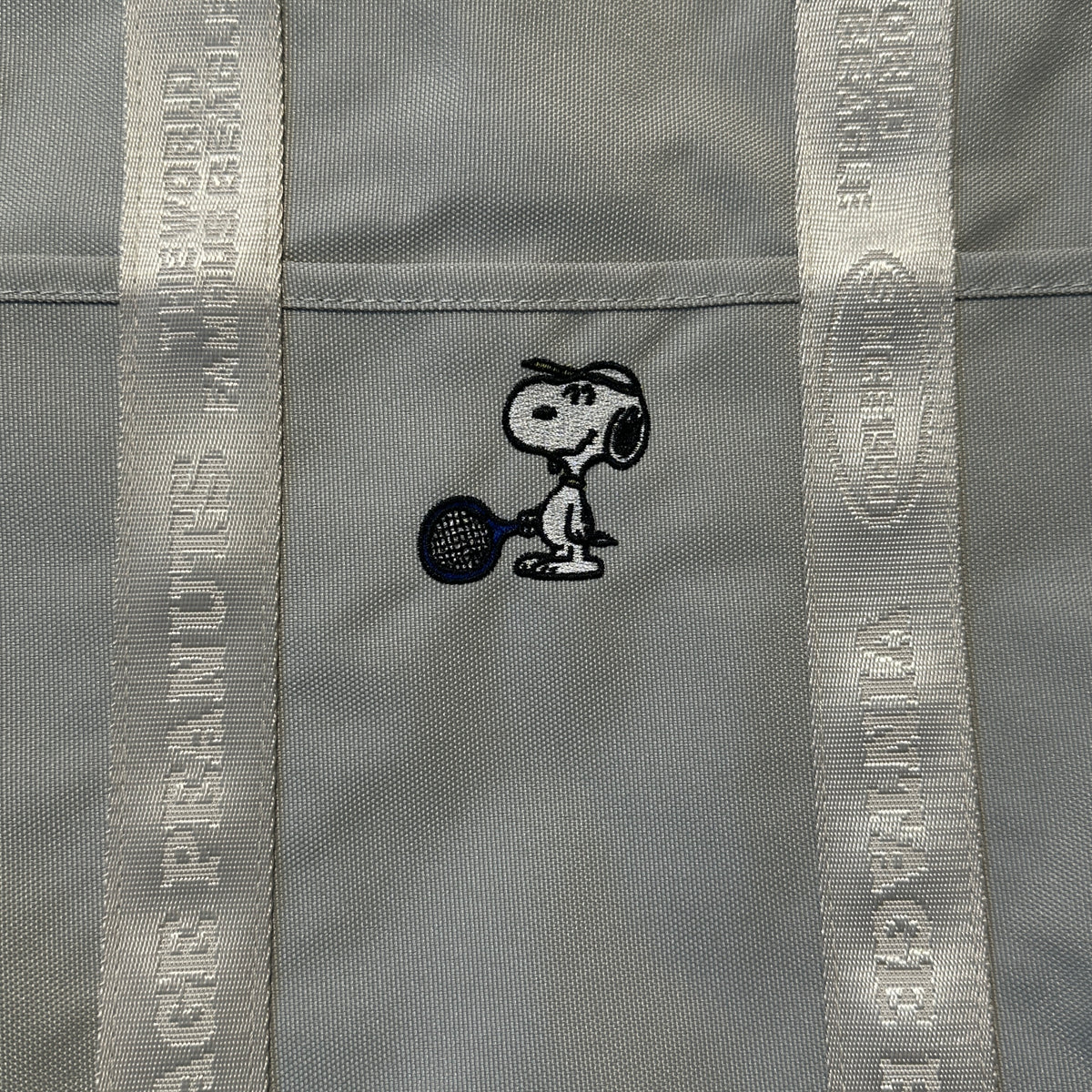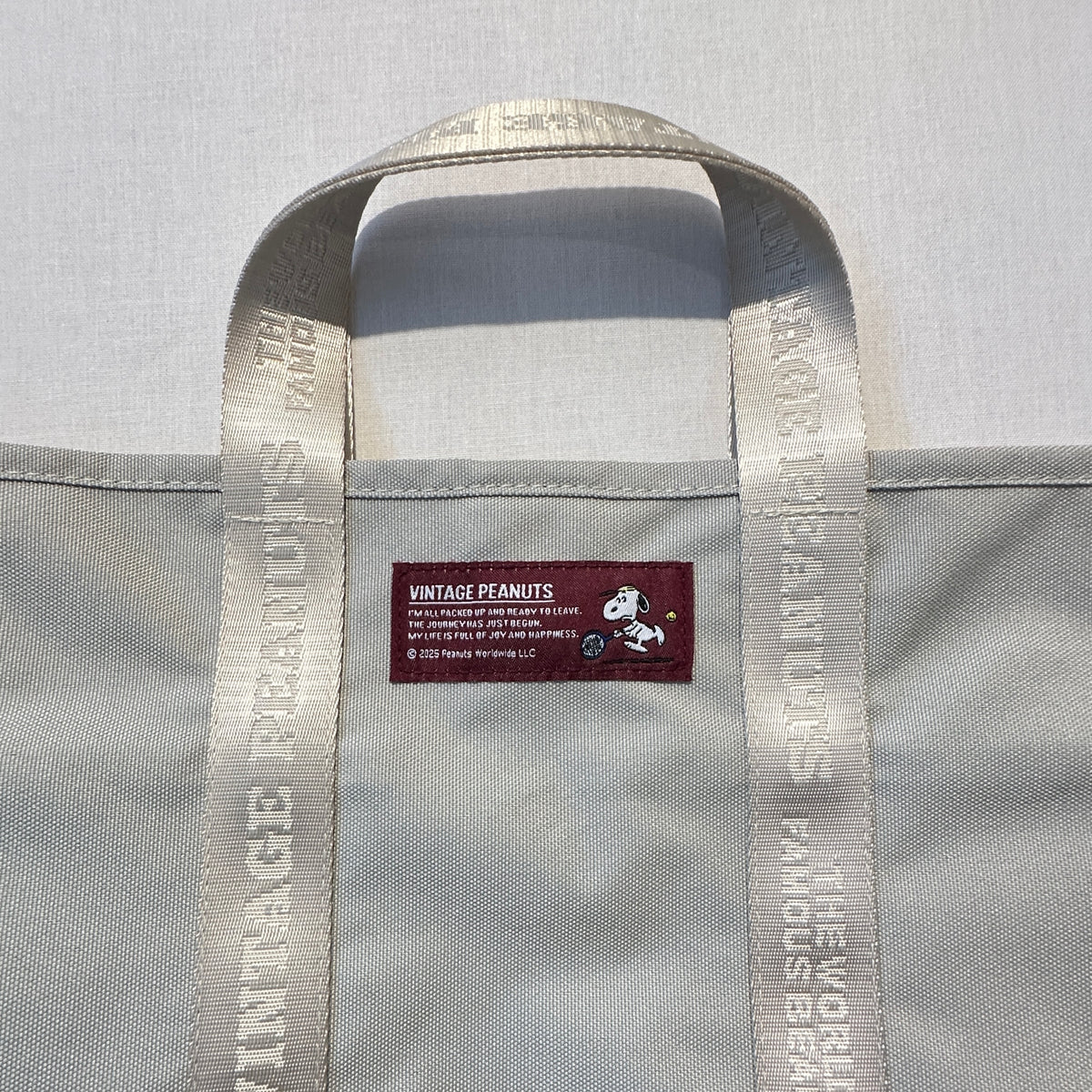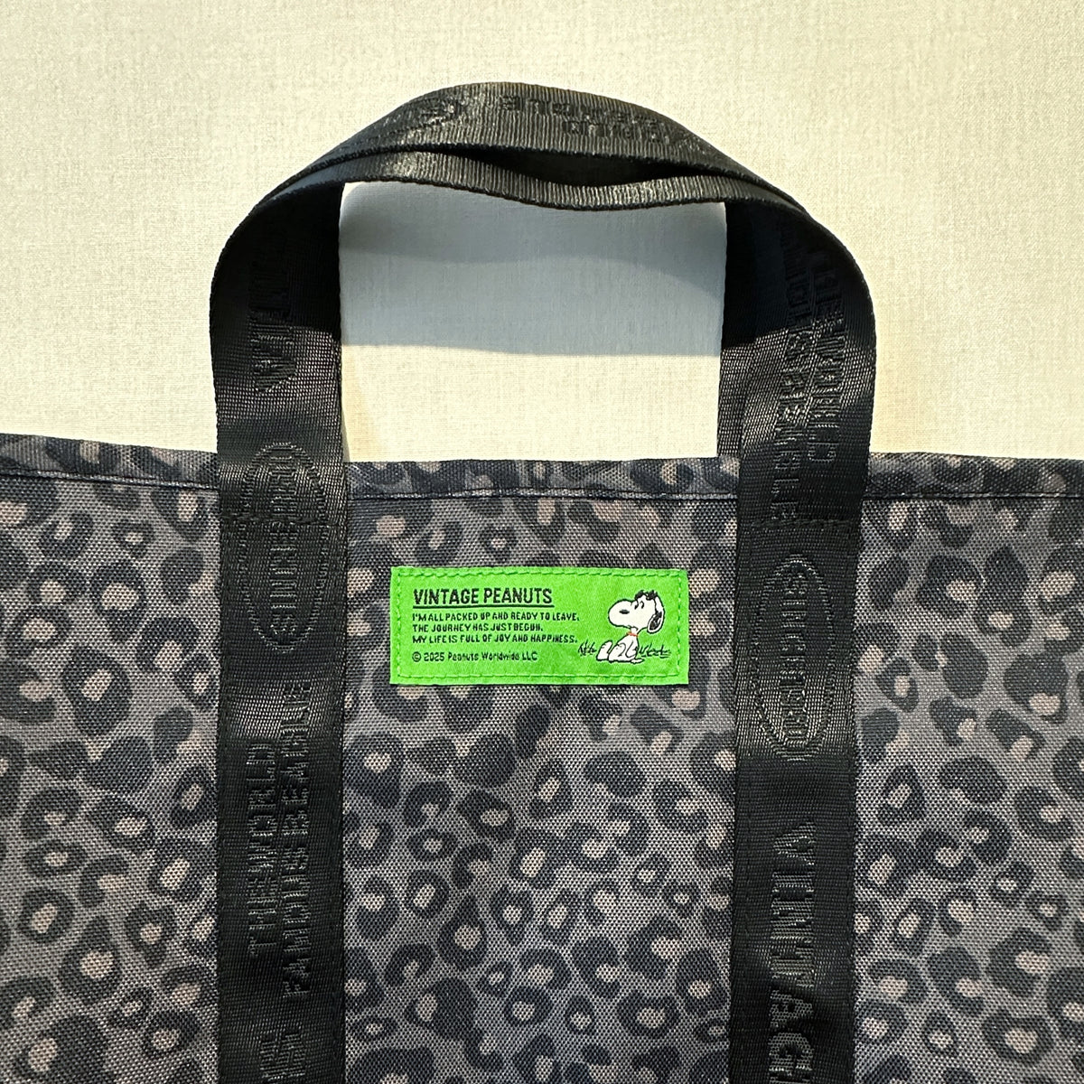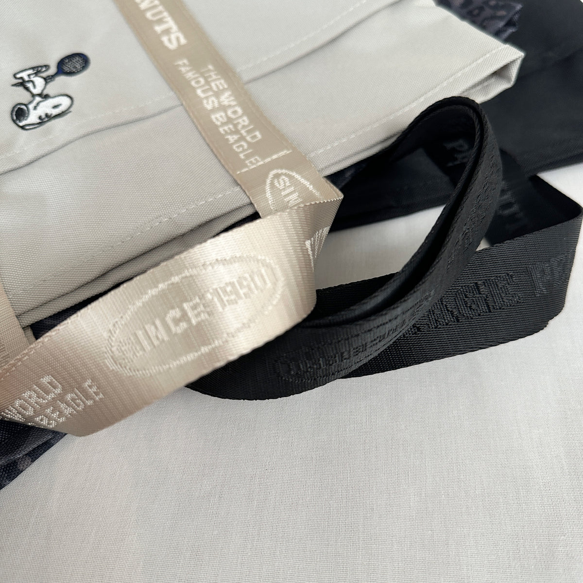 裏面にはPEANUTSデザイン織りネーム付き。織りネームの面を表面として使用しても使用できます。