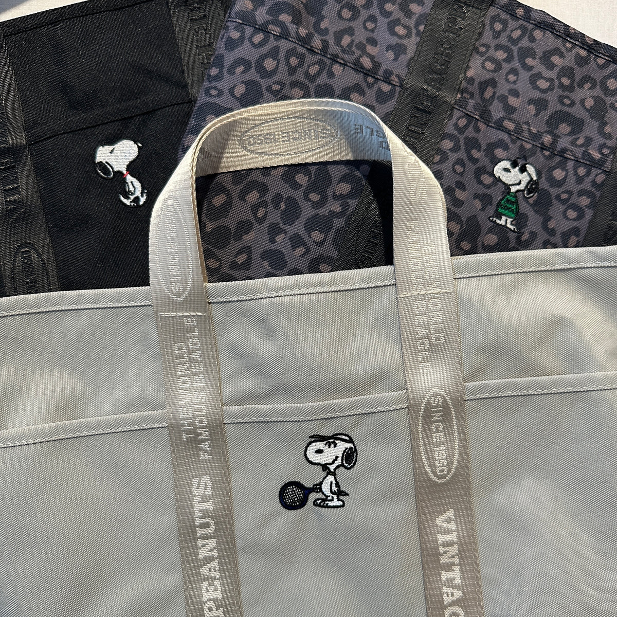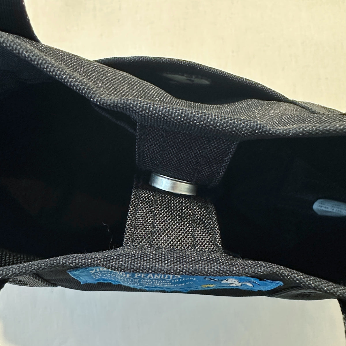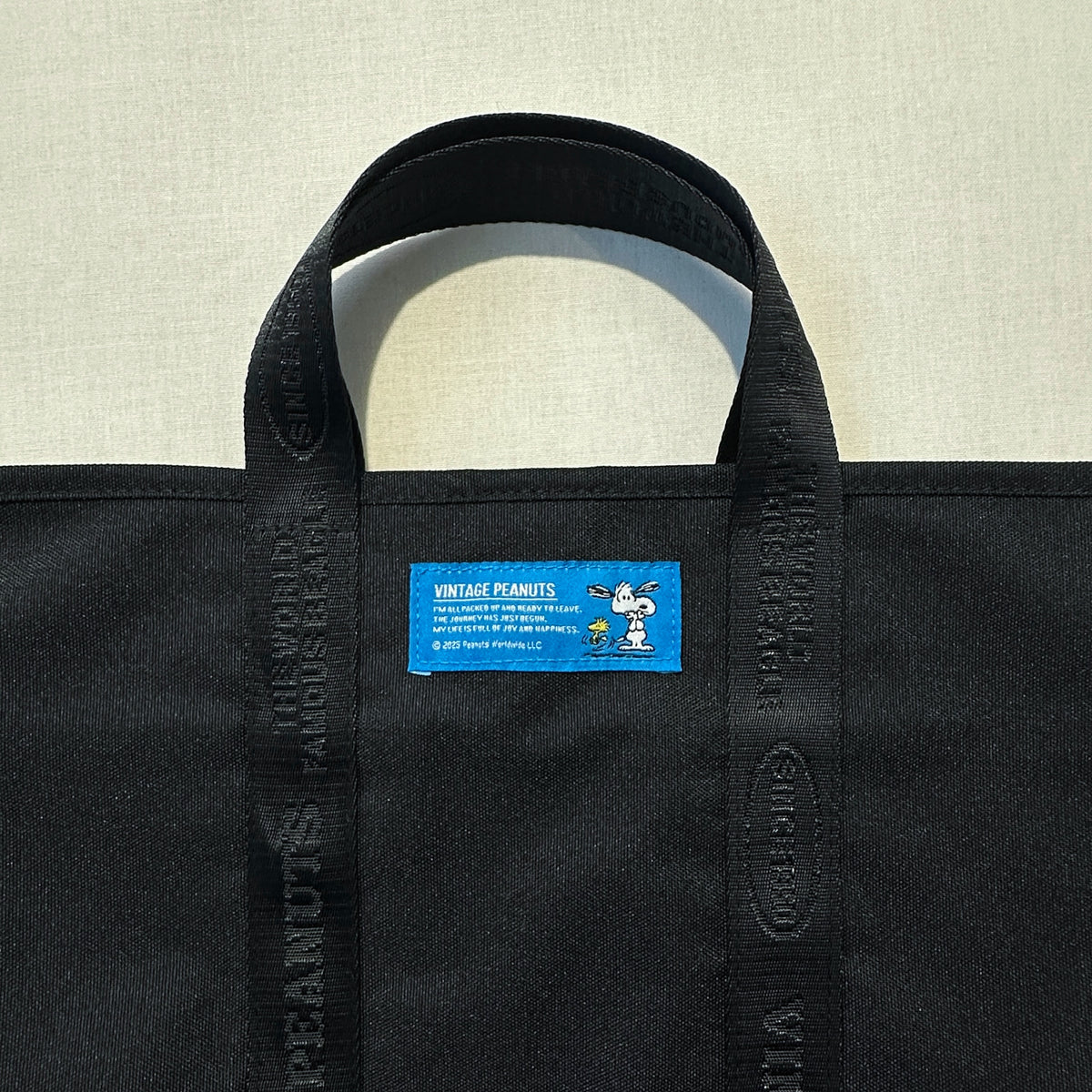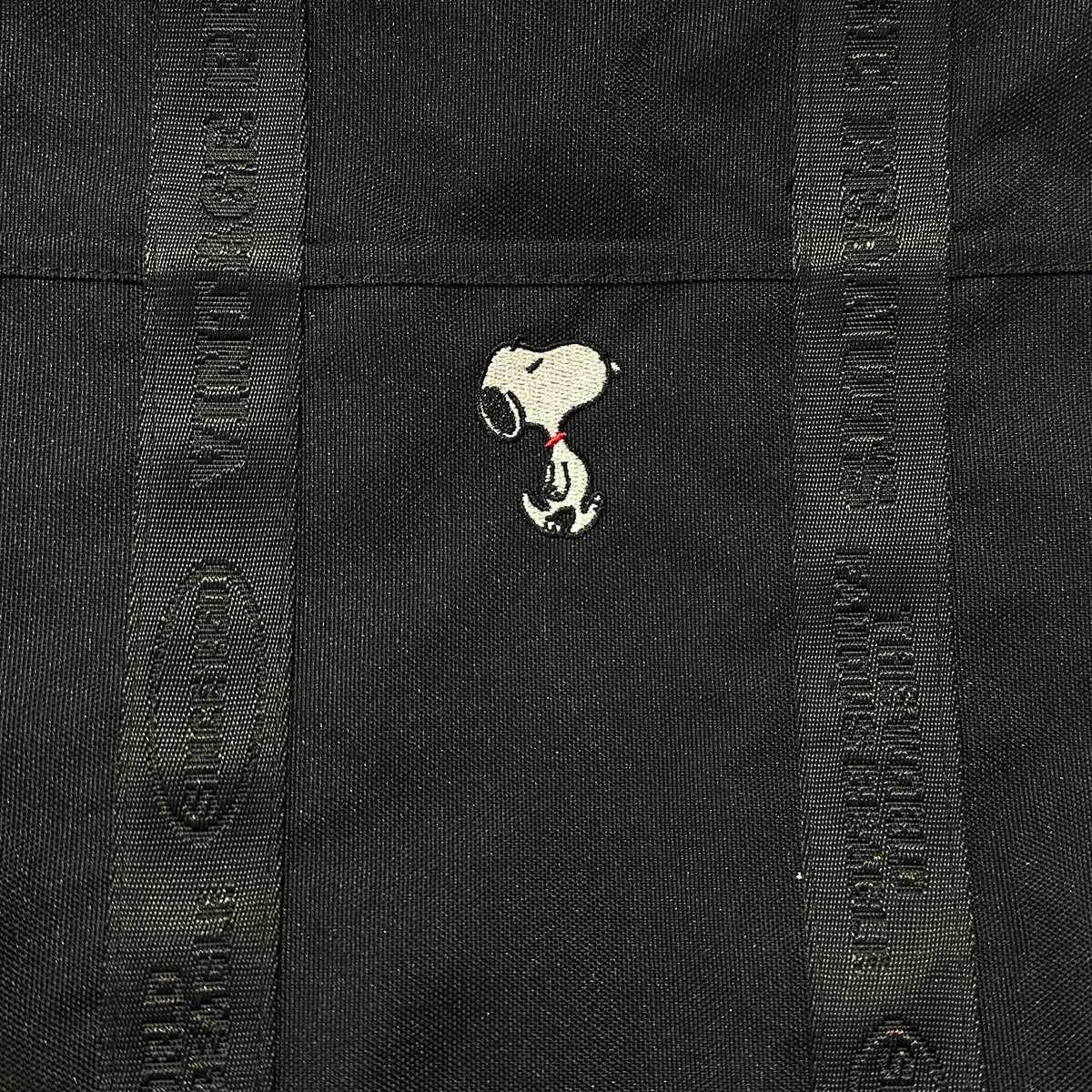 裏面にはPEANUTSデザイン織りネーム付き。織りネームの面を表面として使用しても使用できます。