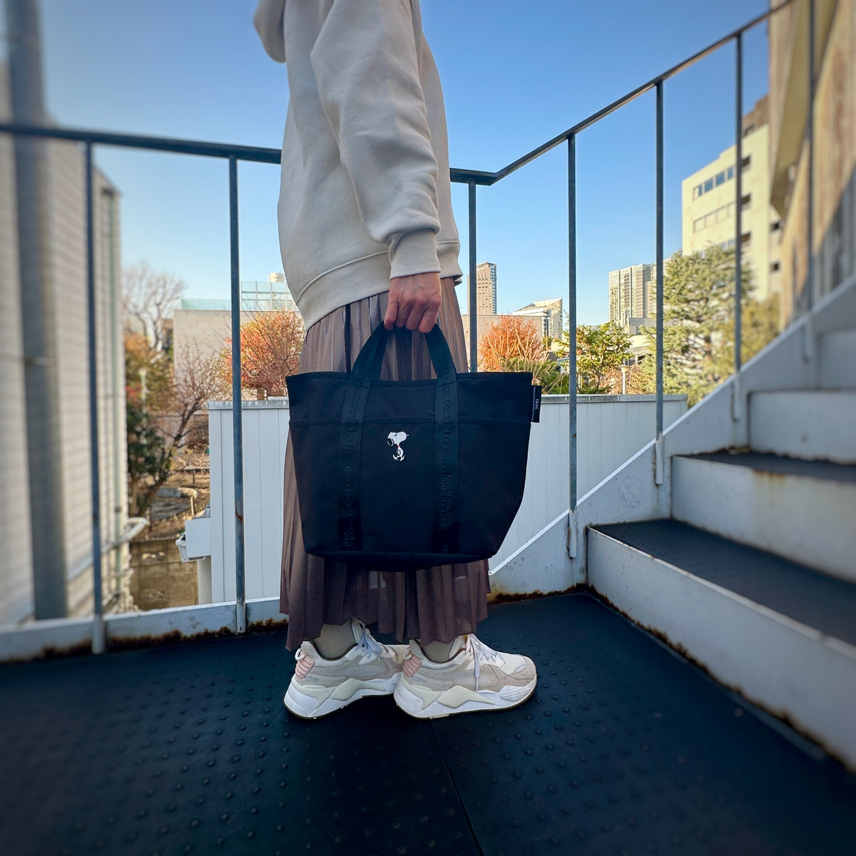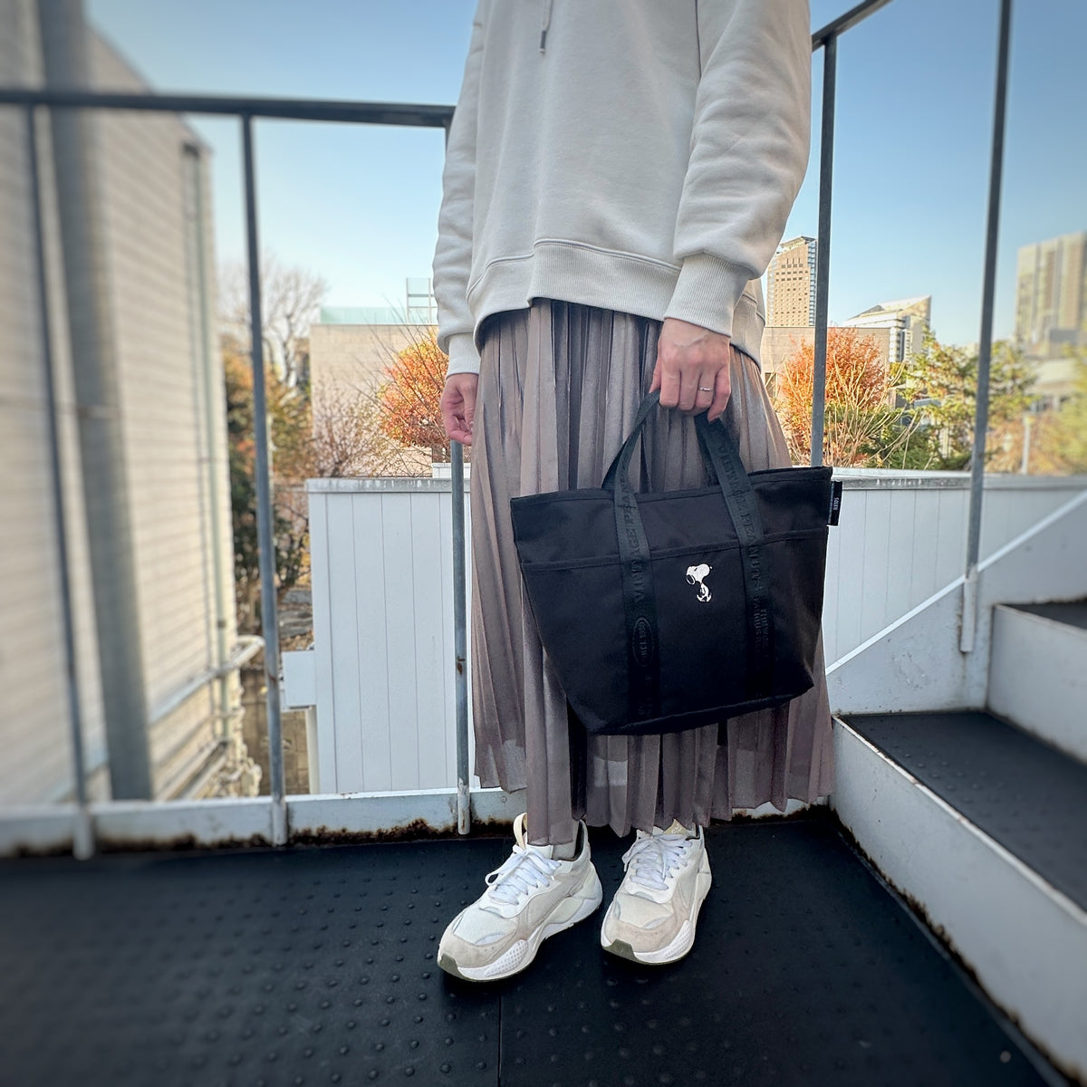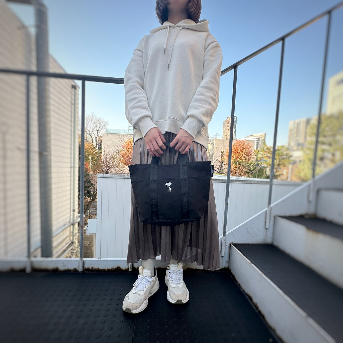 普段のお出かけに使いやすいトートバッグ(着用:02.BLACK)