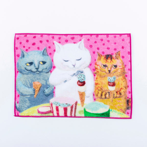 絵描きカマノレイコさんのタオルハンカチ。普通の生活の素晴らしさを、猫や動物の姿を通して描いているカマノレイコさん作品。 タオルの名産地、今治で作られたこちらのタオルハンカチは、手を拭いたり汗を拭いたり…取り出すたびに目にできる素敵な作品に温かい気持ちになること間違いなしのタオルです。