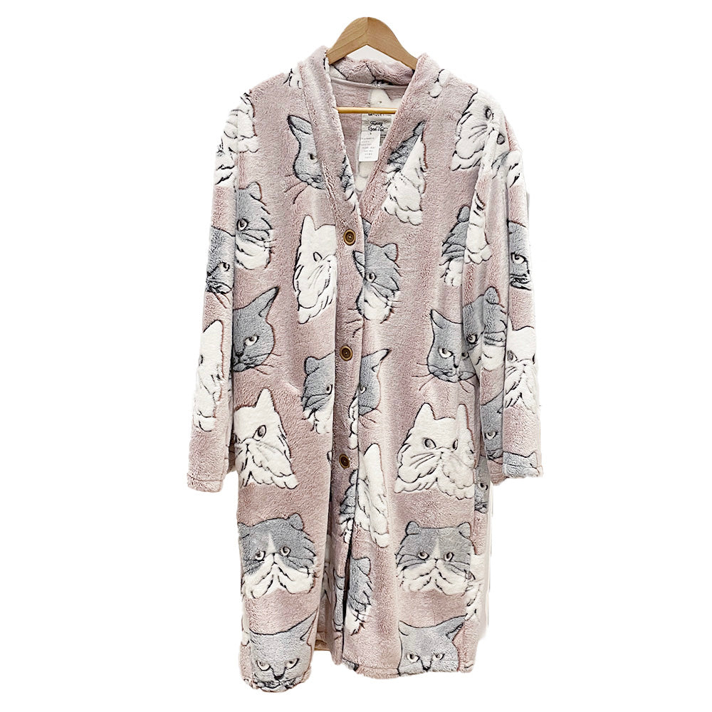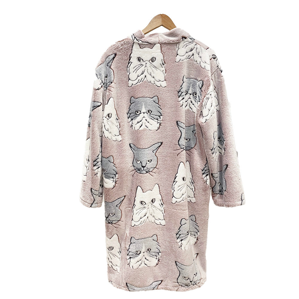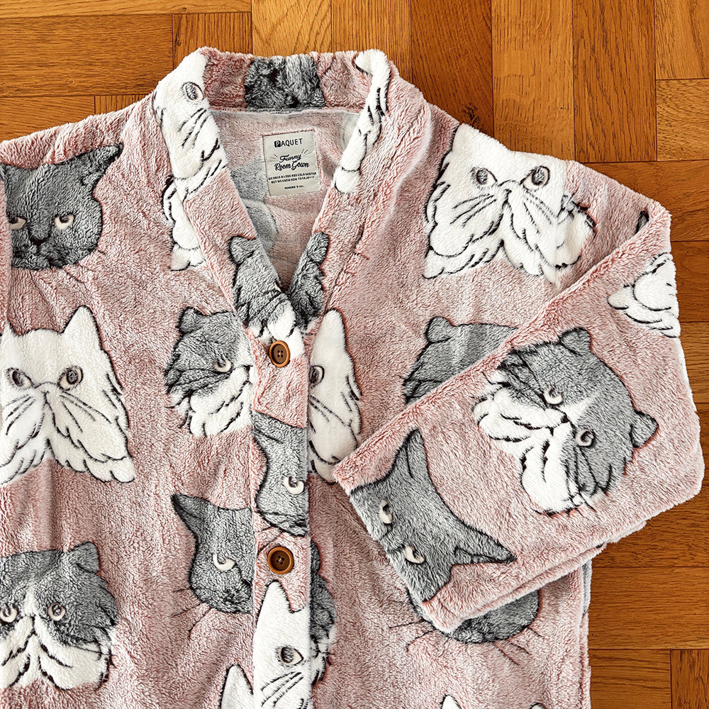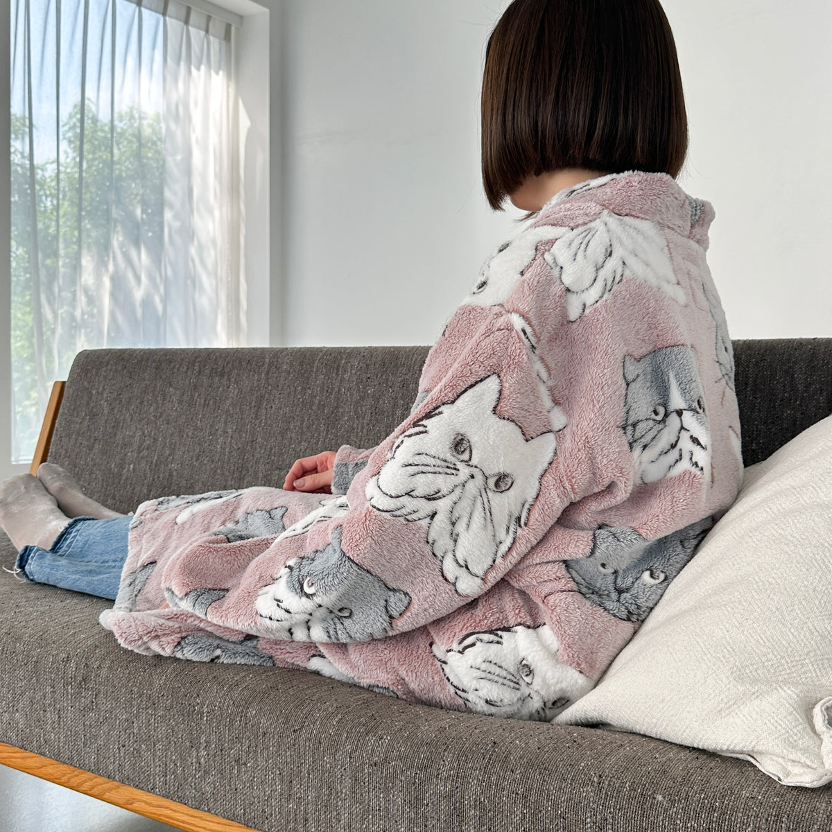 ふんわり軽く、なめらかな手触りが気持ちいい、マイクロファイバーのルームガウン。 長めの着丈で、まるで毛布を着ているようなあたたかな着心地です。