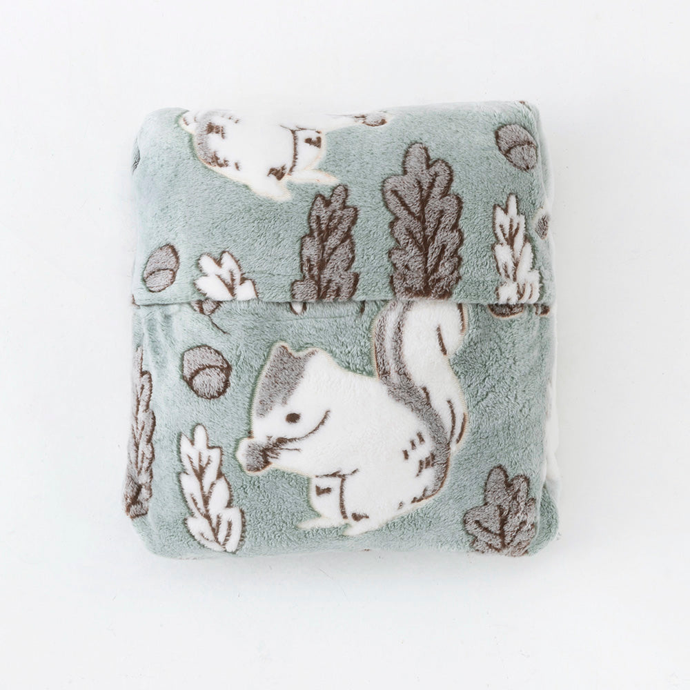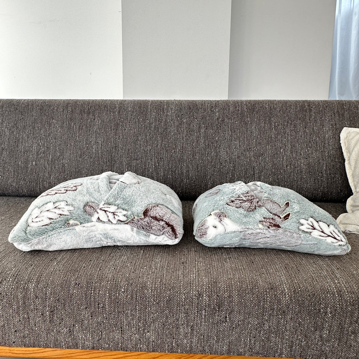 ポケットにガウンを折りたたんで収納すると、コンパクトなクッションに! オフシーズンでの保管のときにも小さくまとまって便利です。