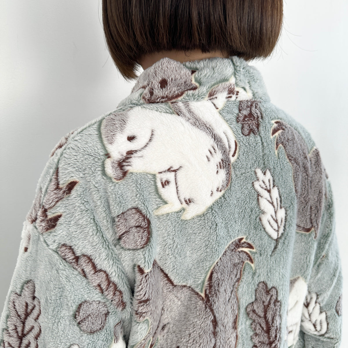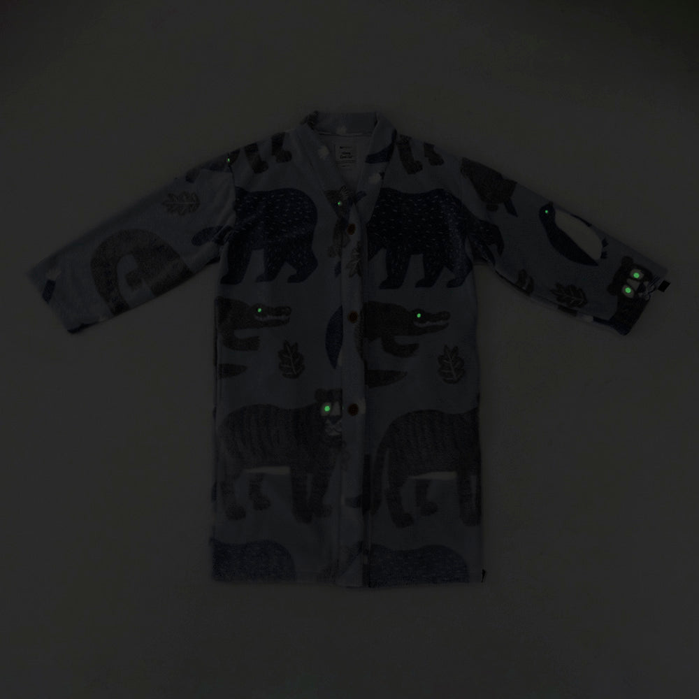 暗闇で光る!蓄光プリントの動物柄ルームガウン