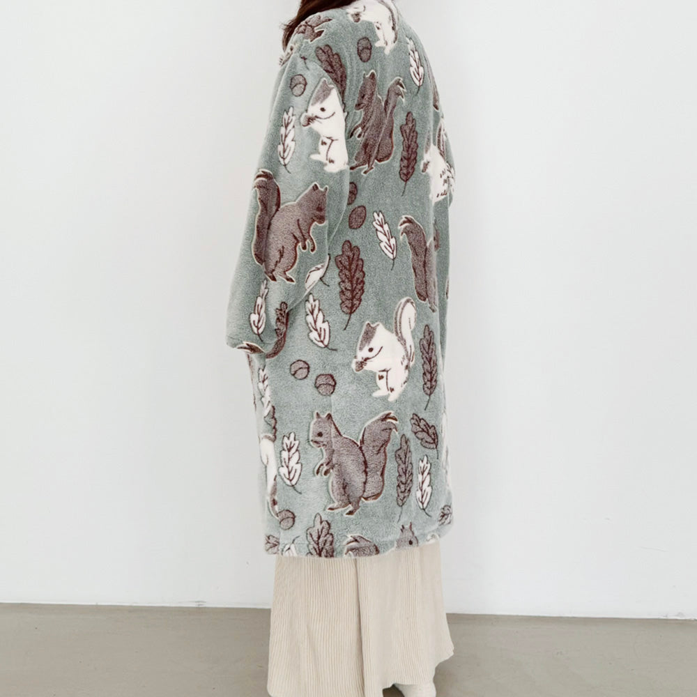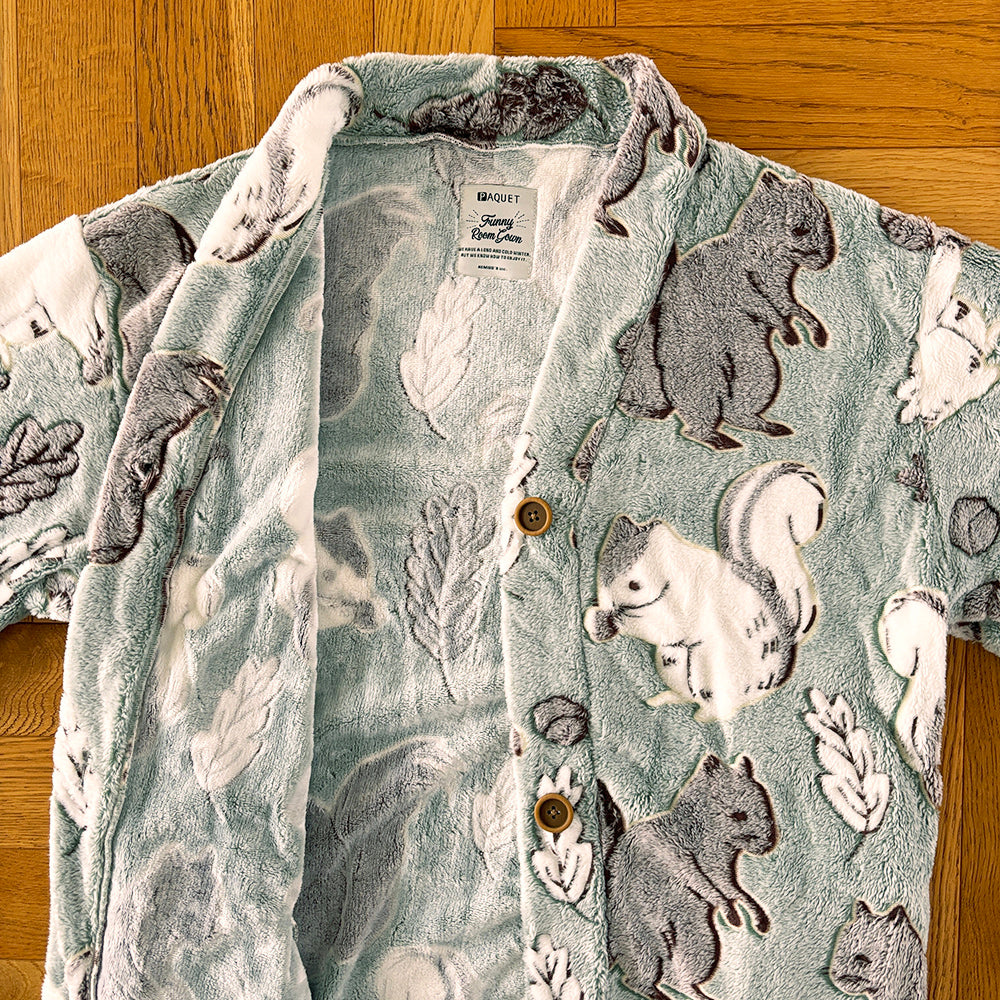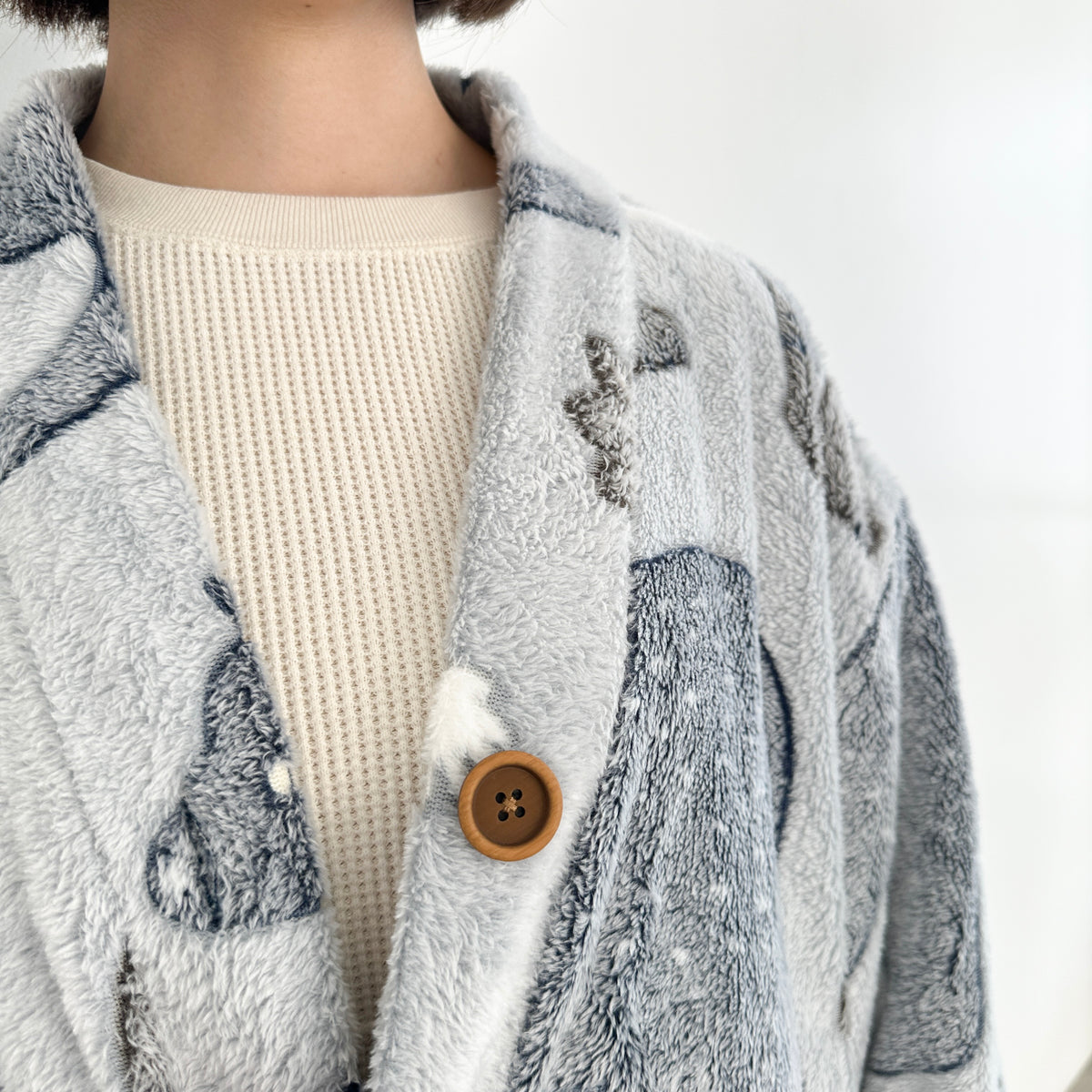 暗闇に浮かび上がる動物たちのシルエット。遊び心満載のルームガウンです!