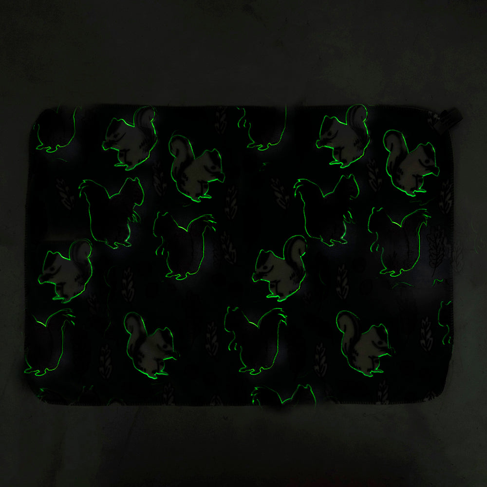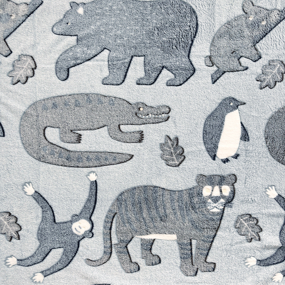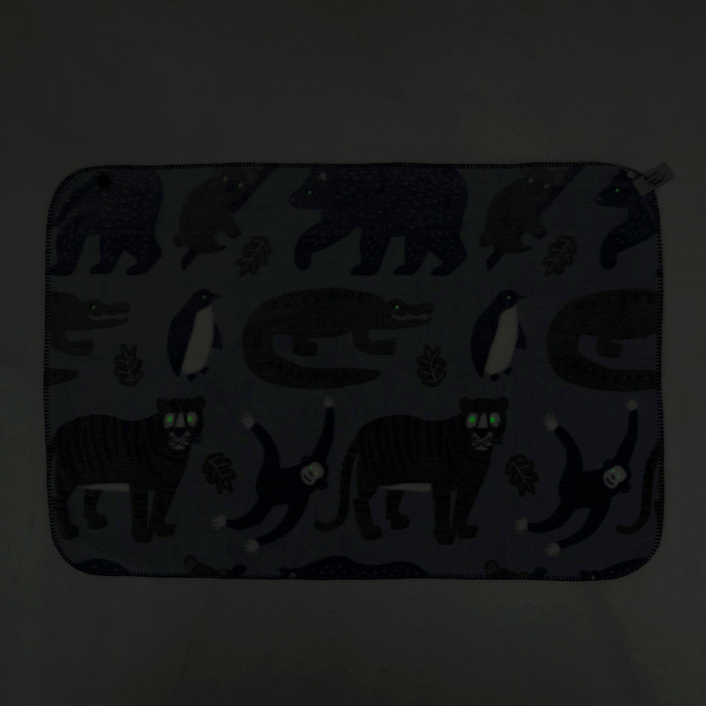 暗闇で光る!蓄光プリントの動物柄ブランケット