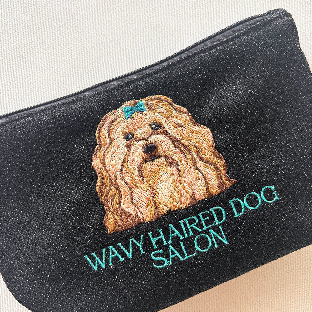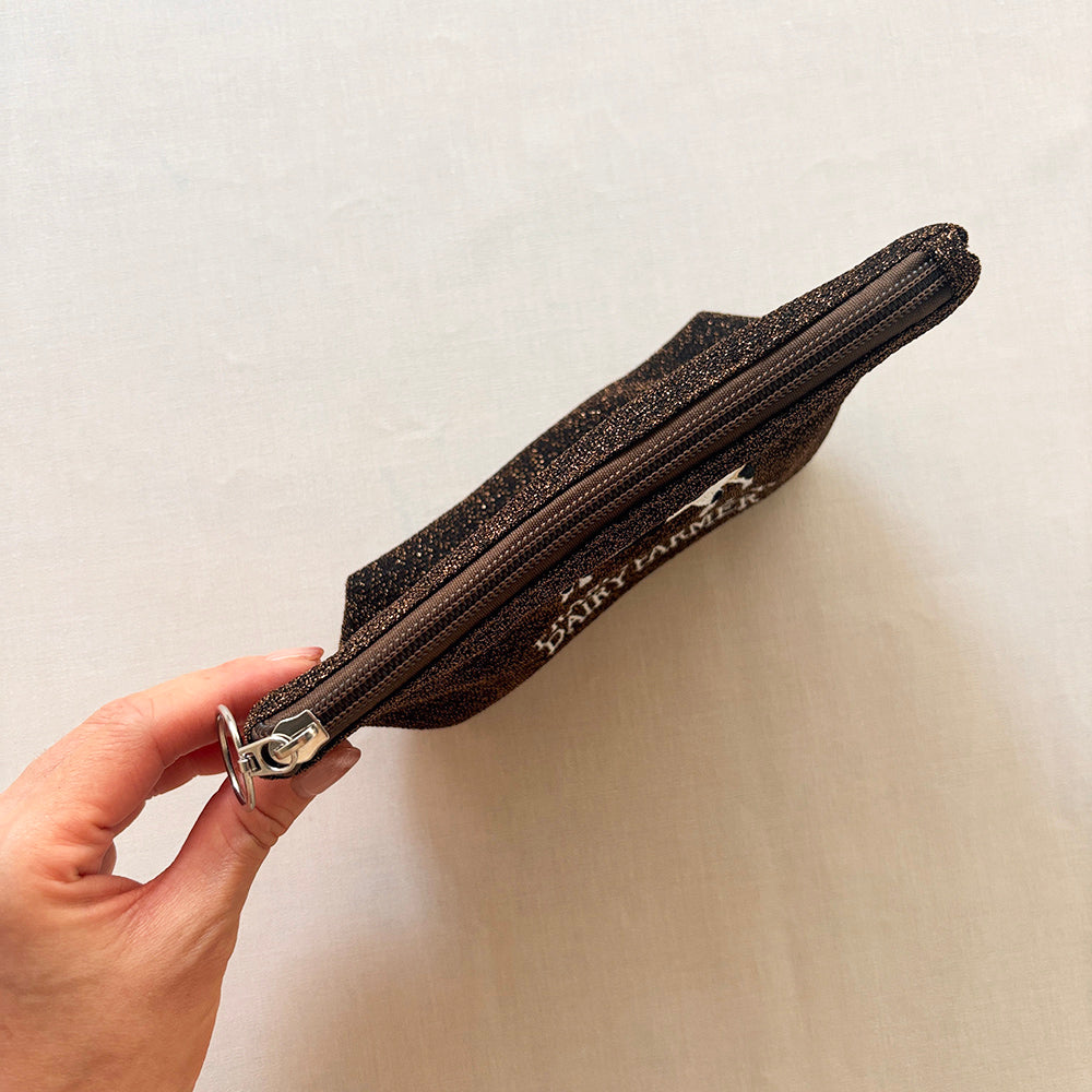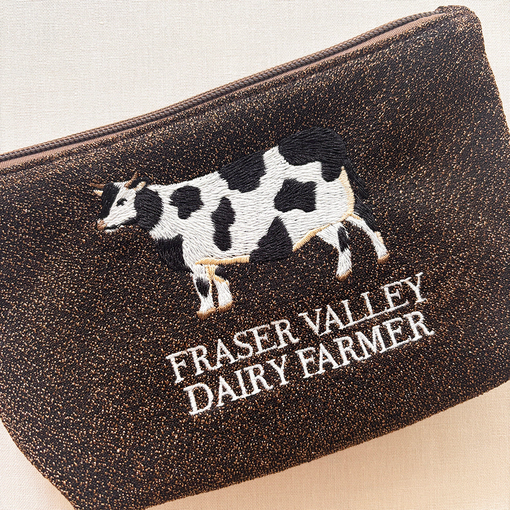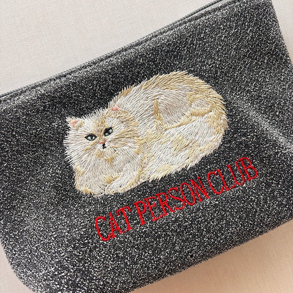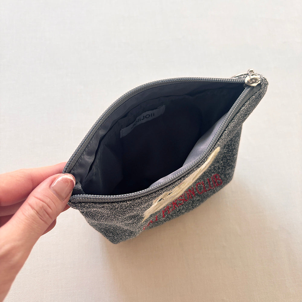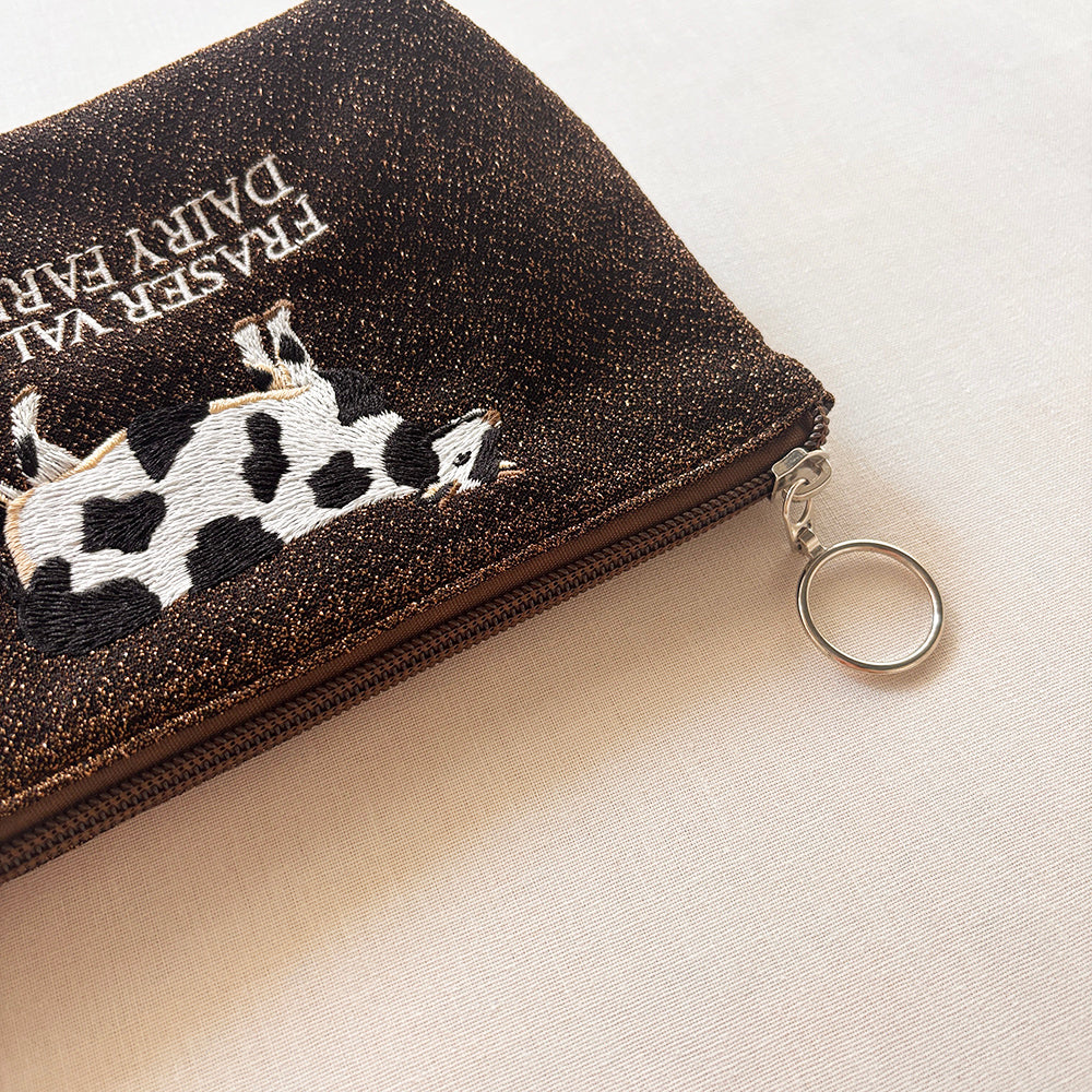 海外のローカルエリアをデザインテーマにした、刺繍ラメ生地ポーチ。