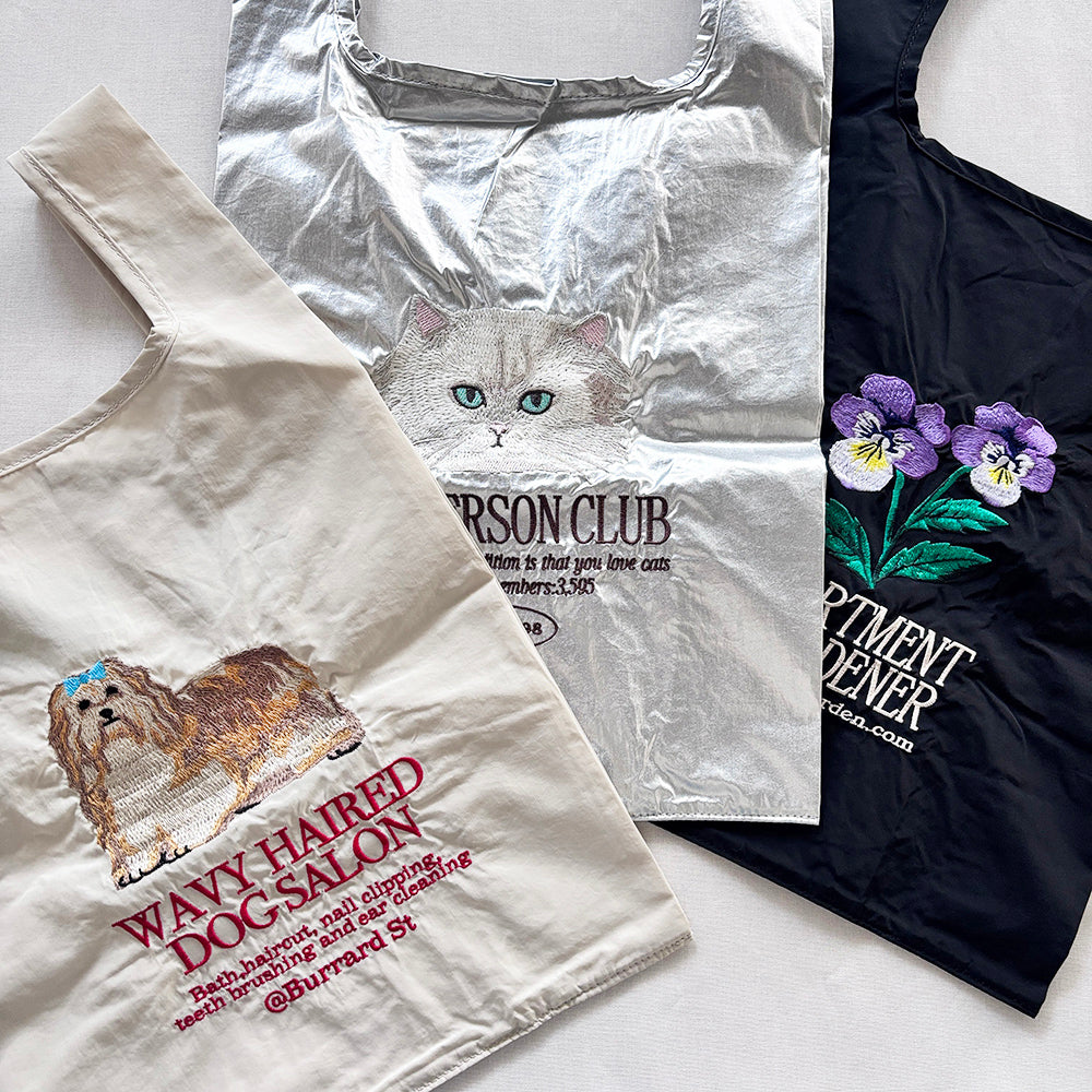 海外のローカルエリアをデザインテーマにした、刺繍エコバッグ