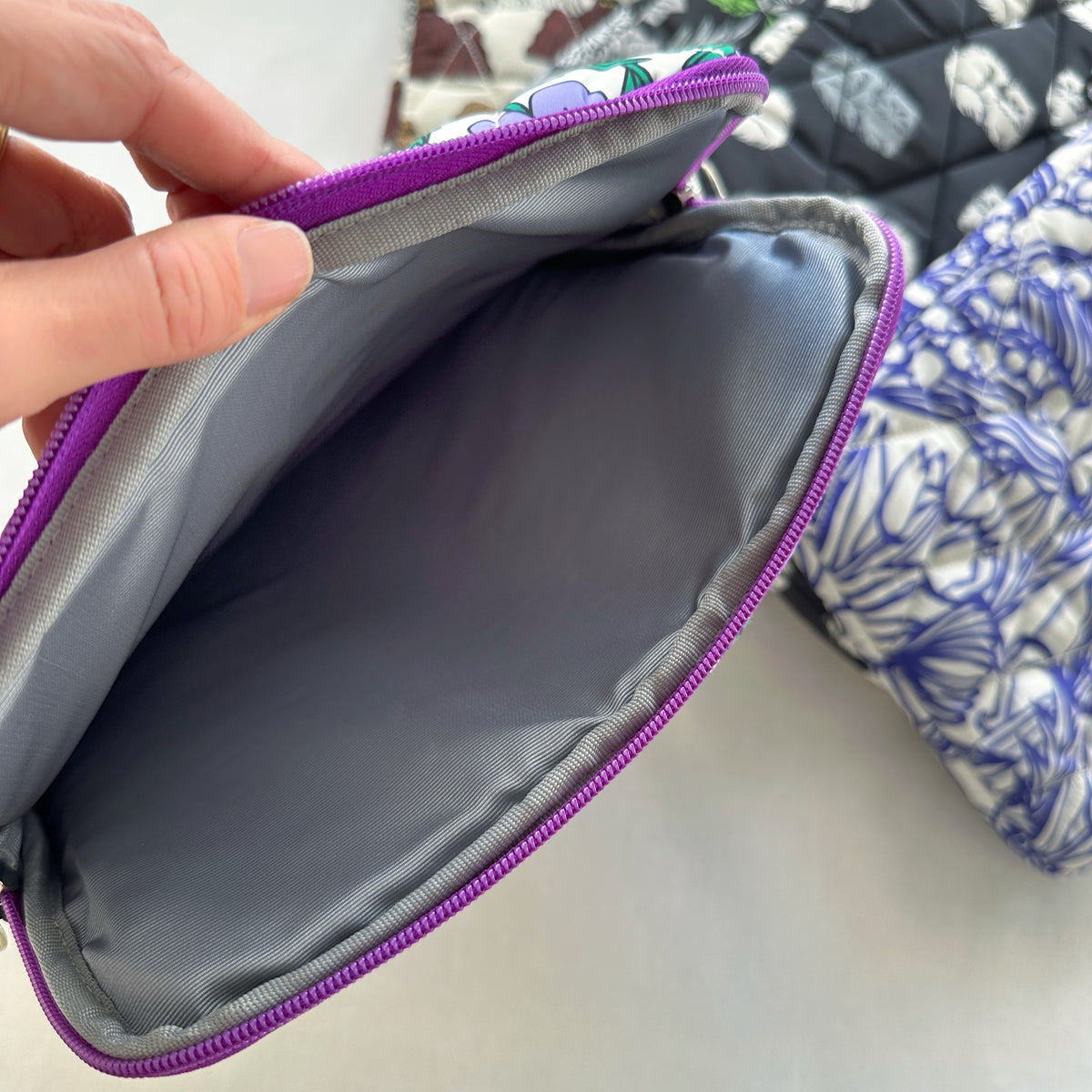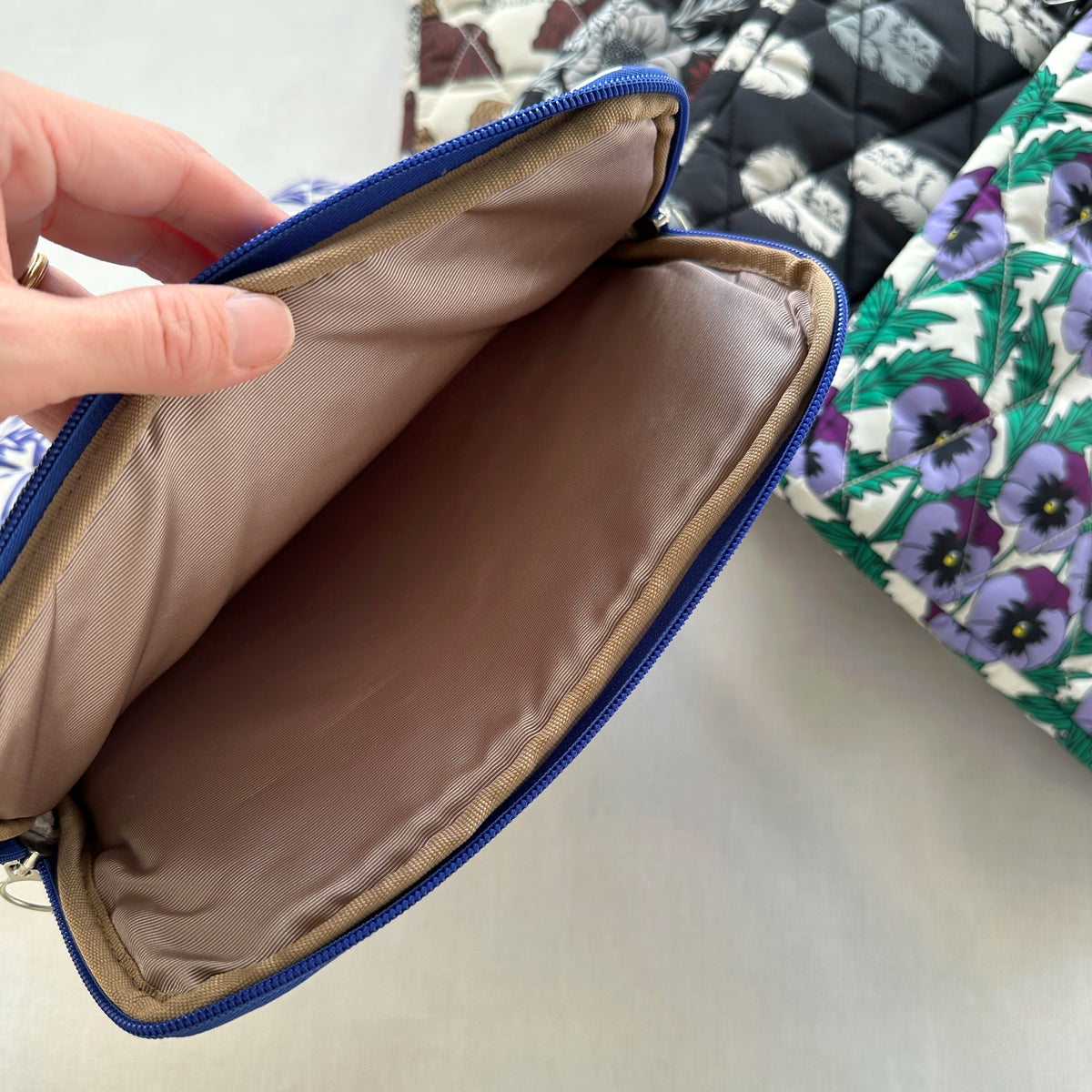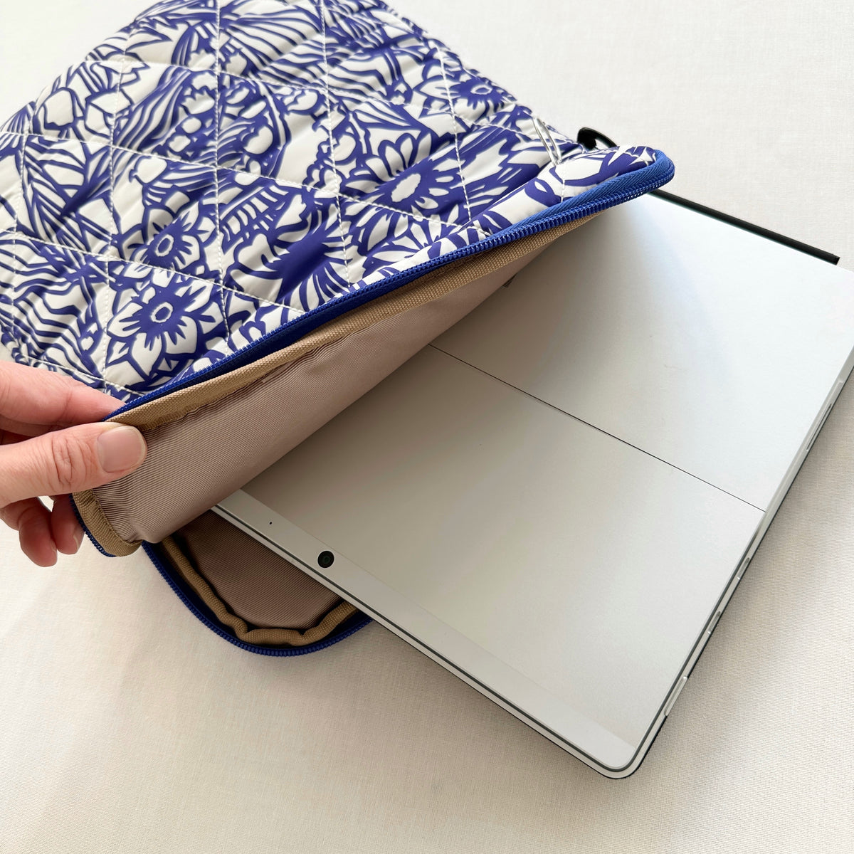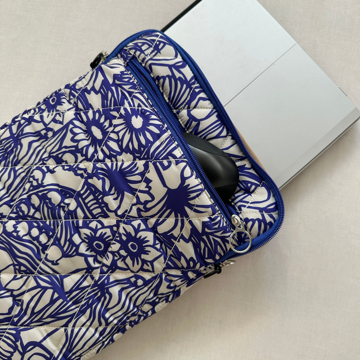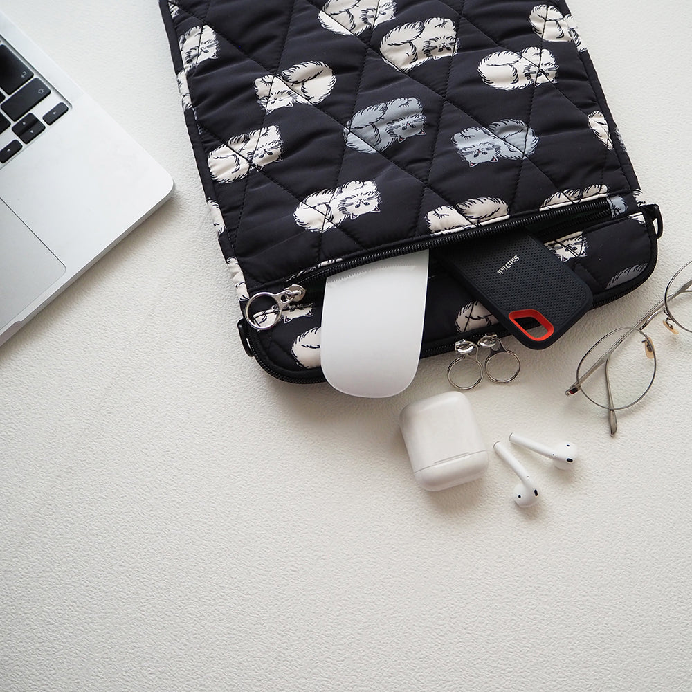 生地はさらっとした手ざわりのキルティング。ノート型PCの保管や持ち運びにぴったり◎