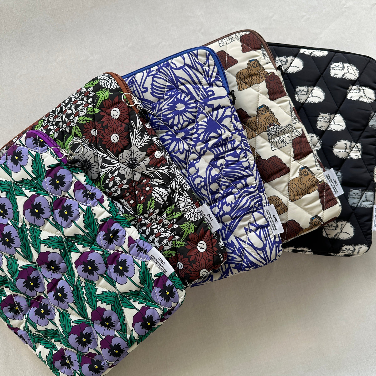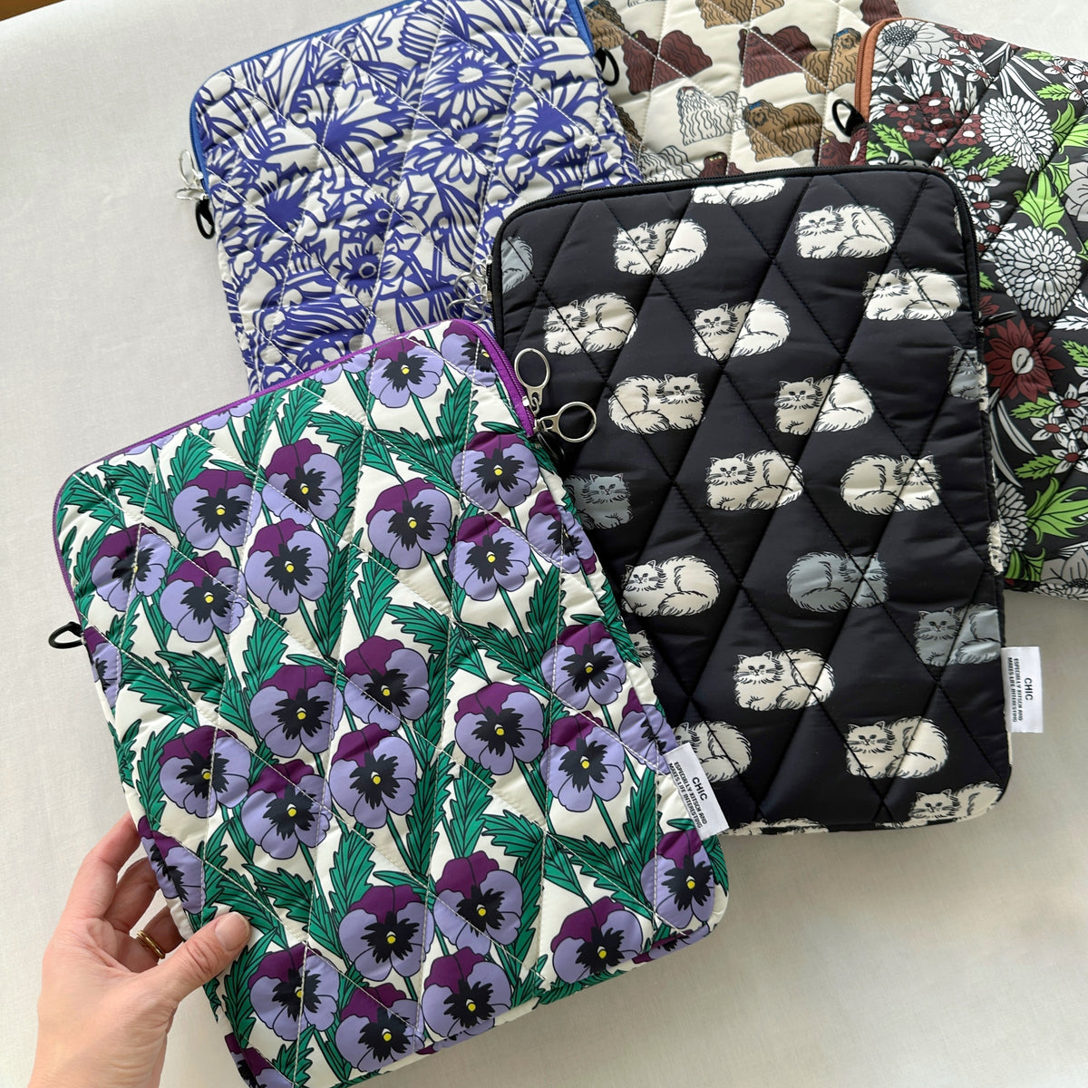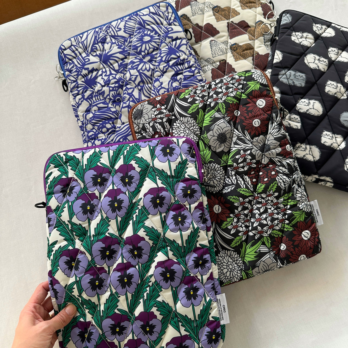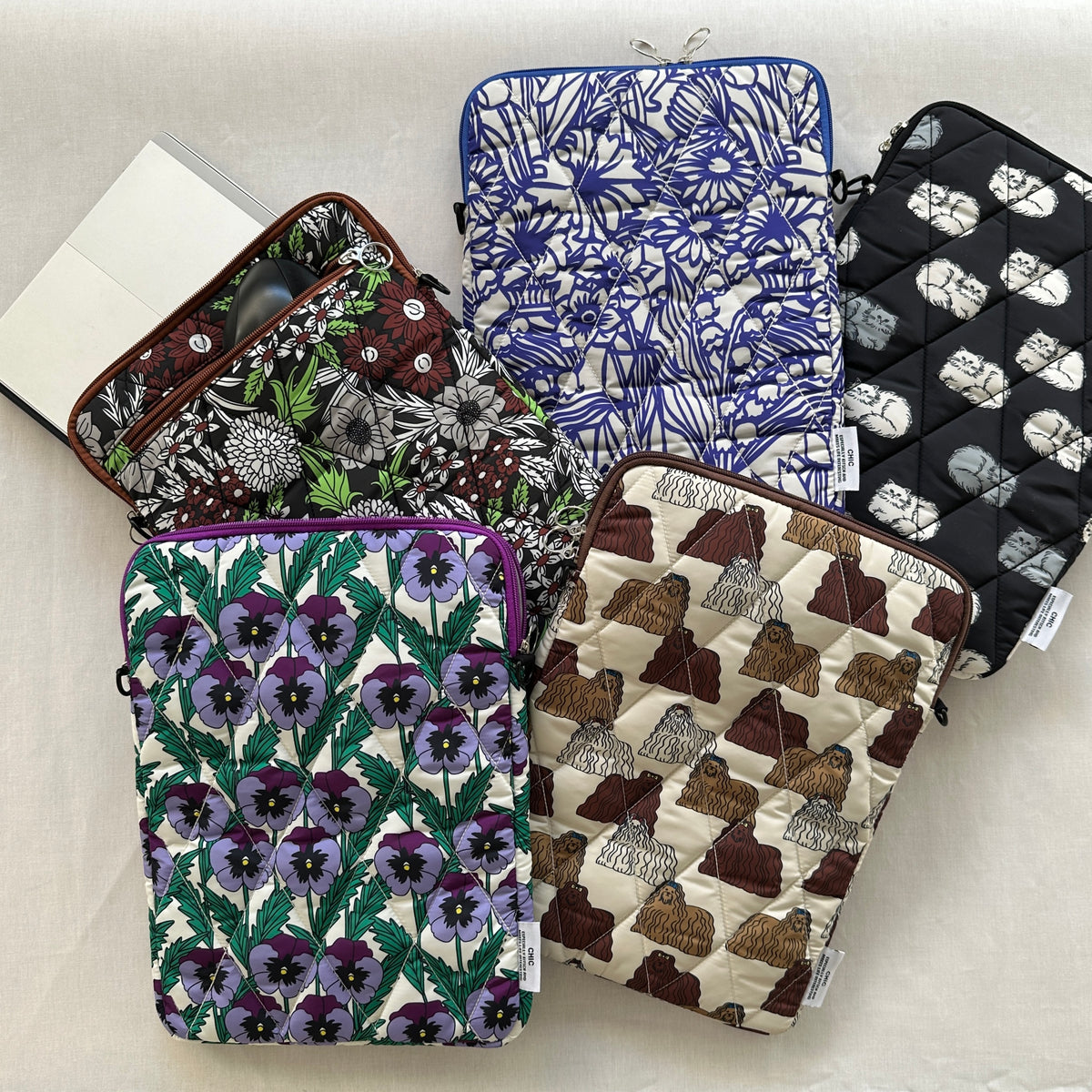 仕事中の気分を上げてくれる、大胆なテキスタイルデザインのPCケース。PCケースといえば無地のものばかり。女子向けの可愛いケースがほしい・・!そんなデザイナーの思いから展開している人気のPCケースシリーズに今期の新柄がそろいました。大胆な色遣いのフラワー柄、いぬ、ねこ柄の全5種類。手に取るたびに気分が上がってお仕事もはかどりそうなスリーブケースです。