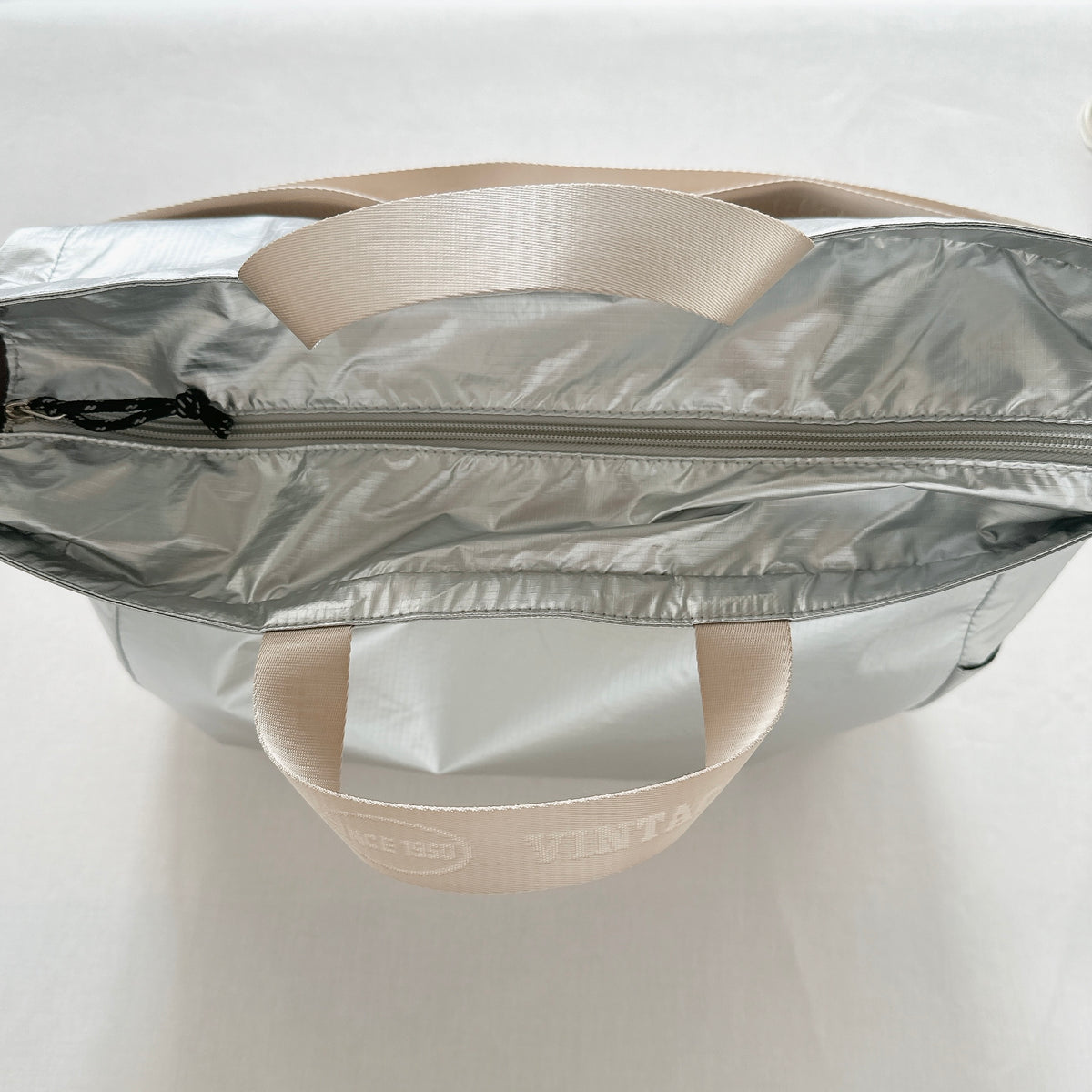 荷物が多い日や、一泊程度の小旅行などに便利なトートバッグ。 開閉がファスナー仕様なので、雨の日も安心です。 調節可能なショルダーテープ付き。