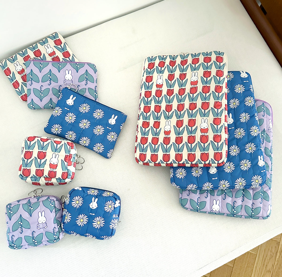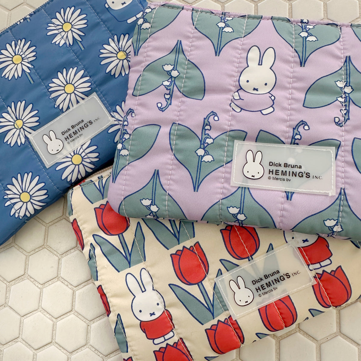 Dick Brunaの絵本に登場するお花のイラストをモチーフにしたフラワーシリーズのフラットポーチ。マチ無しのすっきりしたデザインのポーチはバッグに忍ばせやすく持ち歩きに最適。メイク道具はもちろん、ガジェットやステーショナリーなどのお仕事アイテムをまとめるのもおすすめ。