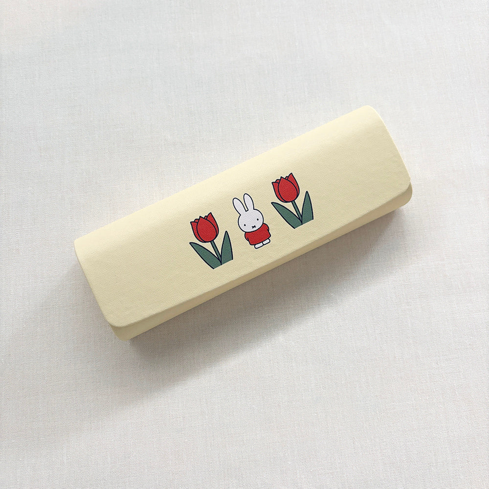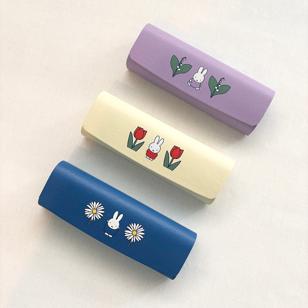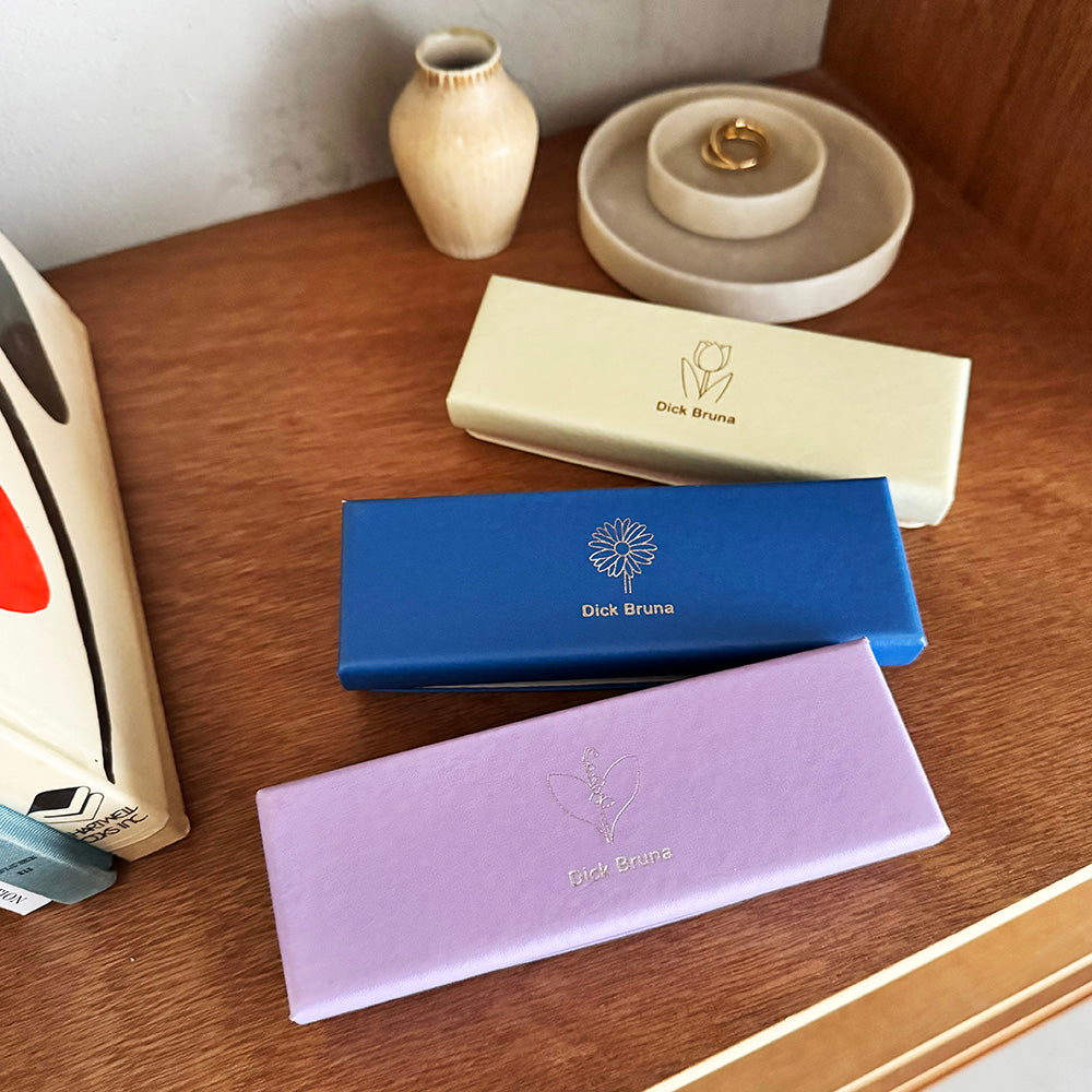 Dick Brunaの絵本に登場するお花のイラストをモチーフにしたフラワーシリーズのキャリングメガネケース。 バッグに入れてもかさばらないスリムタイプで出し入れもしやすいのがポイント。 メガネやサングラスの収納はもちろん、ペンケースとしてもお使いいただけます。