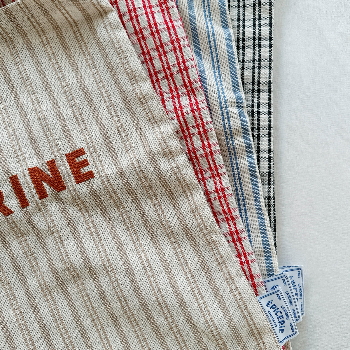 パリの食材店をイメージした「フレンチエピスリー」シリーズ。ナチュラルな雰囲気のチェック柄と、夏らしい爽やかなストライプ柄が新登場しました。大きめサイズで収納力も抜群です。