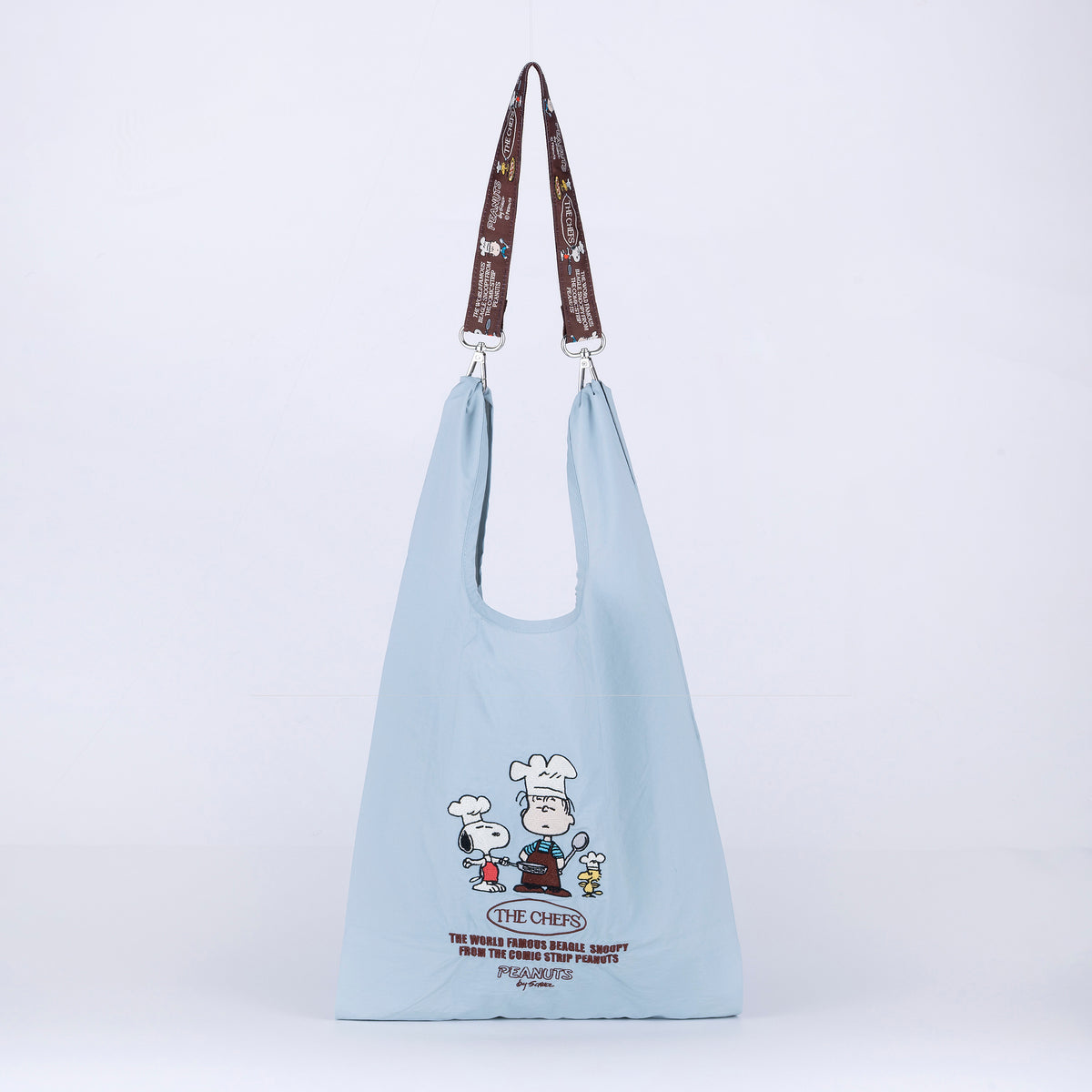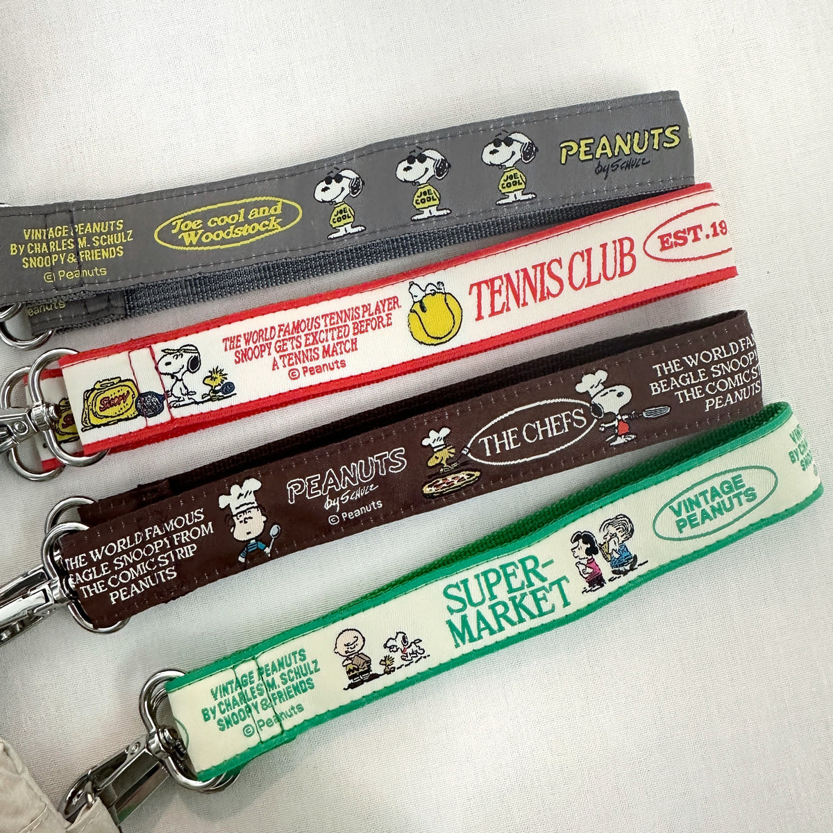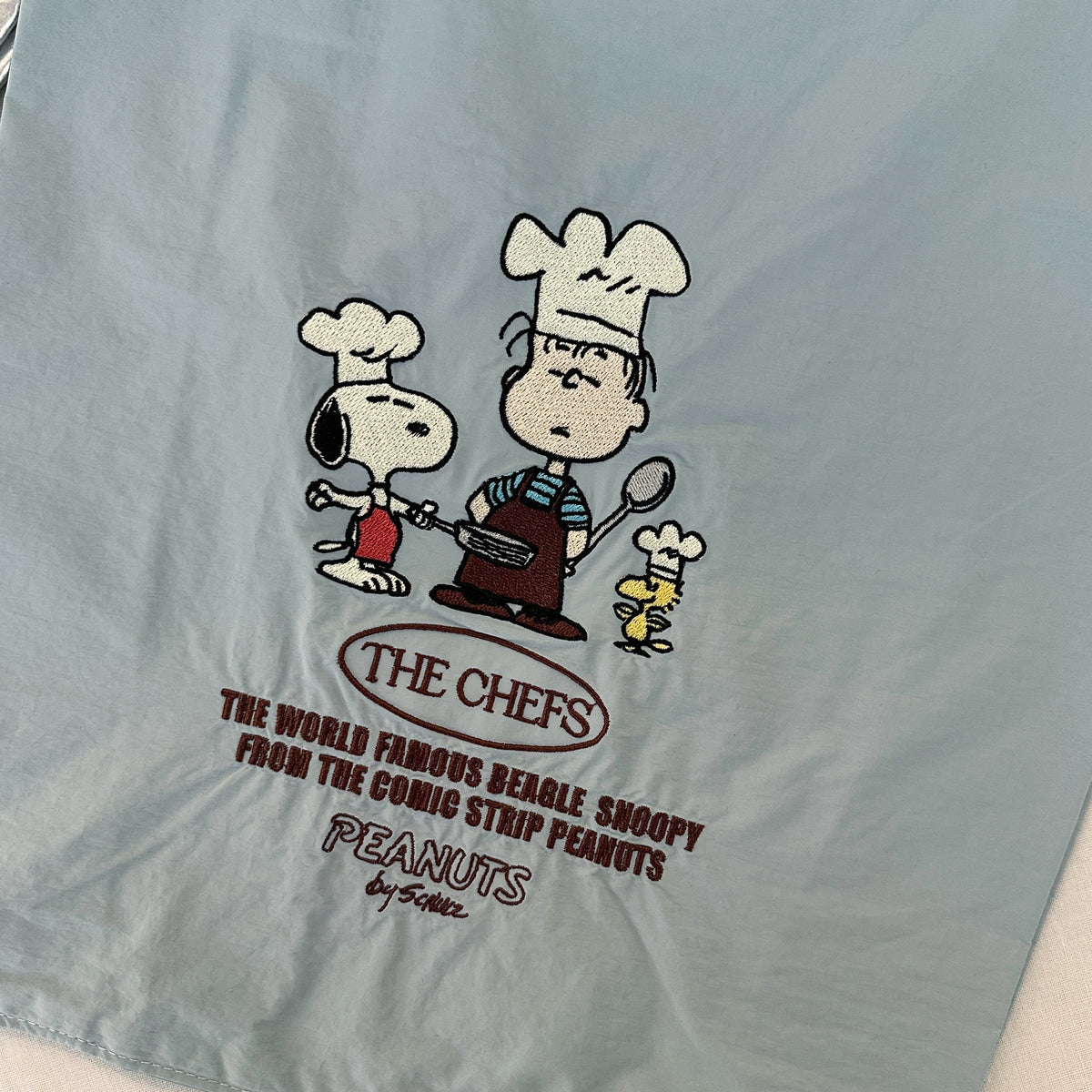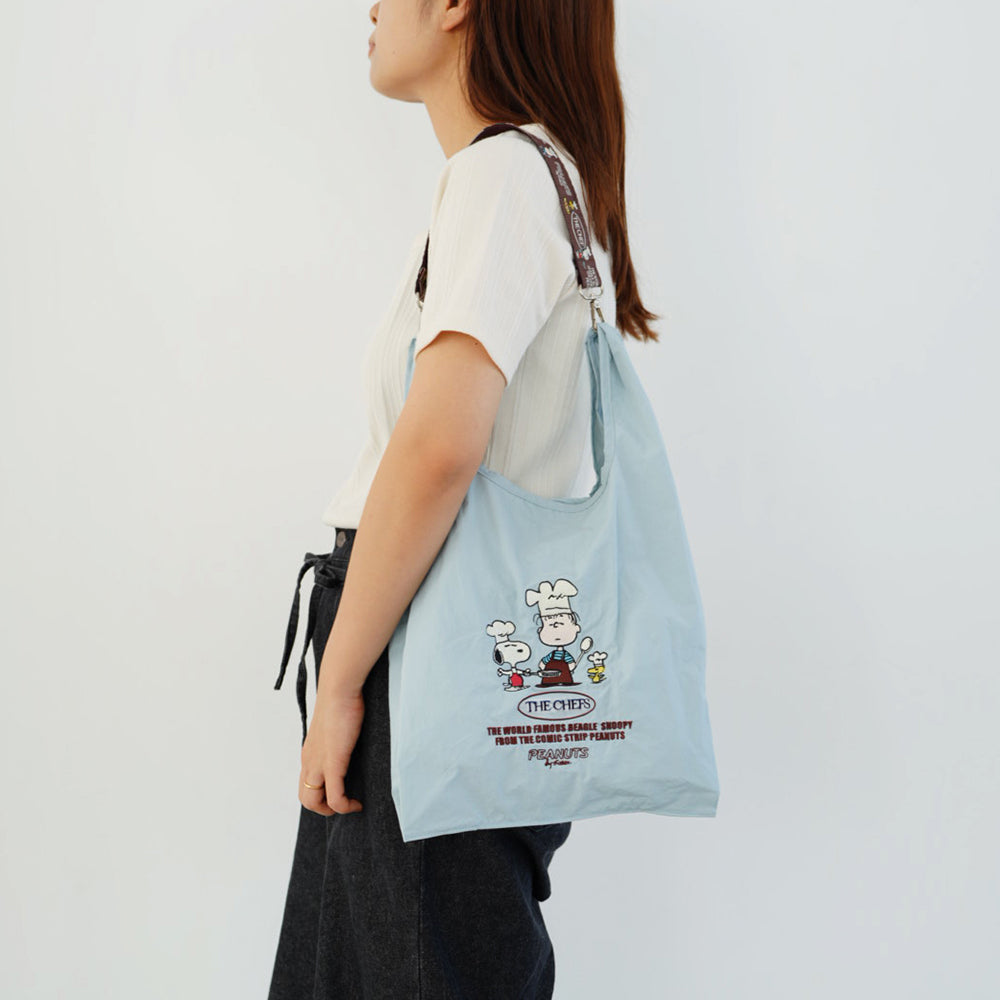 PEANUTSのキャッチーな刺繍が施されたデザイン。全4柄。