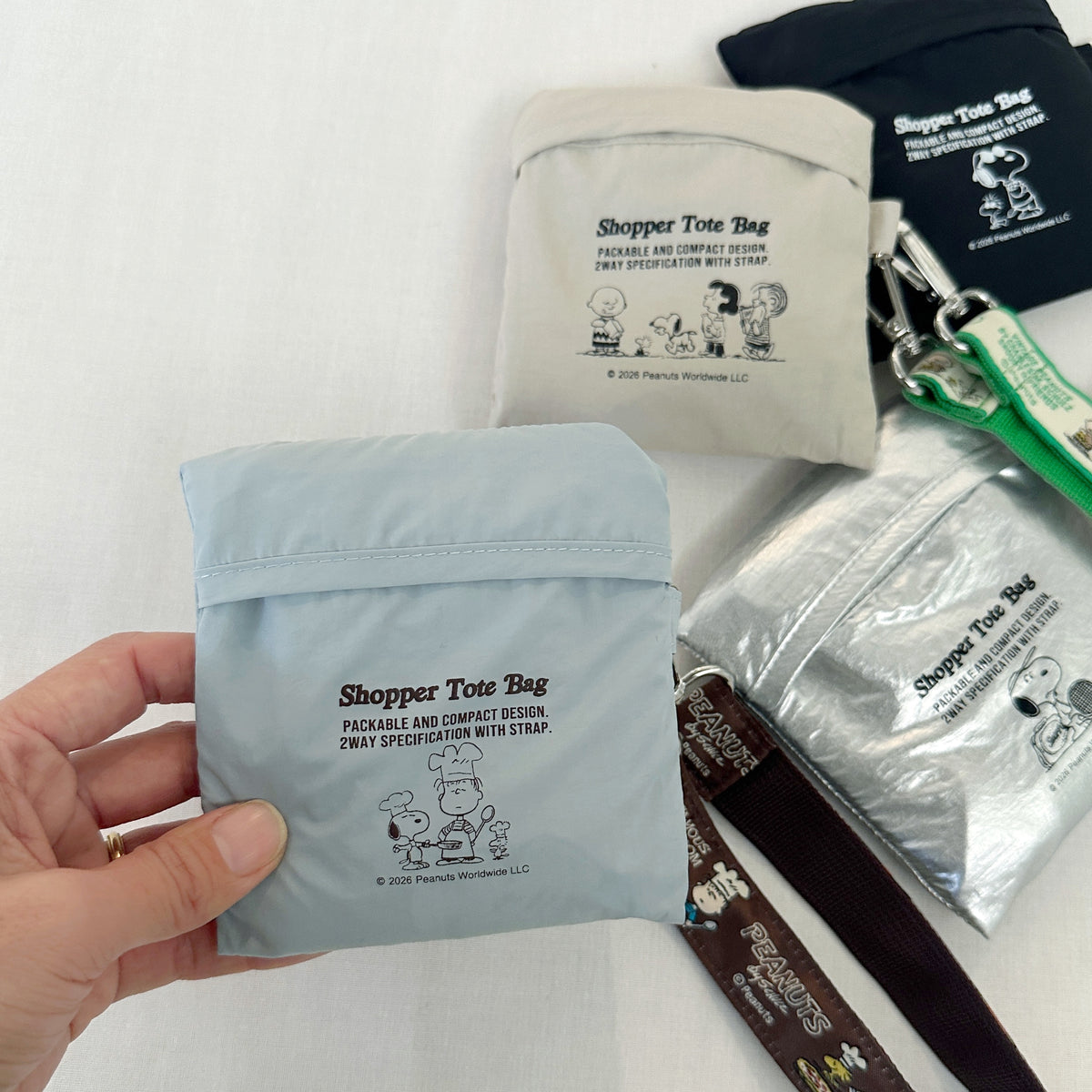 普段のお出かけにはもちろん、サブバッグやエコバッグとしても大活躍するポケッタブルショッパーバッグ。 付属のストラップをバッグに取り付けると肩がけできる仕様にできる2WAYタイプ。