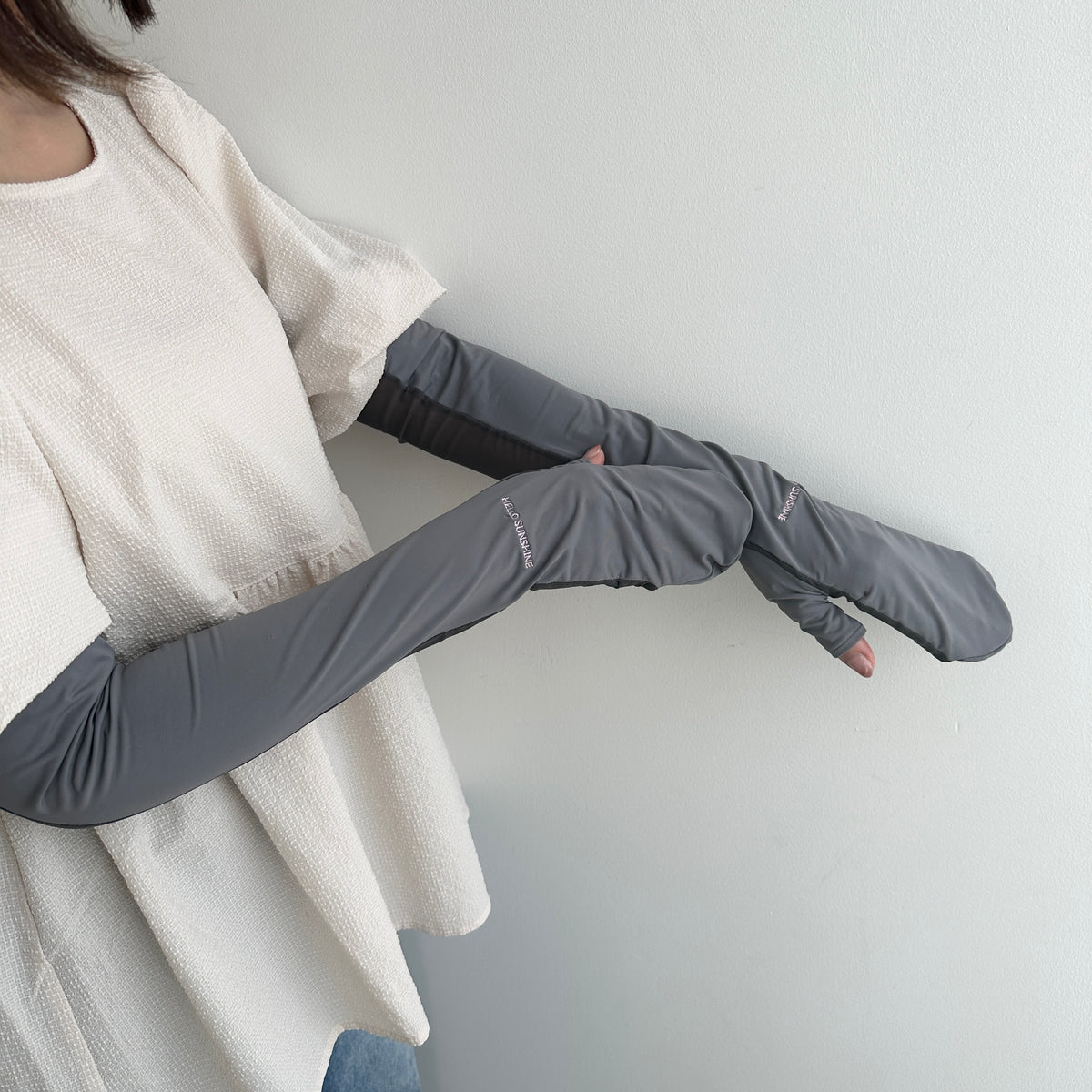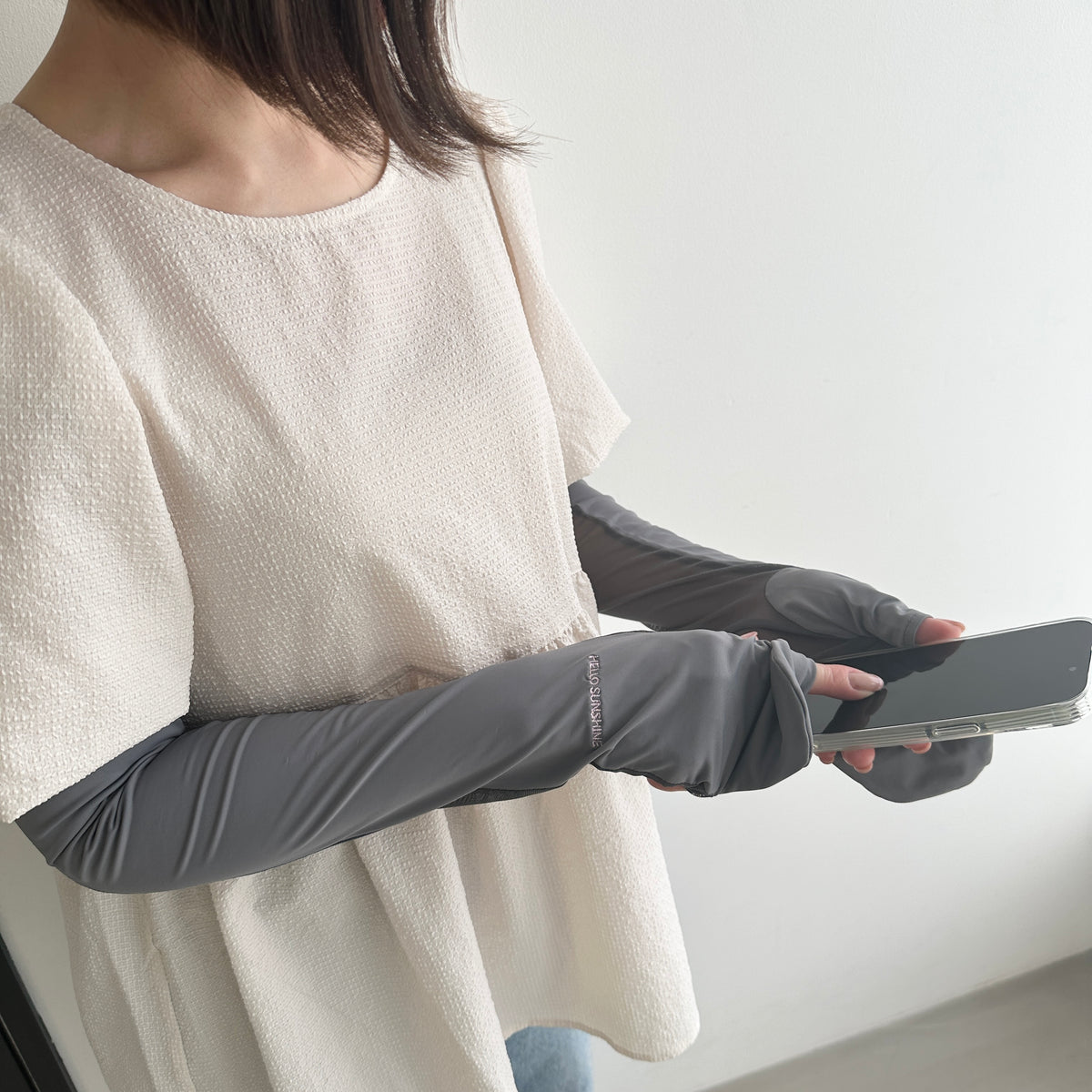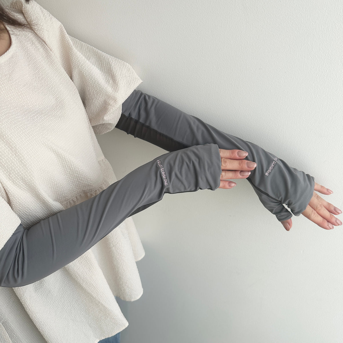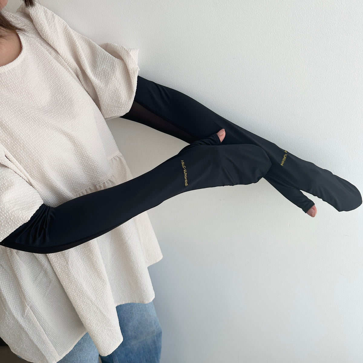 接触冷感&UVケア機能を備えた、夏の外出に頼れるアームカバー。さらっとしたつけ心地で、控えめなロゴ刺繍がほどよくカジュアル感をプラス。指先までしっかりカバーする仕様なので、自転車や車での移動時も安心です。