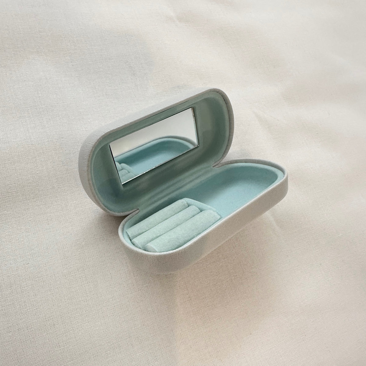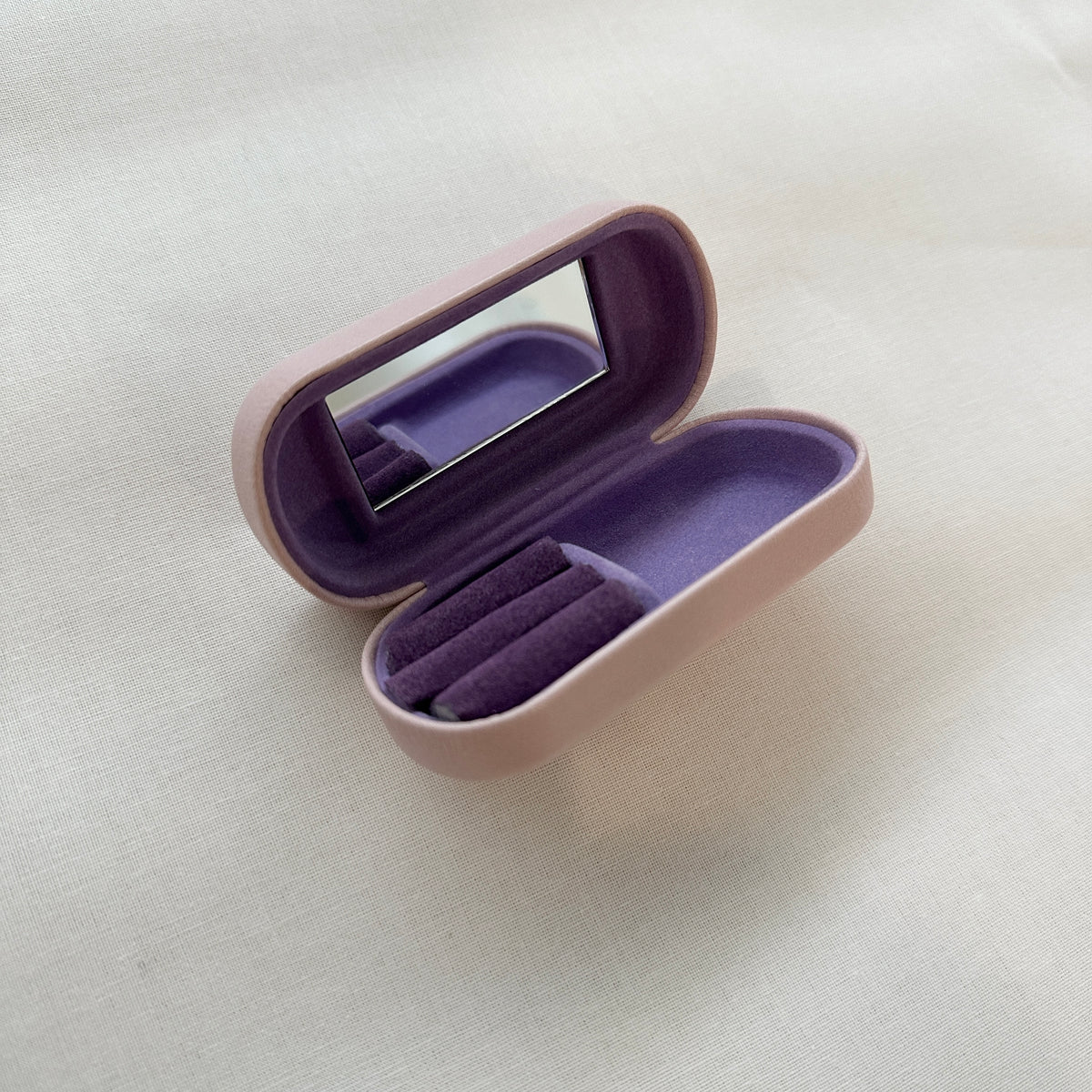 内側は起毛素材になっており大切なアクセサリーなどを優しく保管することができます。ミラー付き。