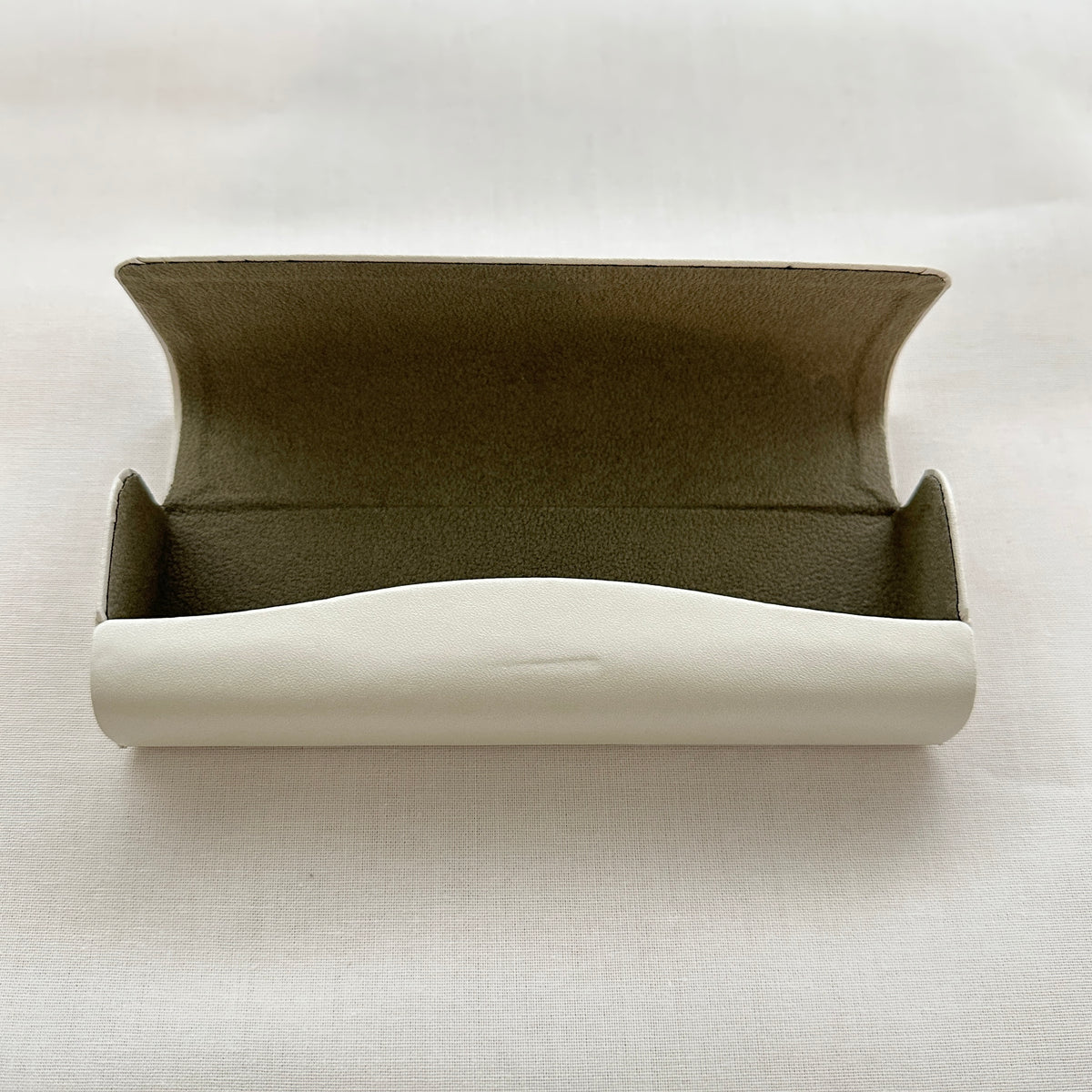上蓋が全開してメガネを出し入れしやすい仕様。バッグに入れてもかさばらない、スリムタイプのメガネケースです。