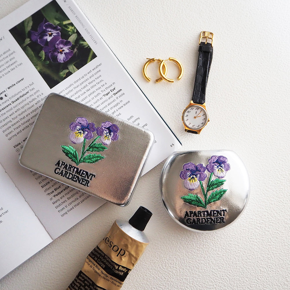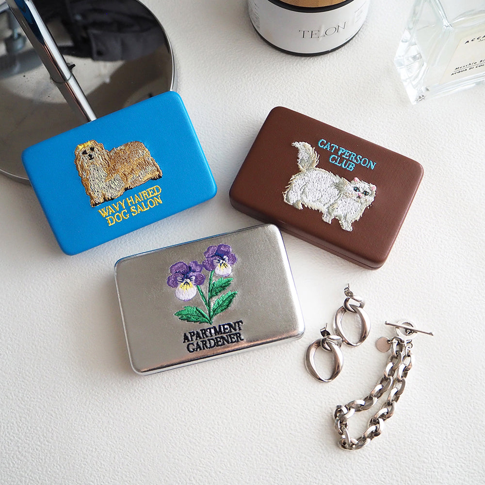 わたし(あなた)の好きなモノ・コトを刺繍デザインに落とし込んだコンパクトミラーケース 。