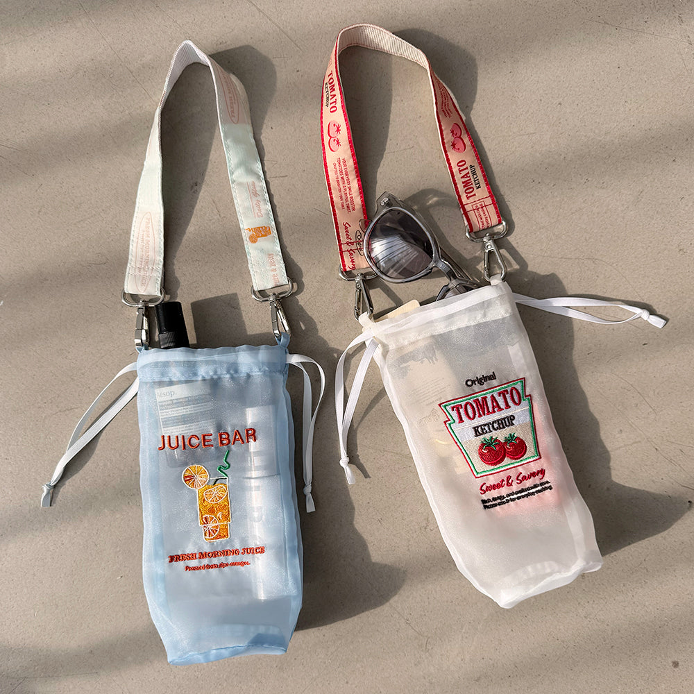 モチーフ刺繍が可愛い保冷ボトルホルダー。薄手なのでバッグの中でも場所を取らず持ち運べます。保冷生地を外せば透け感のあるホルダーに早変わり。サングラスや日焼け止めを入れてもおしゃれに持ち歩けます。