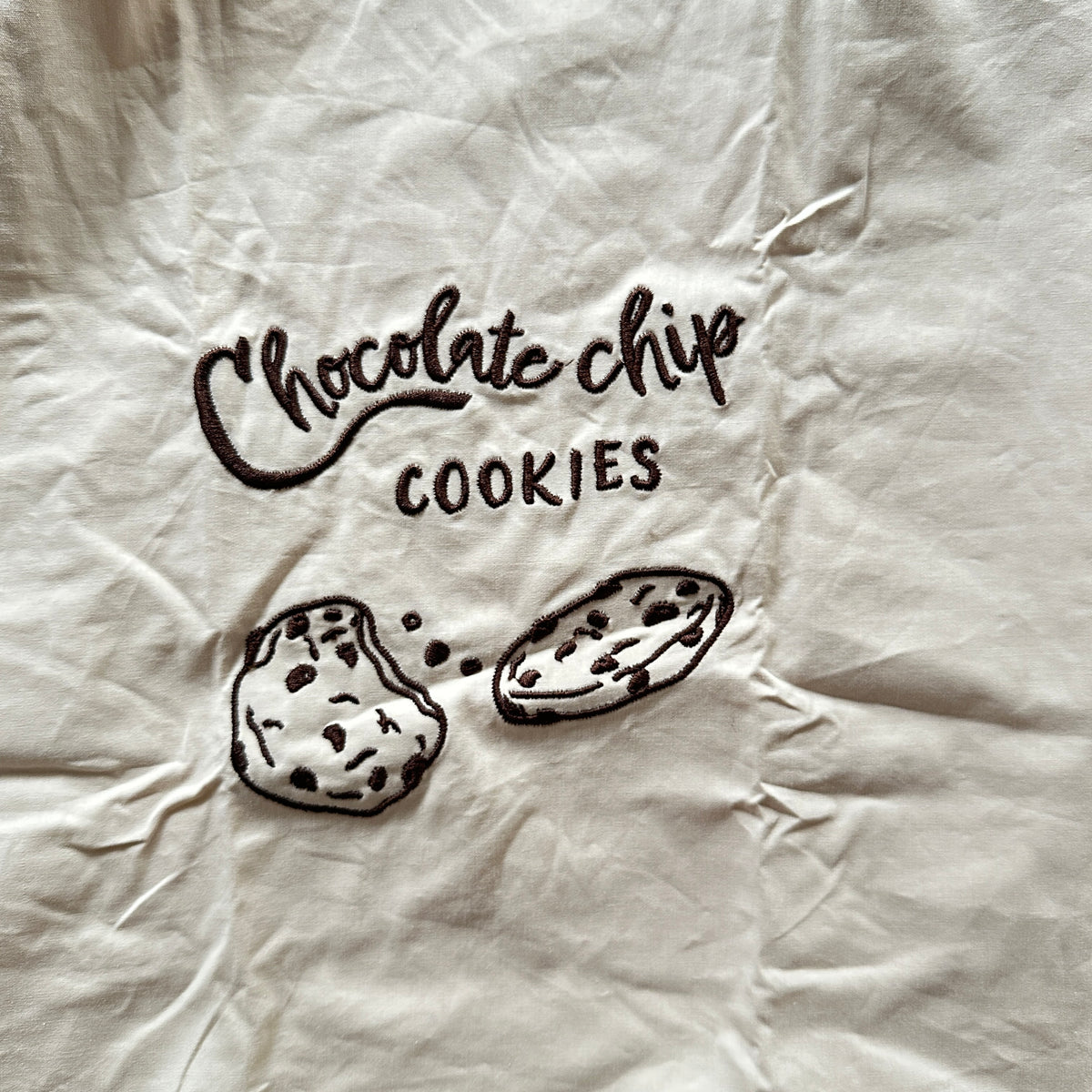 さくっと甘いチョコチップクッキーのイラスト入り。イラストにあったタイポグラフィもポイントです。