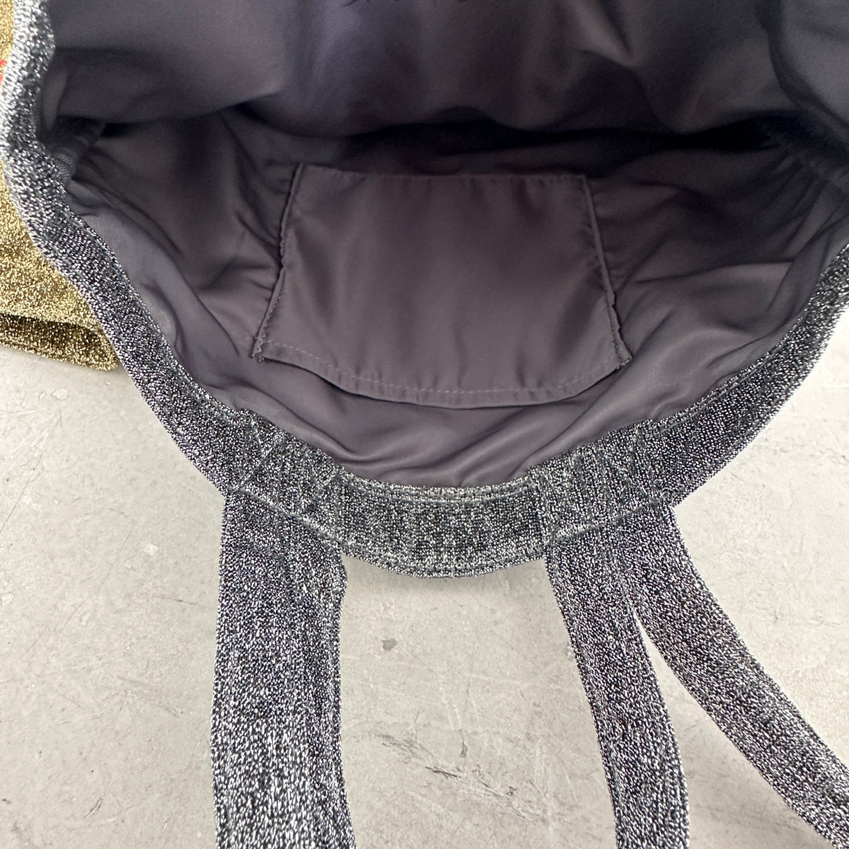 装いのアクセントになる刺繍がかわいいラメトートです。