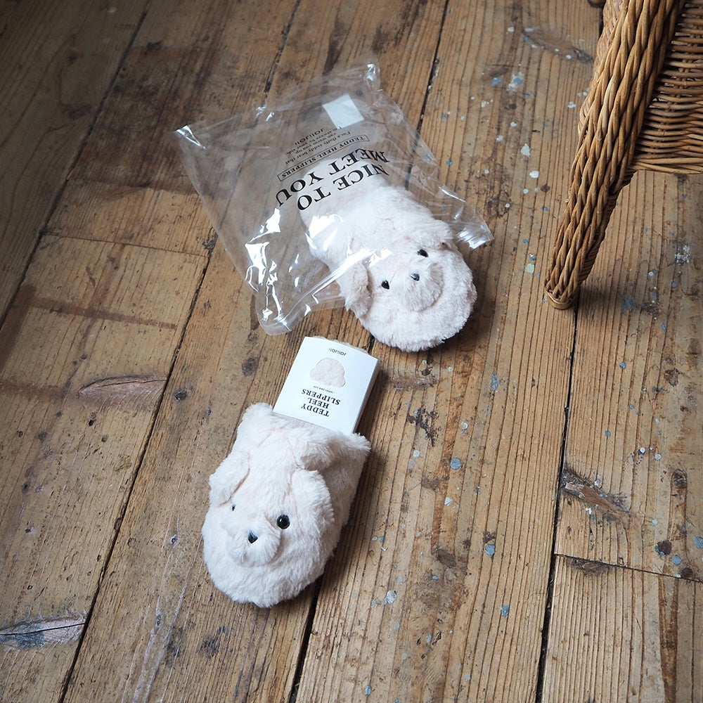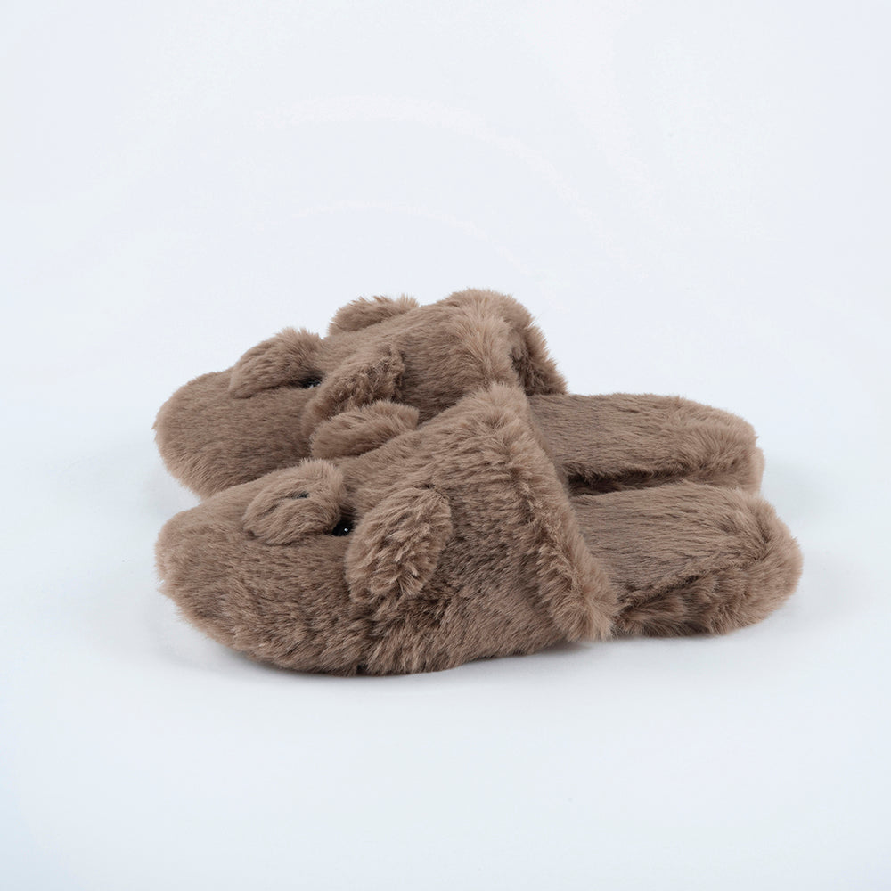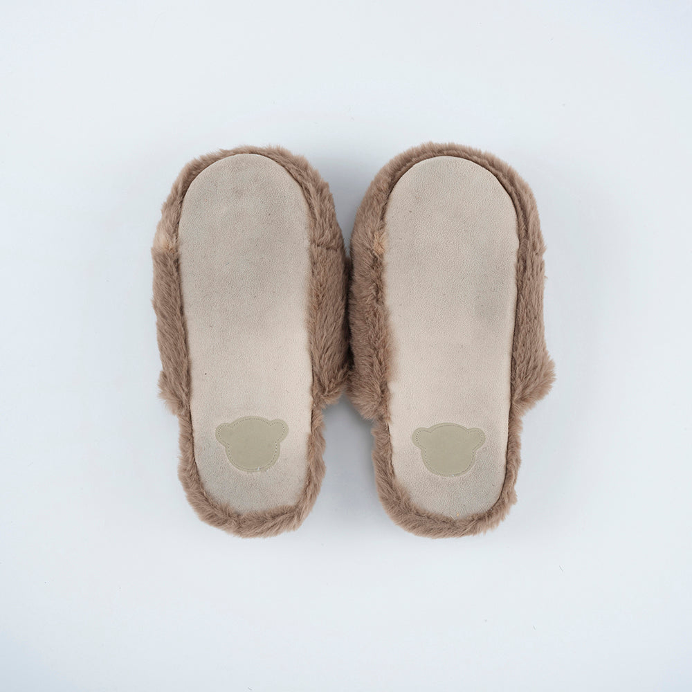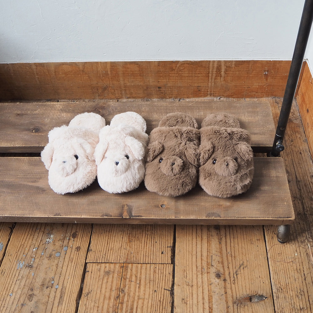 ふわふわの柔らかいファーで、やみつきになる履き心地! くまの顔があしらわれた、ぬいぐるみみたいな「テディスリッパ」