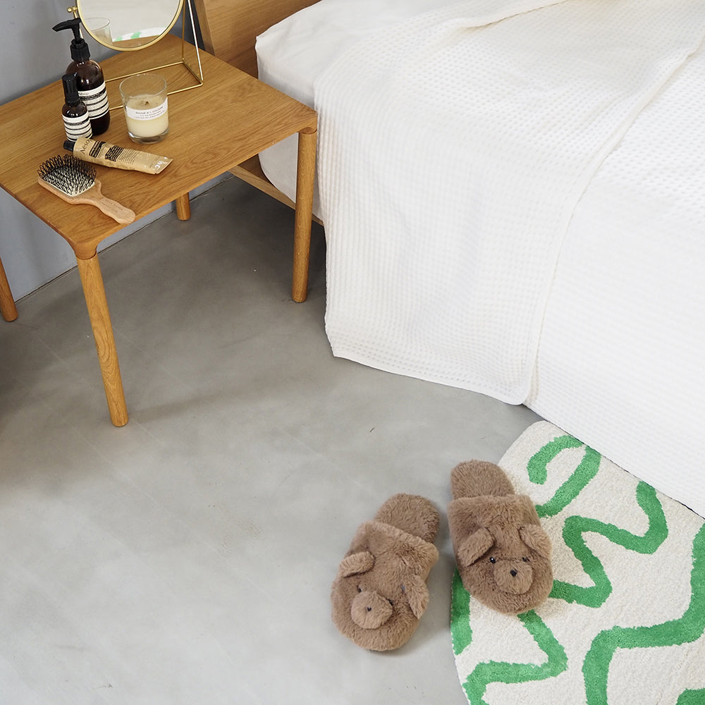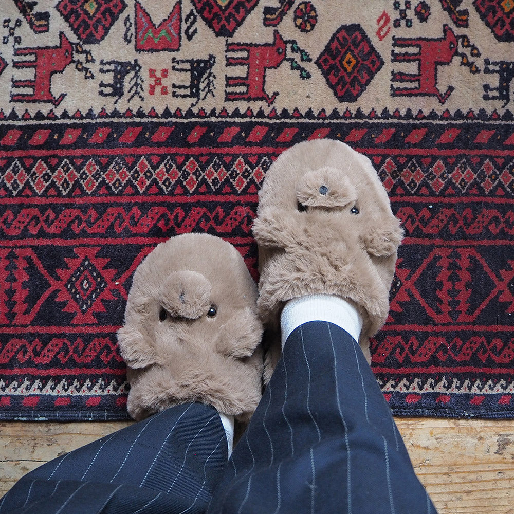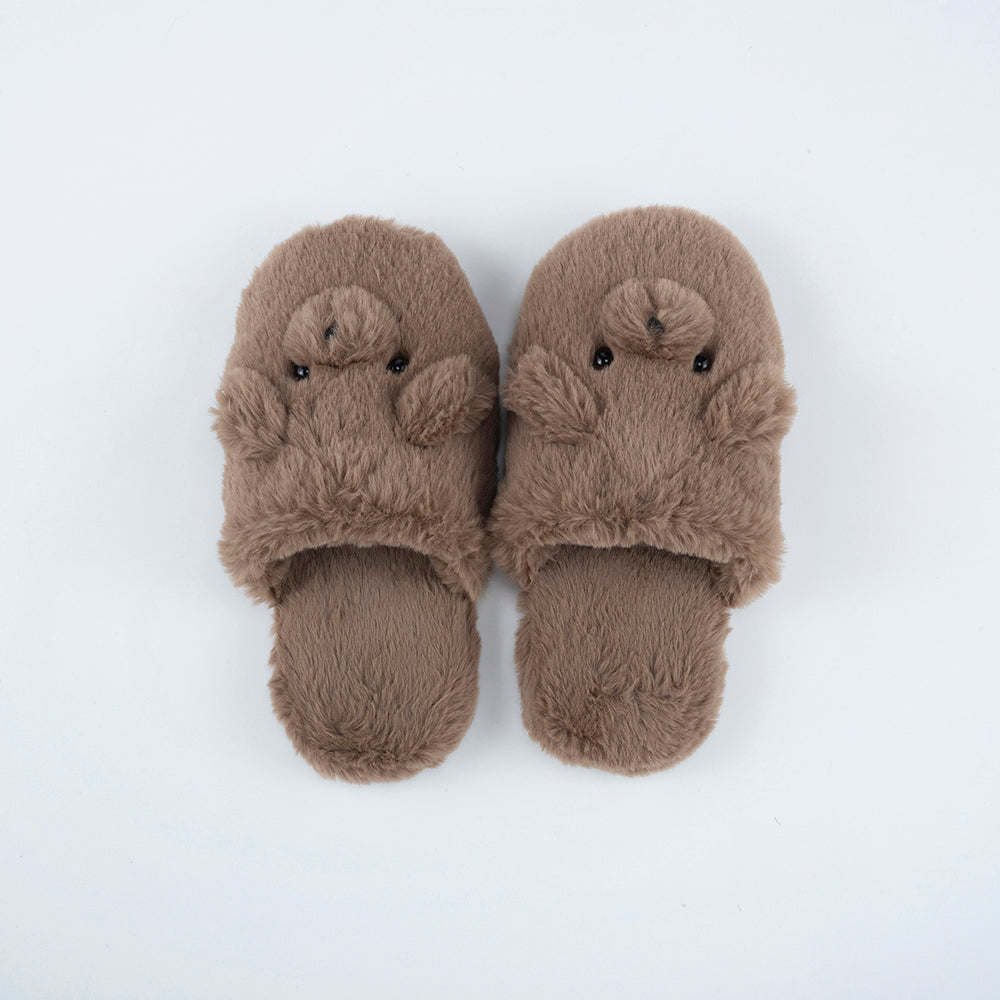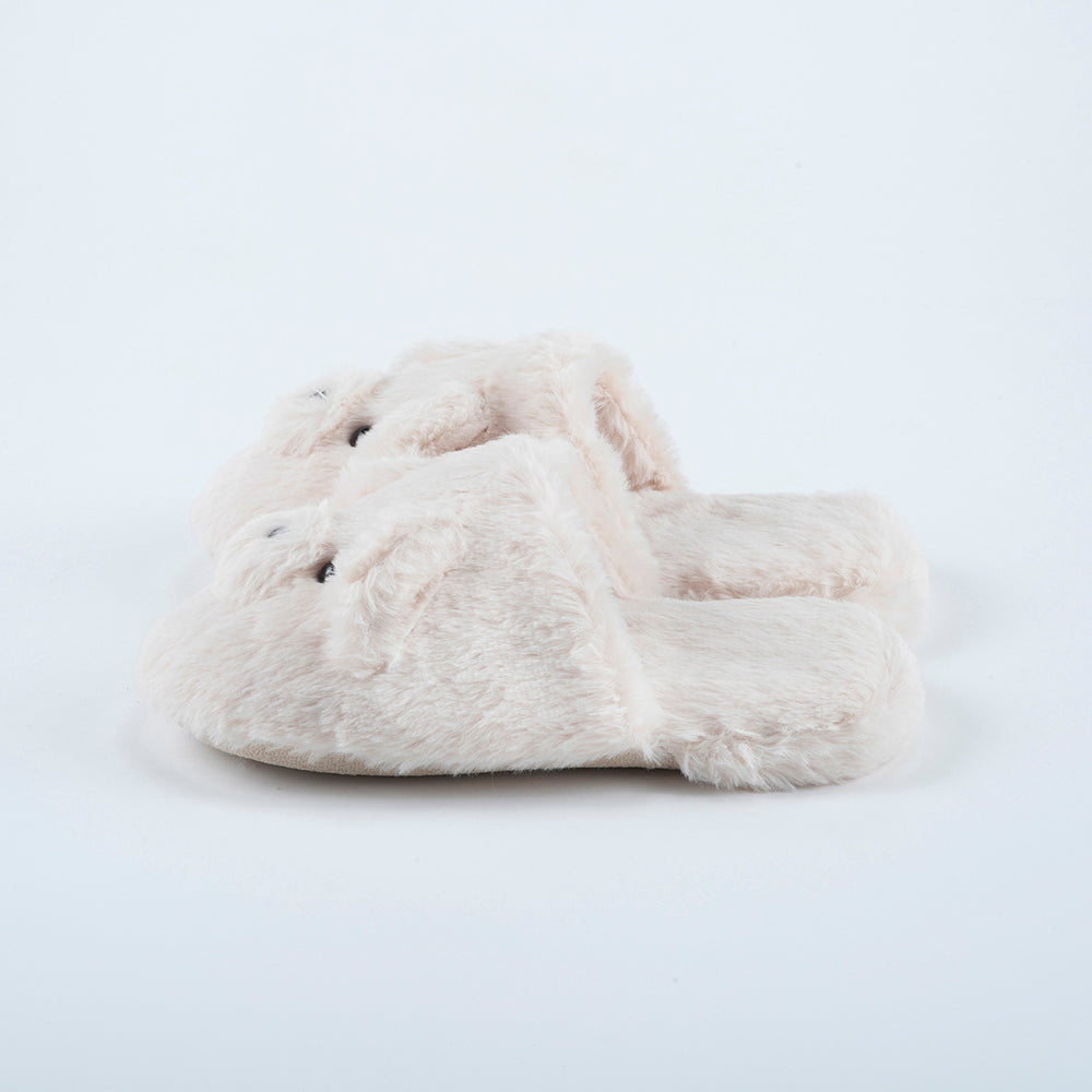 ふわふわの柔らかいファーで、やみつきになる履き心地! くまの顔があしらわれた、ぬいぐるみみたいな「テディスリッパ」