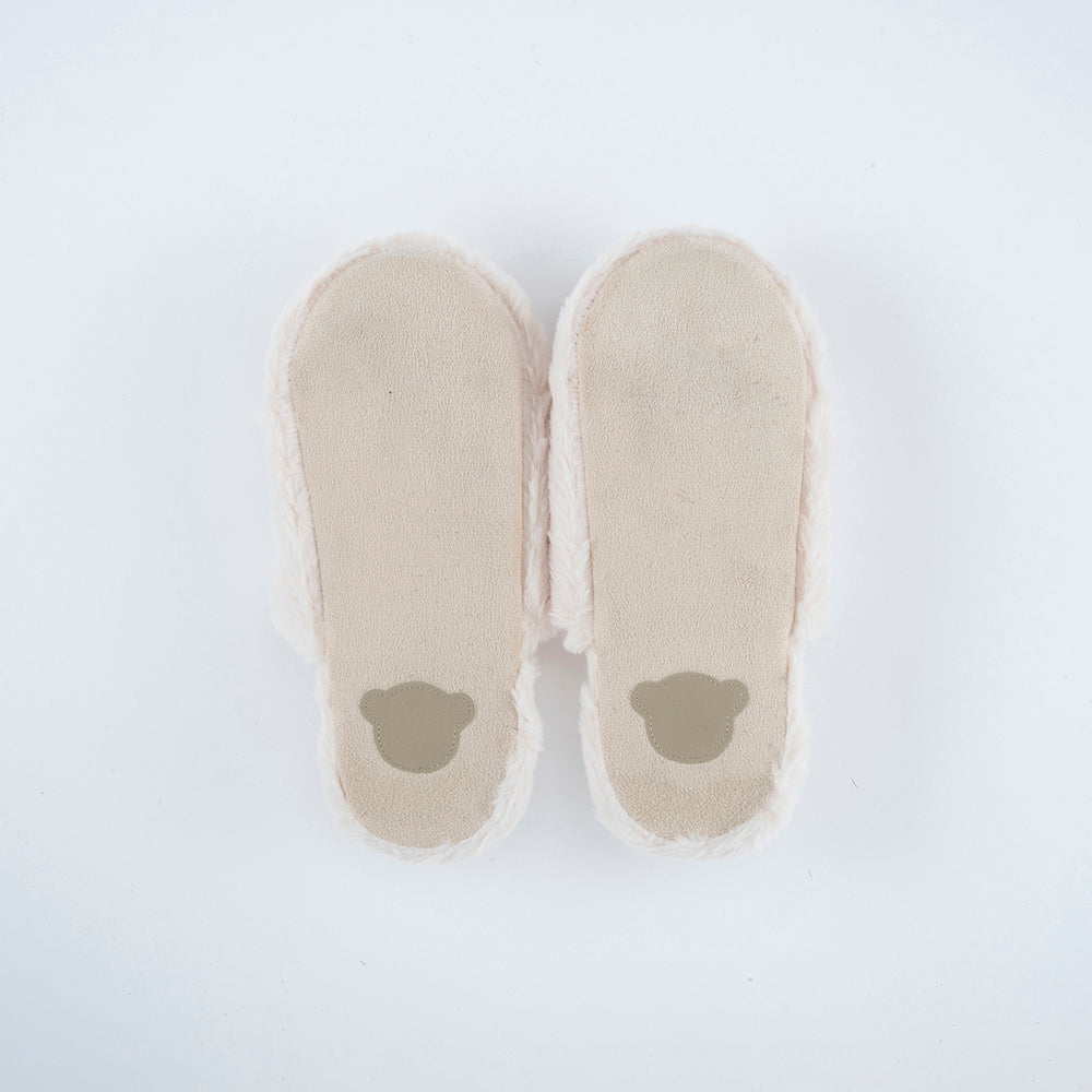 テディウォーマーのくまをそのままスリッパにしたような、ぬいぐるみみたいに可愛いスリッパ。足を入れる内側もファー素材なので温かく、ふわふわのインソールが履き心地抜群!冷えが気になる足元を心地よく温めてくれます。(保温剤は入っていません)。