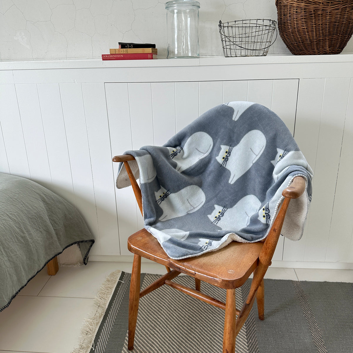 [愛くるしい表情の猫たちがモチーフ]コピーヌブランケット