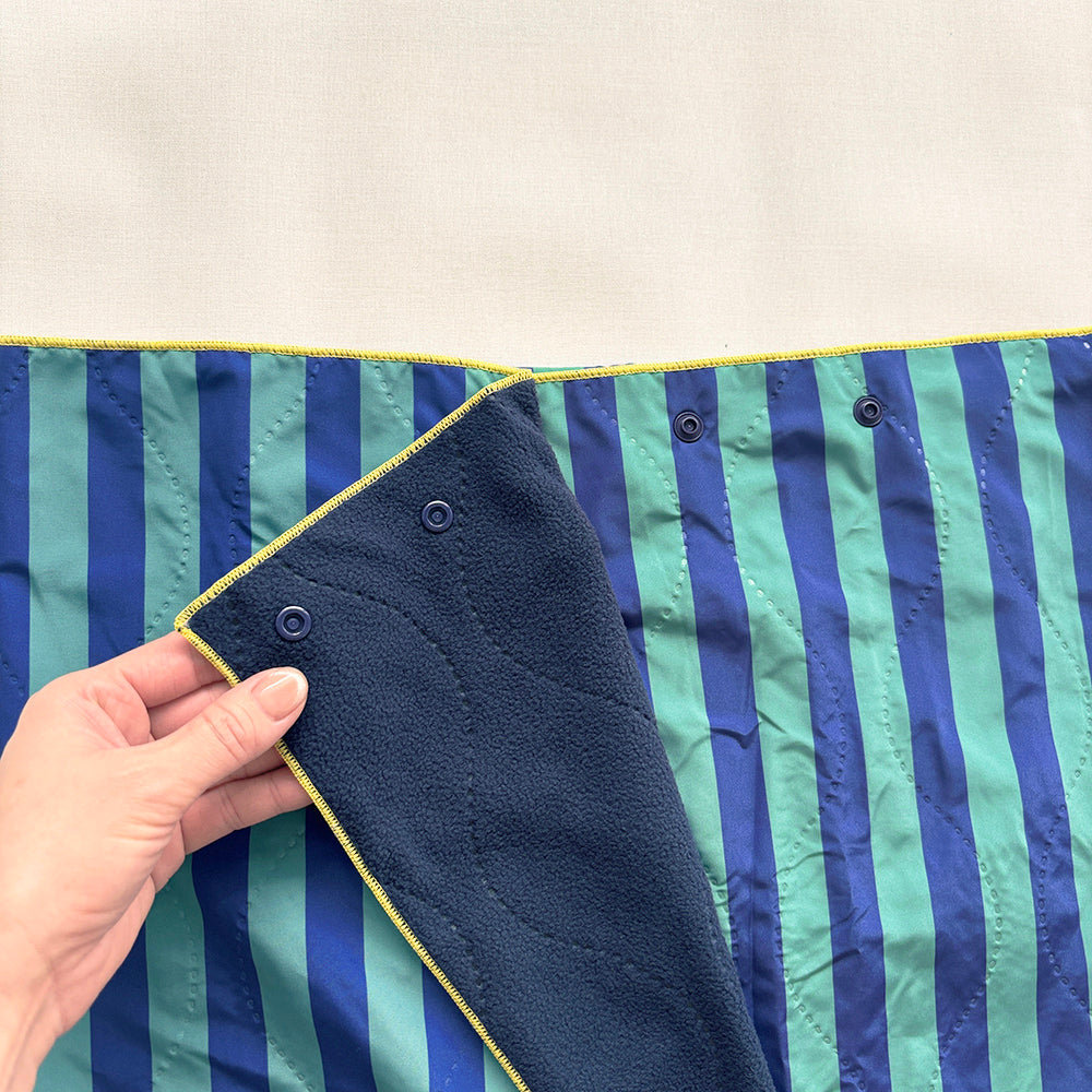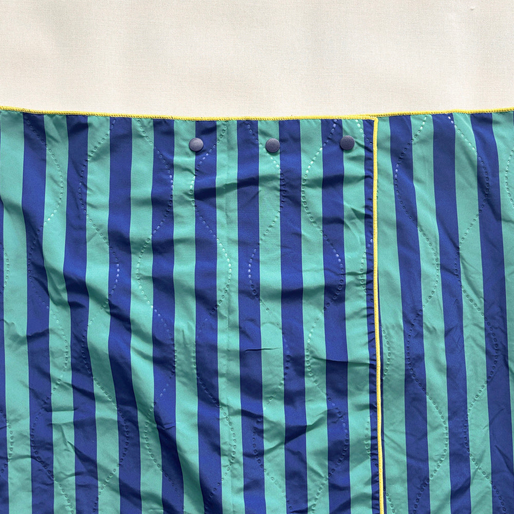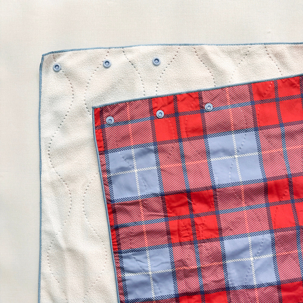 表面のプリント側には撥水加工が施されています。急に雨が降り出した時なども、水滴がしみ込まず、さっときれいに拭き取れます。屋外で使うのにもおすすめのブランケットです。