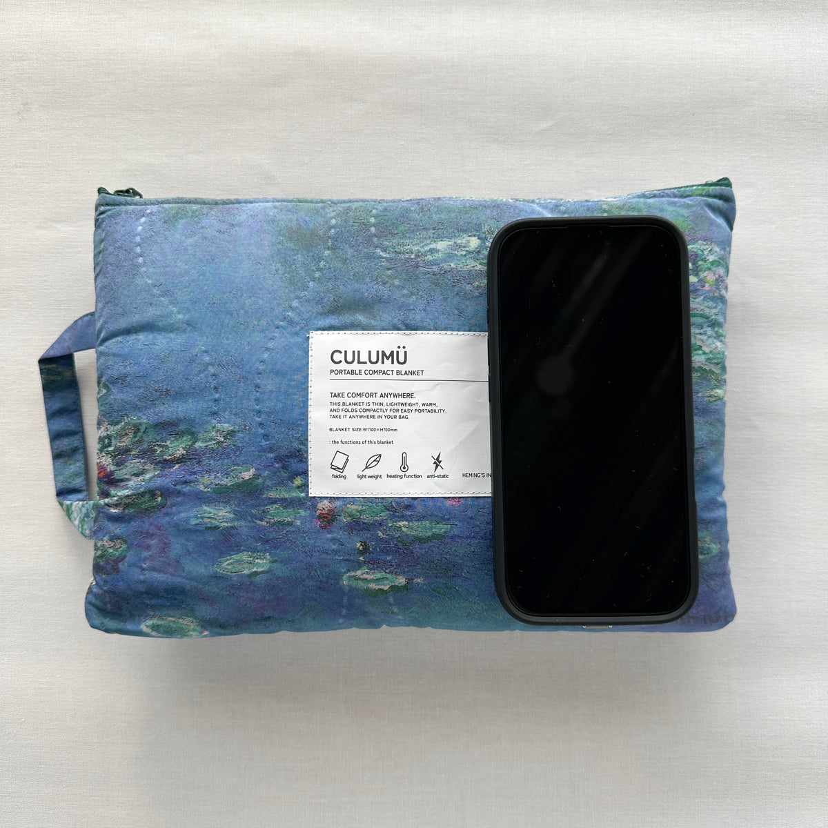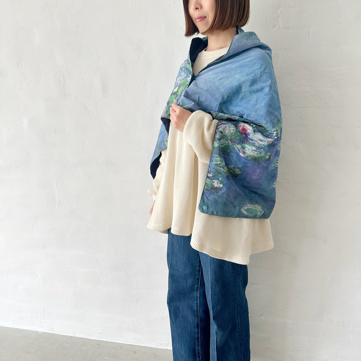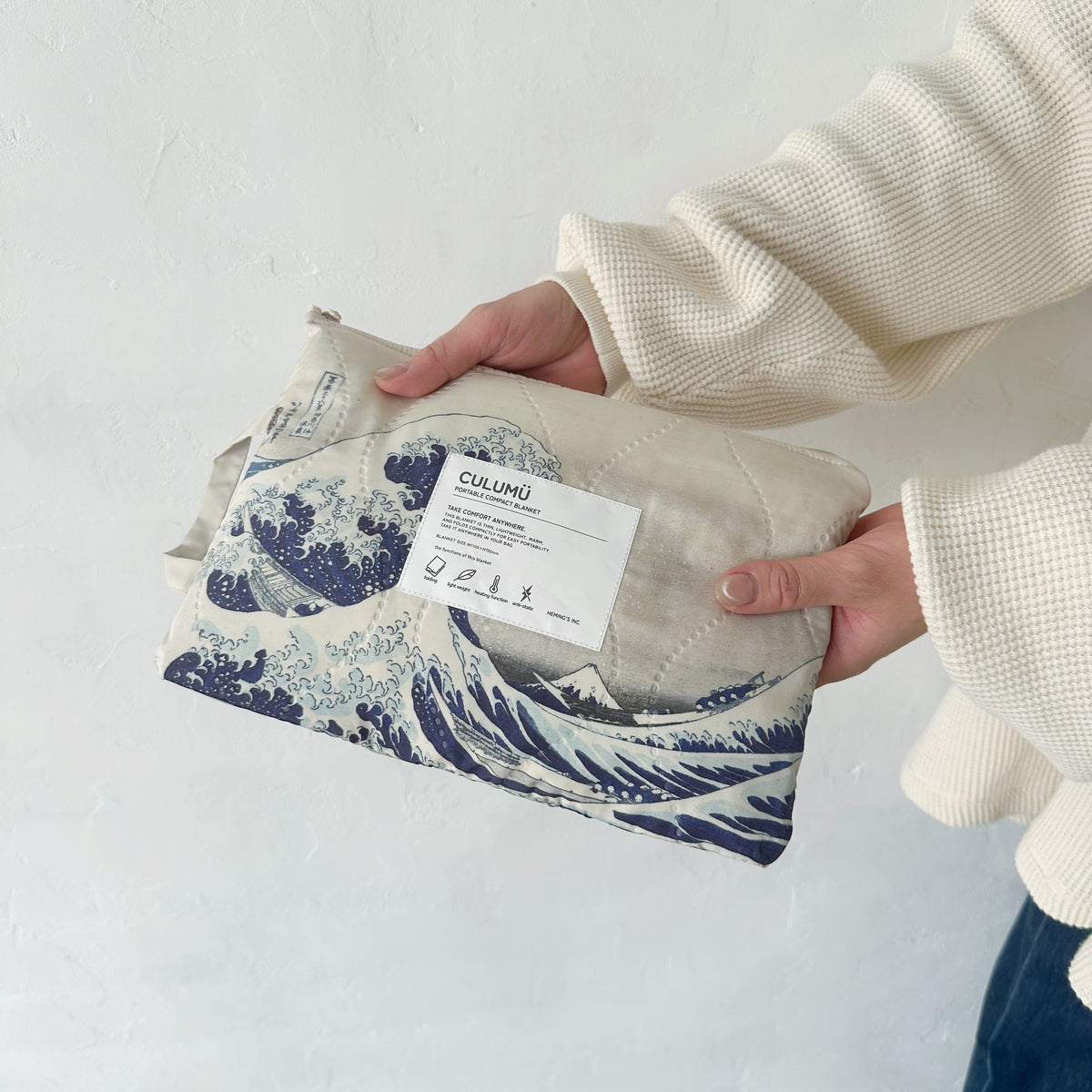”CULUMU(クルム)” は薄くて軽くて暖かい、小さくたたんでコンパクトに持ち運べるブランケット。くるっと巻く仕草「くるむ」から名付けました。“CULUMU”は、オフィスやスポーツ観戦、ピクニックやフェスなどどこにでもバッグに入れて持っていけるサイズ感がポイント。発熱フリースを使用しているので暖かく、また静電気防止加工が施されているので、冬場のちょっとしたストレスを軽減してくれます。CULUMUは、膝掛け、ケープ、ボレロ、巻きスカートの4wayで使用できるので、外やオフィス、お家の中でなど、シーンに合わせた使い方ができるのもうれしいポイントです。軽量コンパクトなのでバッグに入れてどこにでも持ち運べます。オフィスや車に常備しておいても便利です。MUSEUMシリーズは、日本の名画、世界の名画の全6種類。