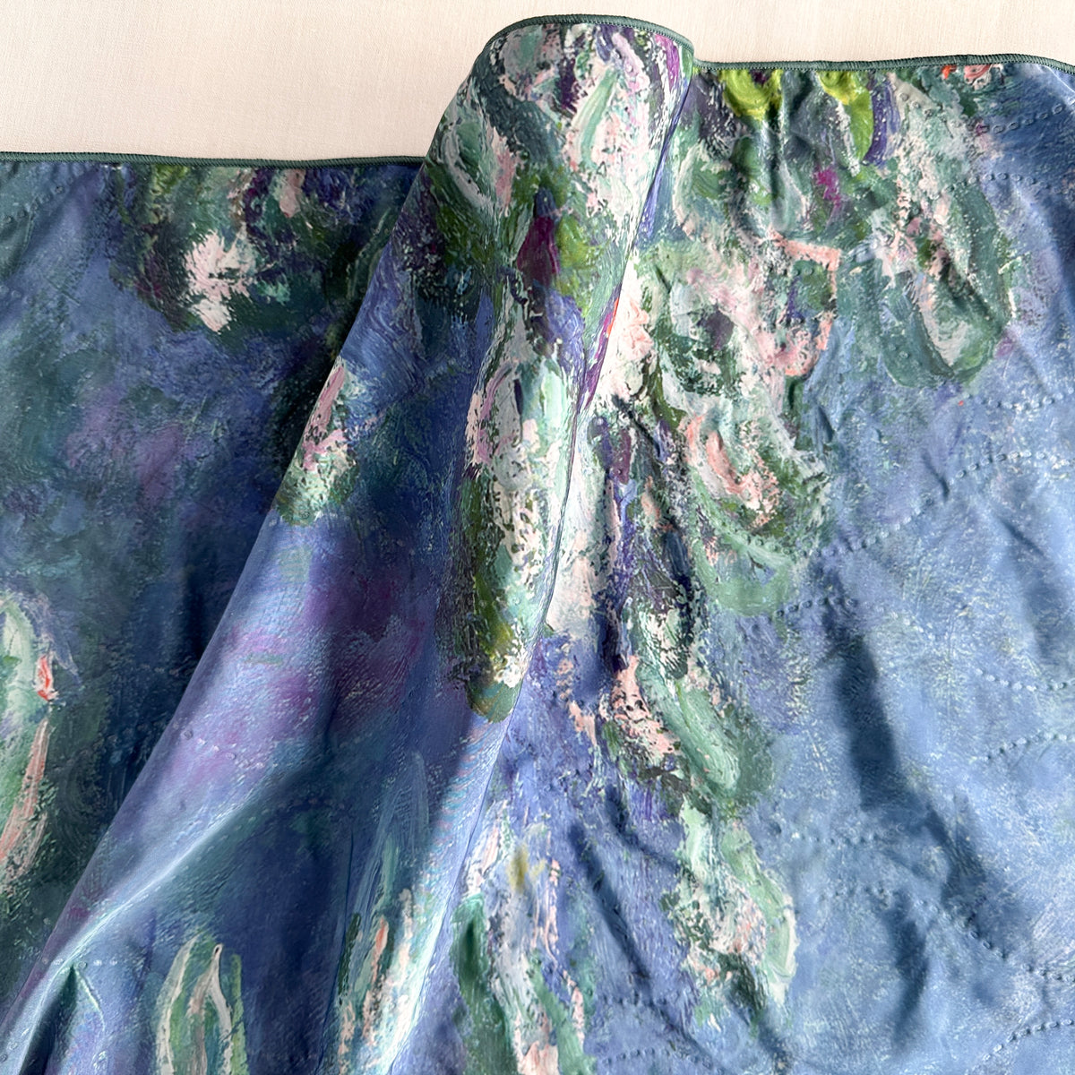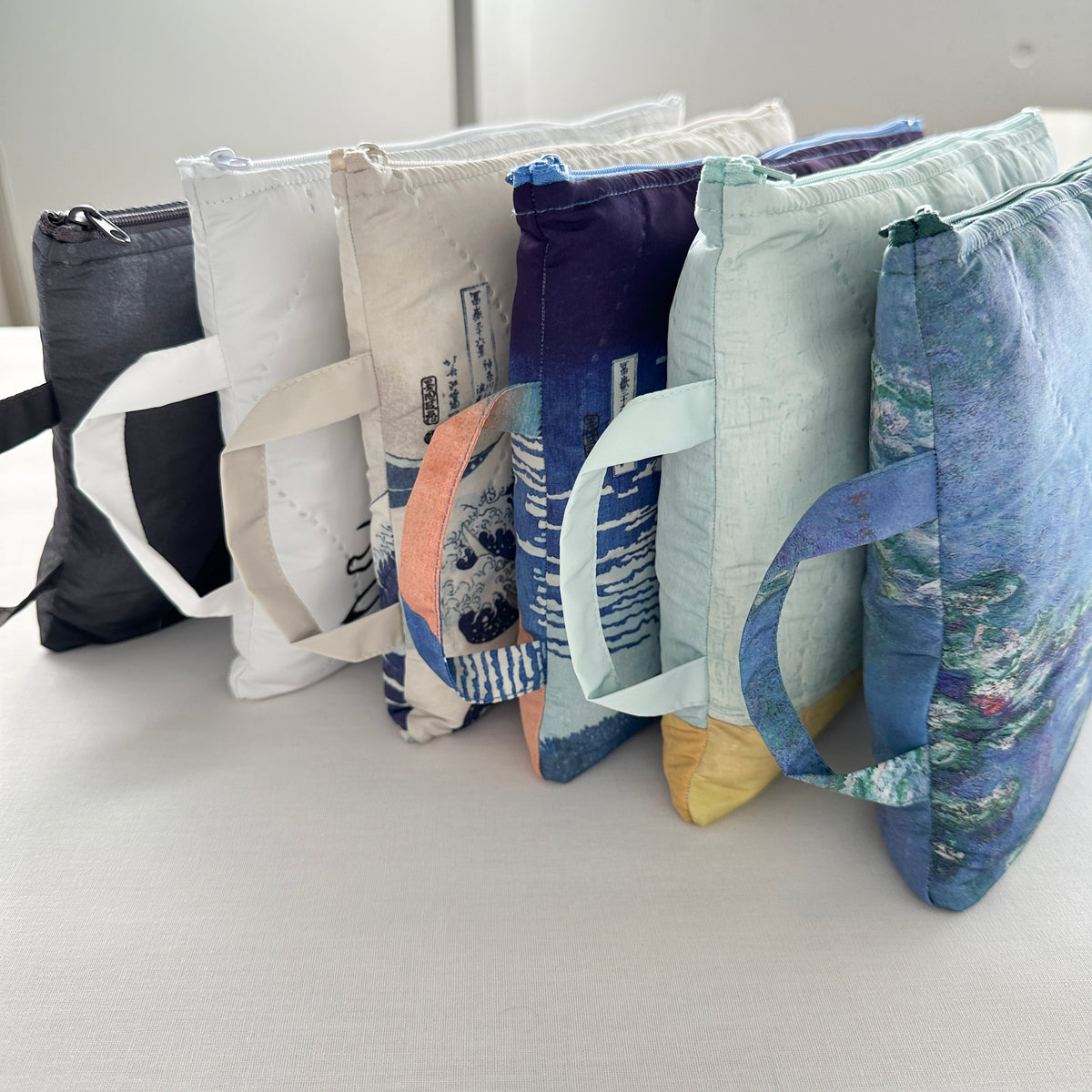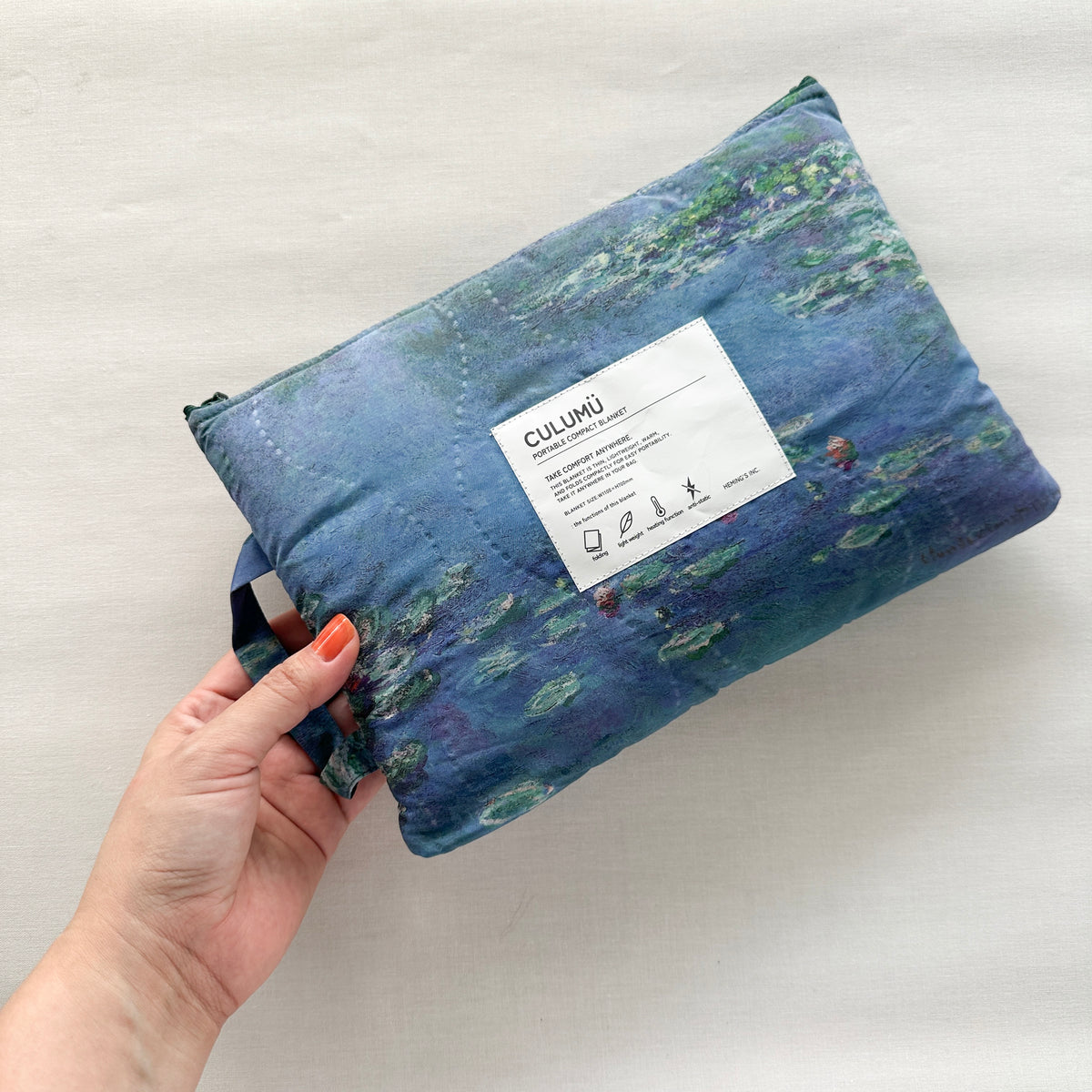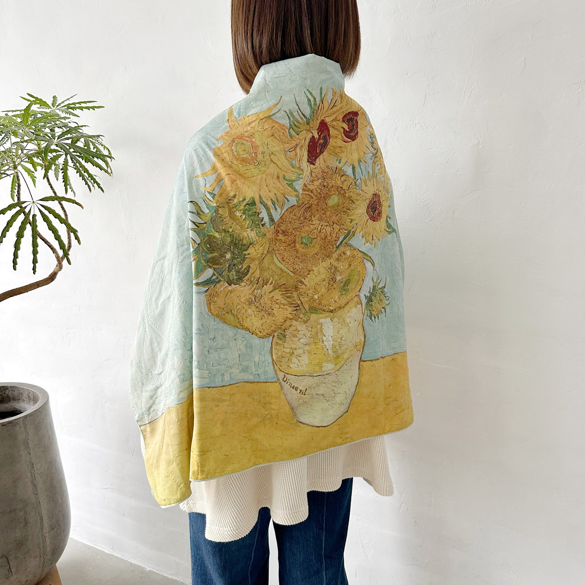 ”CULUMU(クルム)” は薄くて軽くて暖かい、小さくたたんでコンパクトに持ち運べるブランケット。くるっと巻く仕草「くるむ」から名付けました。“CULUMU”は、オフィスやスポーツ観戦、ピクニックやフェスなどどこにでもバッグに入れて持っていけるサイズ感がポイント。発熱フリースを使用しているので暖かく、また静電気防止加工が施されているので、冬場のちょっとしたストレスを軽減してくれます。CULUMUは、膝掛け、ケープ、ボレロ、巻きスカートの4wayで使用できるので、外やオフィス、お家の中でなど、シーンに合わせた使い方ができるのもうれしいポイントです。軽量コンパクトなのでバッグに入れてどこにでも持ち運べます。オフィスや車に常備しておいても便利です。MUSEUMシリーズは、日本の名画、世界の名画の全6種類。