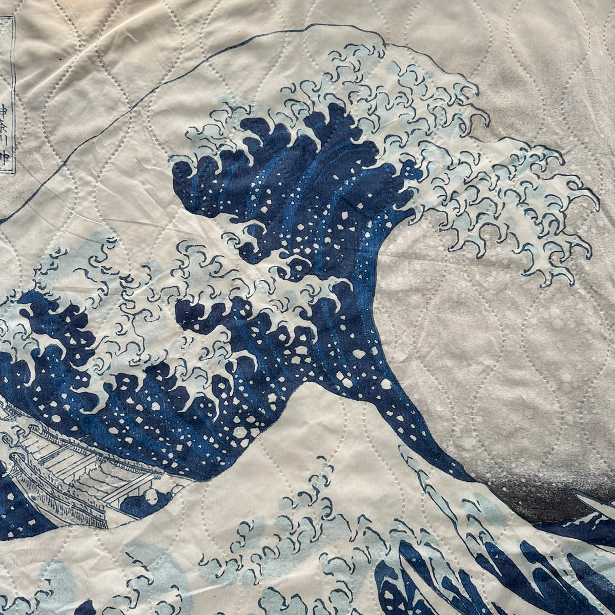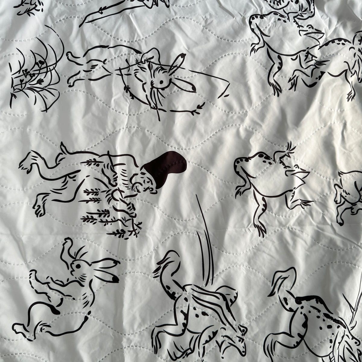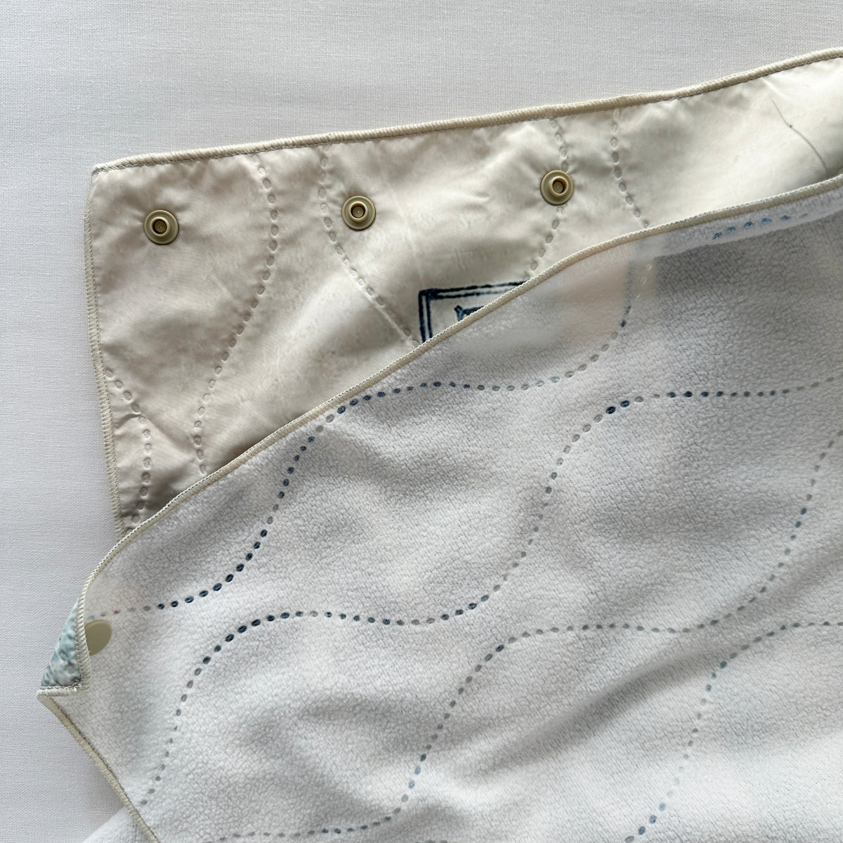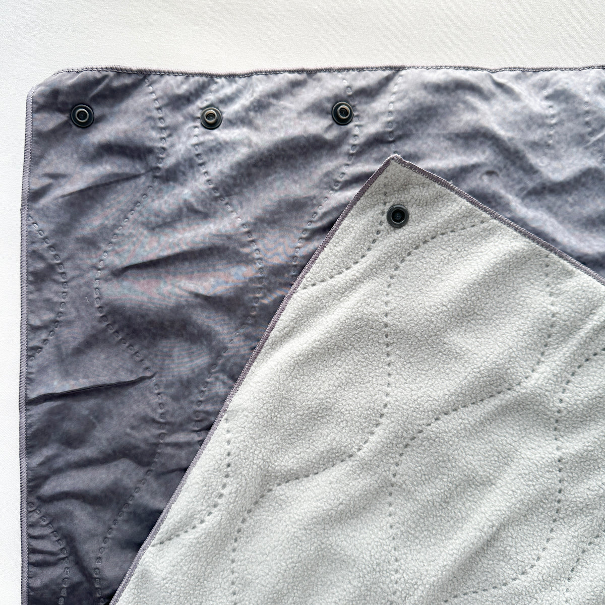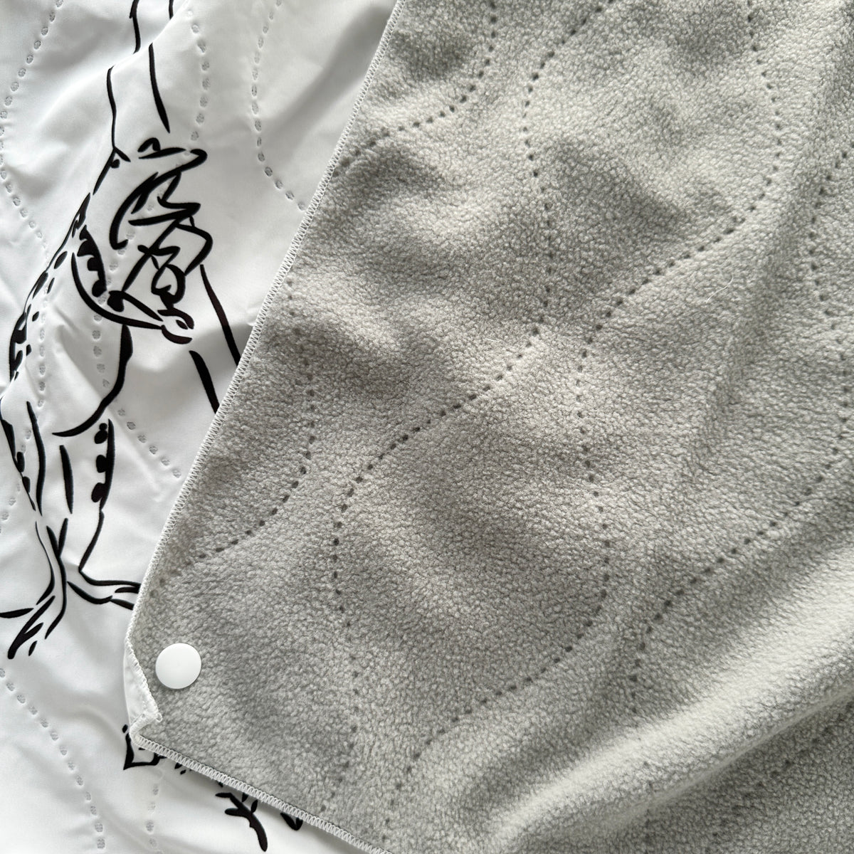 表面のプリント側には撥水加工が施されています。急に雨が降り出した時なども、水滴がしみ込まず、さっときれいに拭き取れます。屋外で使うのにもおすすめのブランケットです。