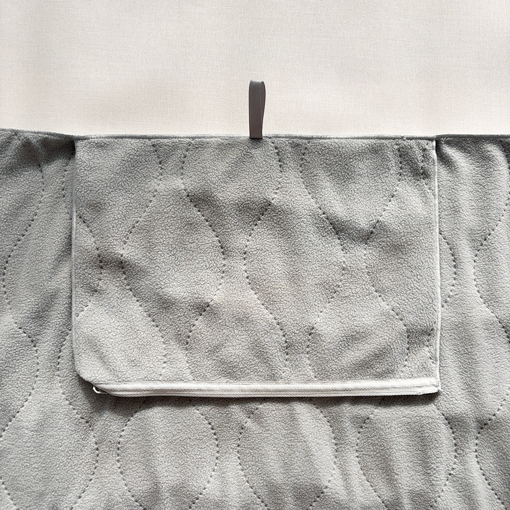 内側は発熱フリースを使用。ふわっとした手触りで暖かいです。肩やひざからかけた際に滑り落ちにくく、静電防止加工もされています。