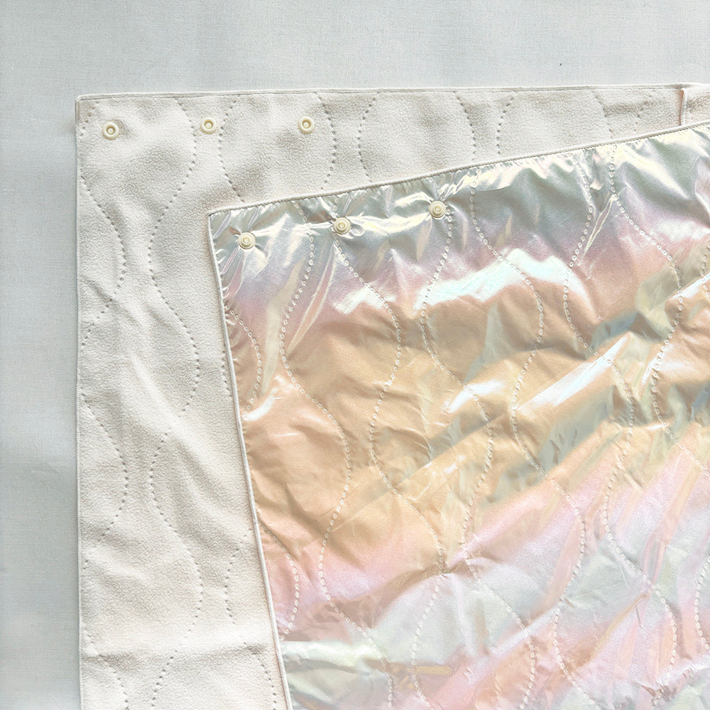 ”CULUMU(クルム)” は薄くて軽くて暖かい、小さくたたんでコンパクトに持ち運べるブランケット。くるっと巻く仕草「くるむ」から名付けました。“CULUMU”は、オフィスやスポーツ観戦、ピクニックやフェスなどどこにでもバッグに入れて持っていけるサイズ感がポイント。発熱フリースを使用しているので暖かく、また静電気防止加工が施されているので、冬場のちょっとしたストレスを軽減してくれます。CULUMUは、膝掛け、ケープ、ボレロ、巻きスカートの4wayで使用できるので、外やオフィス、お家の中でなど、シーンに合わせた使い方ができるのもうれしいポイント。流行のオーロラやシルバーの生地を使ったシリーズ。ハリ感があり軽やかな生地は、光が当たるとキラキラと輝きます。