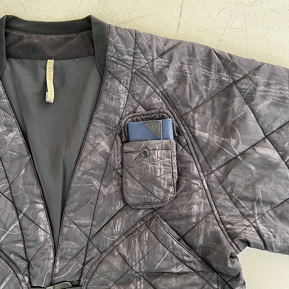 小型財布”coruri"がピッタリ収まる胸ポケット。