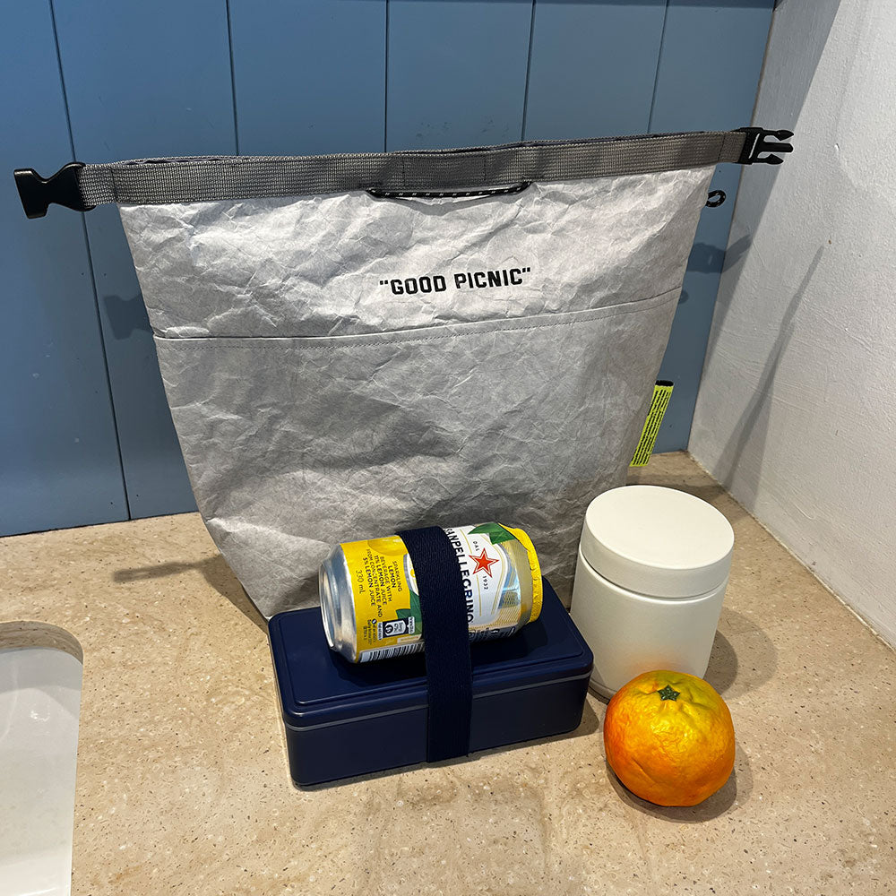好評のCOOLBAGが数多いリクエストの声に応えサイズやデザインなどをリニュアルしてリリース。ロールトップ型のピクニックサイズは画像のようにお弁当箱とスープボトル、缶ジュースやフルーツなどが入るサイズ。インバッグでも手提げでも。また別売りの78630 MULTI WEAVE BELTを付属させる事でショルダーバッグとしても使用可能。