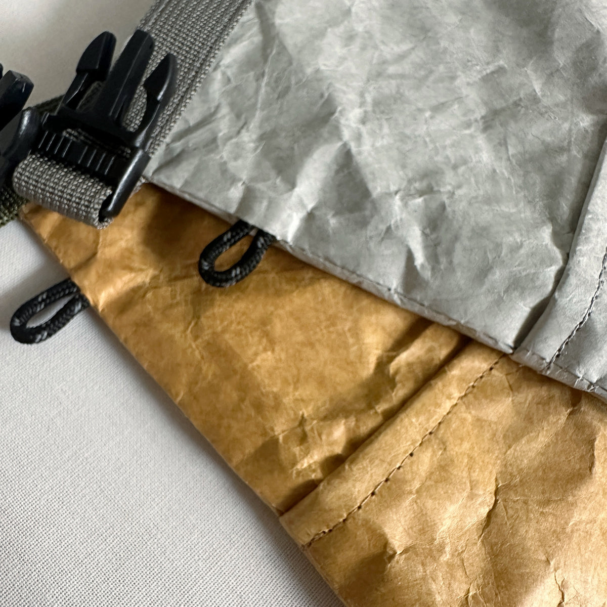 すべて入れて閉めた状態。中の容量が少ないときは上部の巻きを多くして、中が遊ばないようにしっかり閉められます。