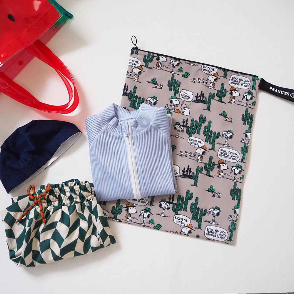 雨の日に濡れてしまった衣類やタオル、プールやジムで濡れた水着やタオルなどの収納に便利。 内側は汚れが付きにくい加工が施されていて汚れた物の収納にも適しているため、旅行用のポーチとしても便利です。